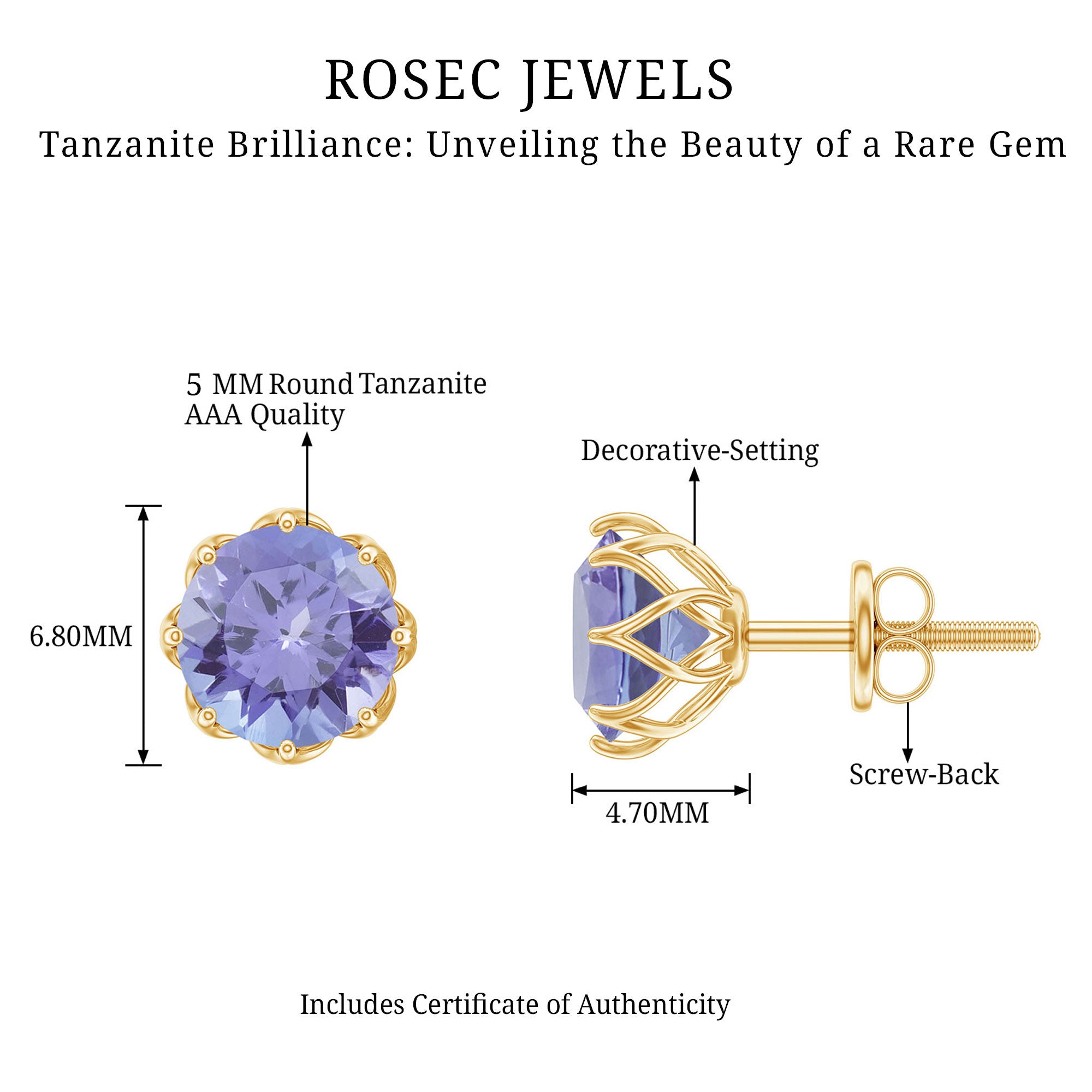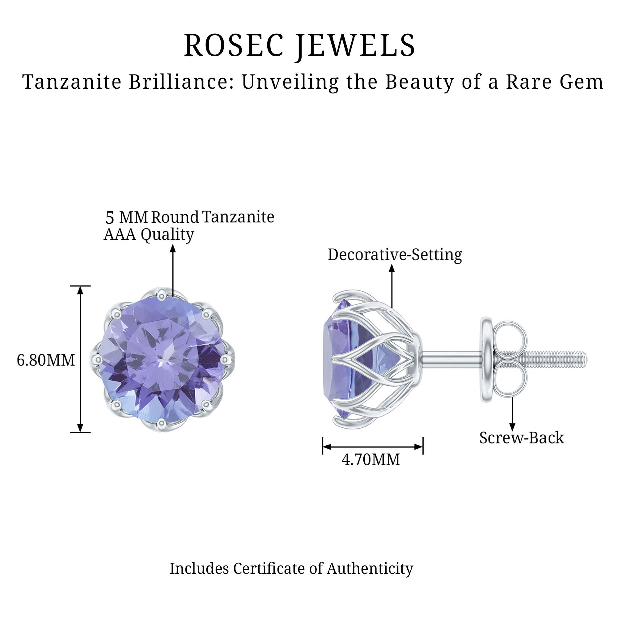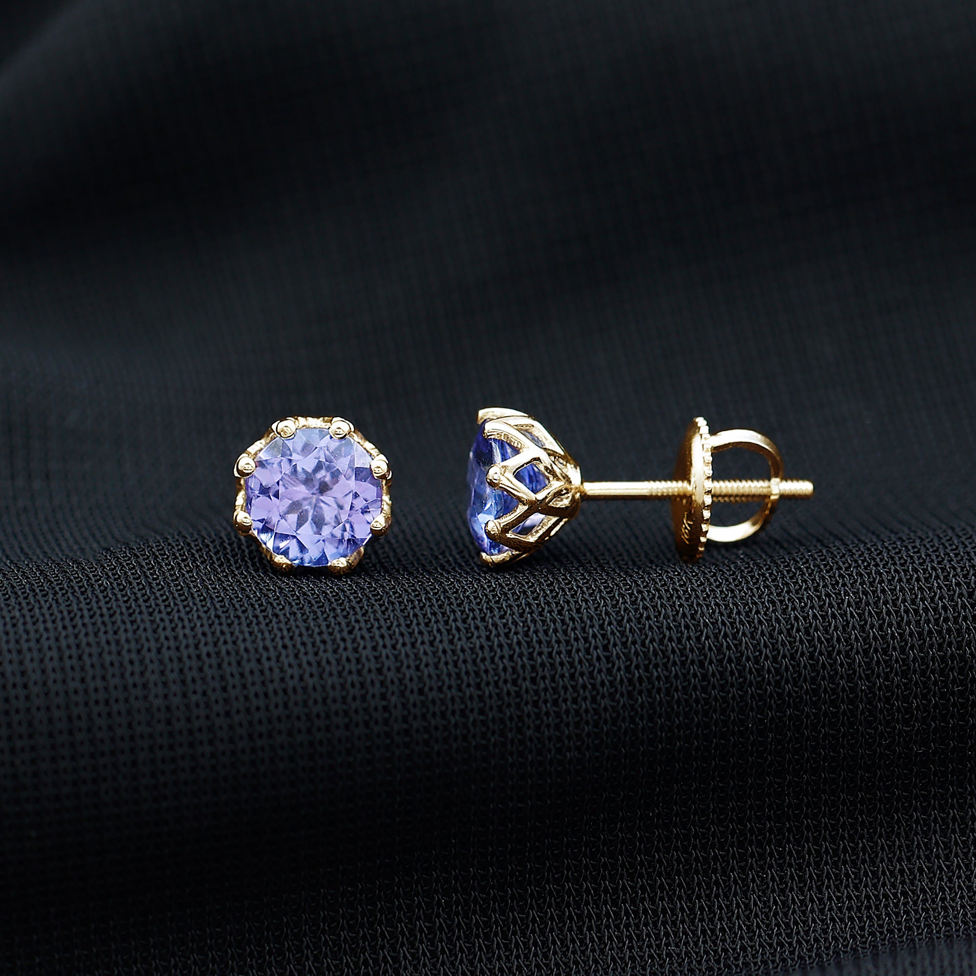 6 MM Decorative Tanzanite Solitaire Stud Earrings