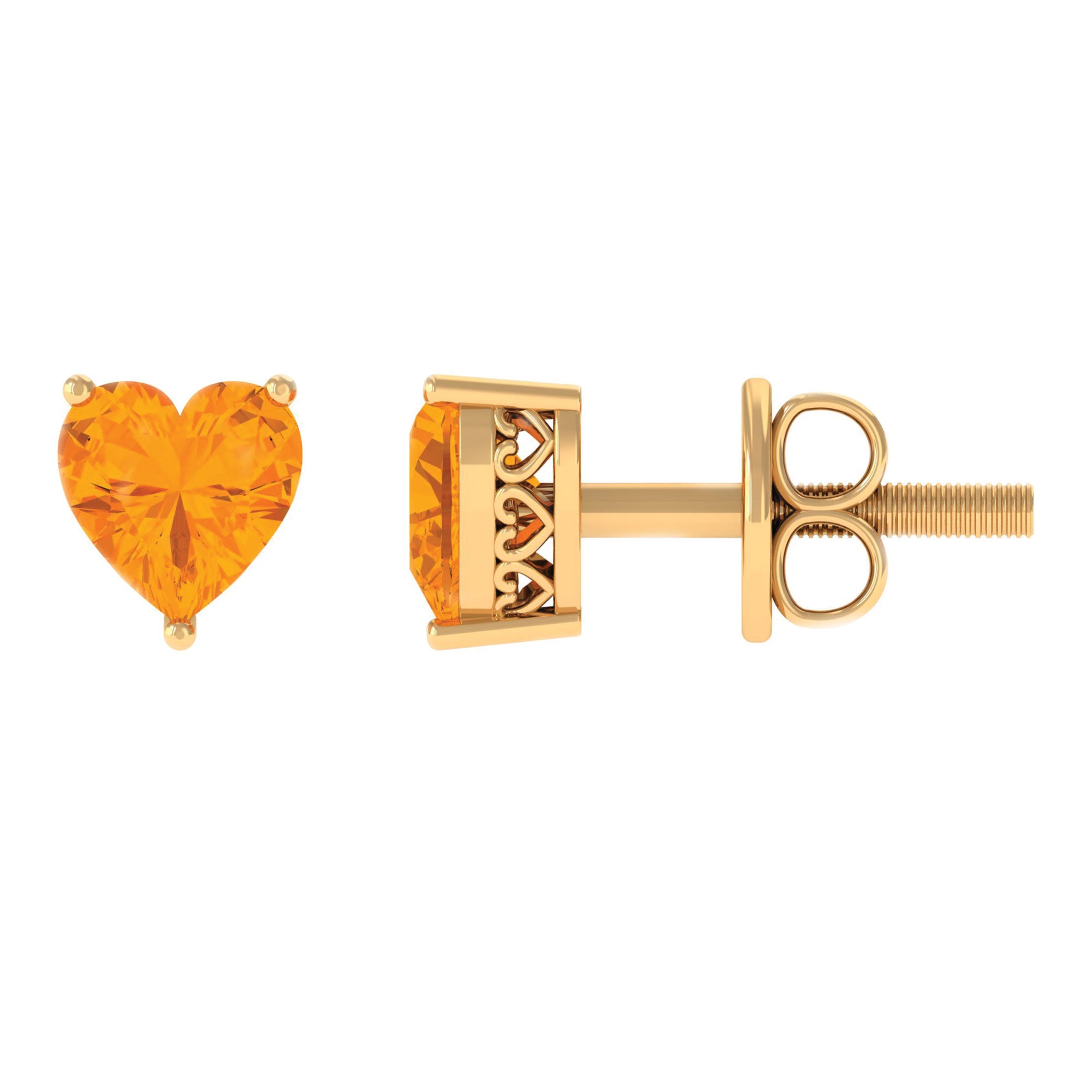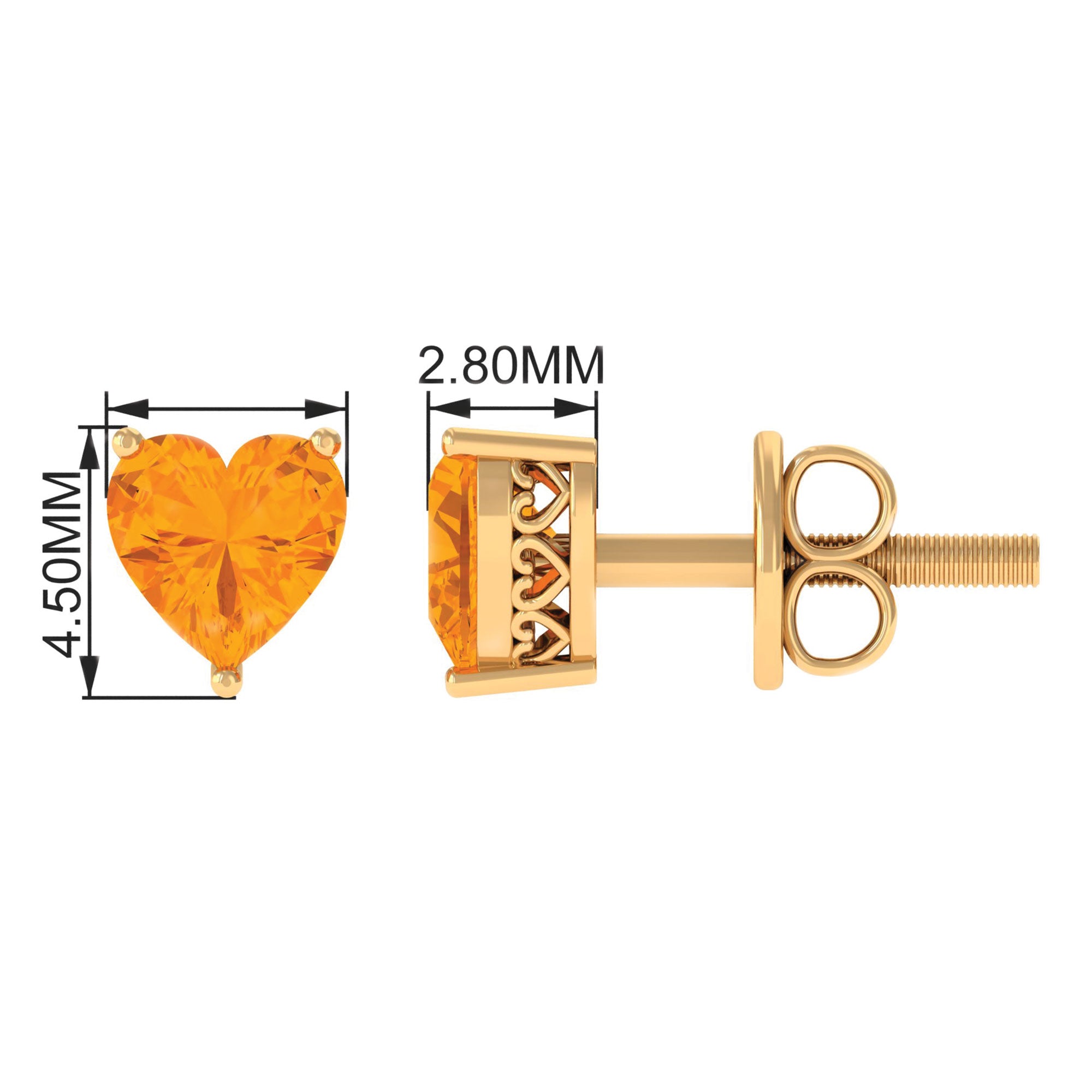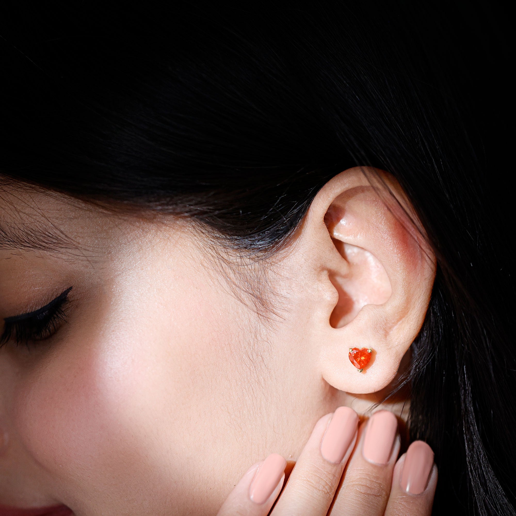6 MM Heart Shape Fire Opal Solitaire Stud Earrings