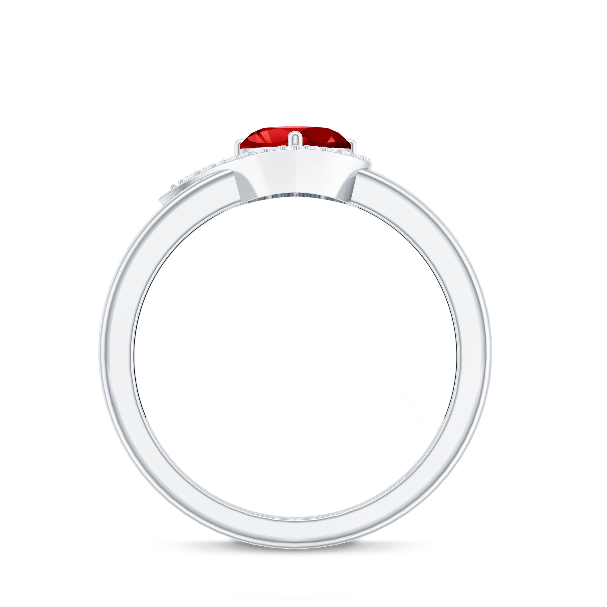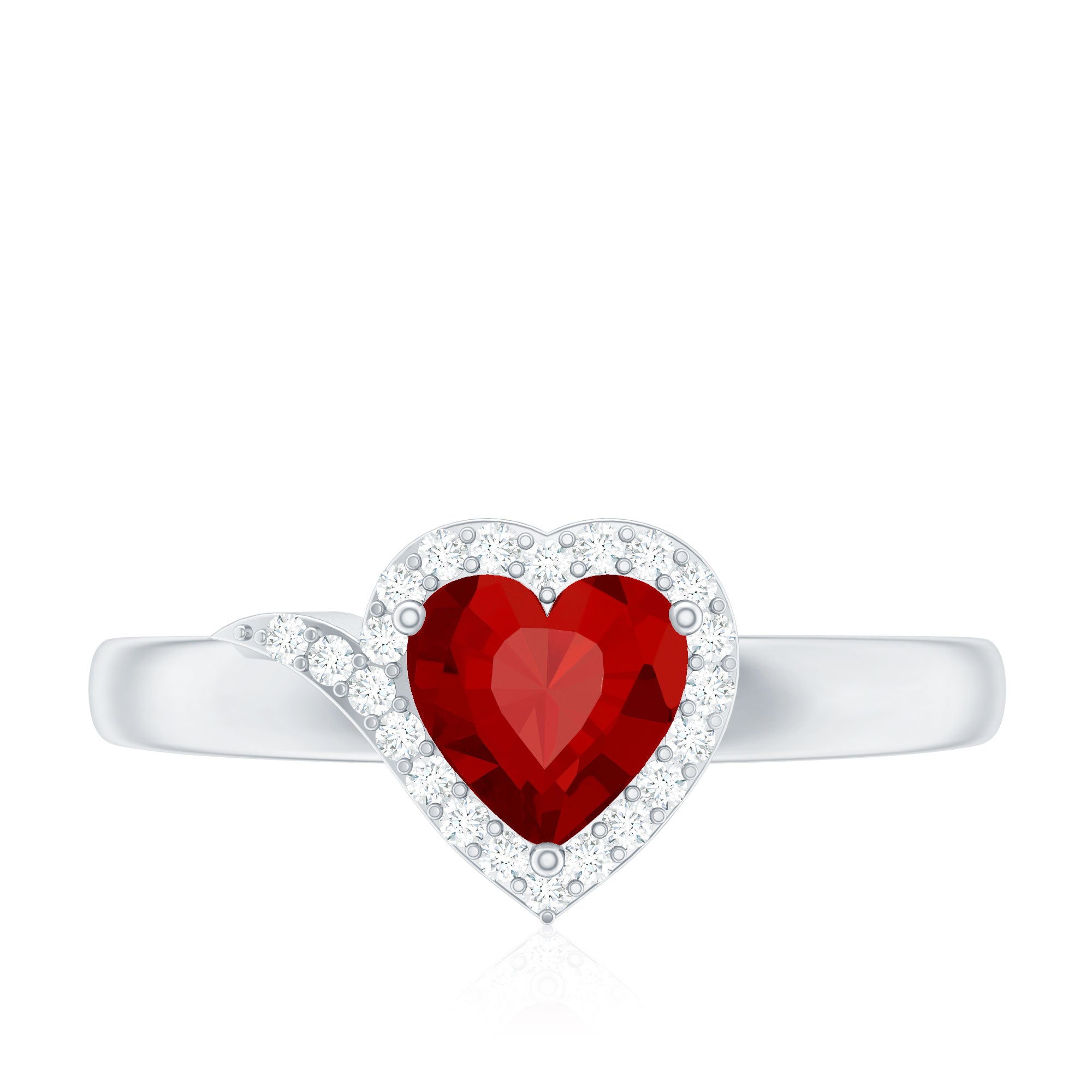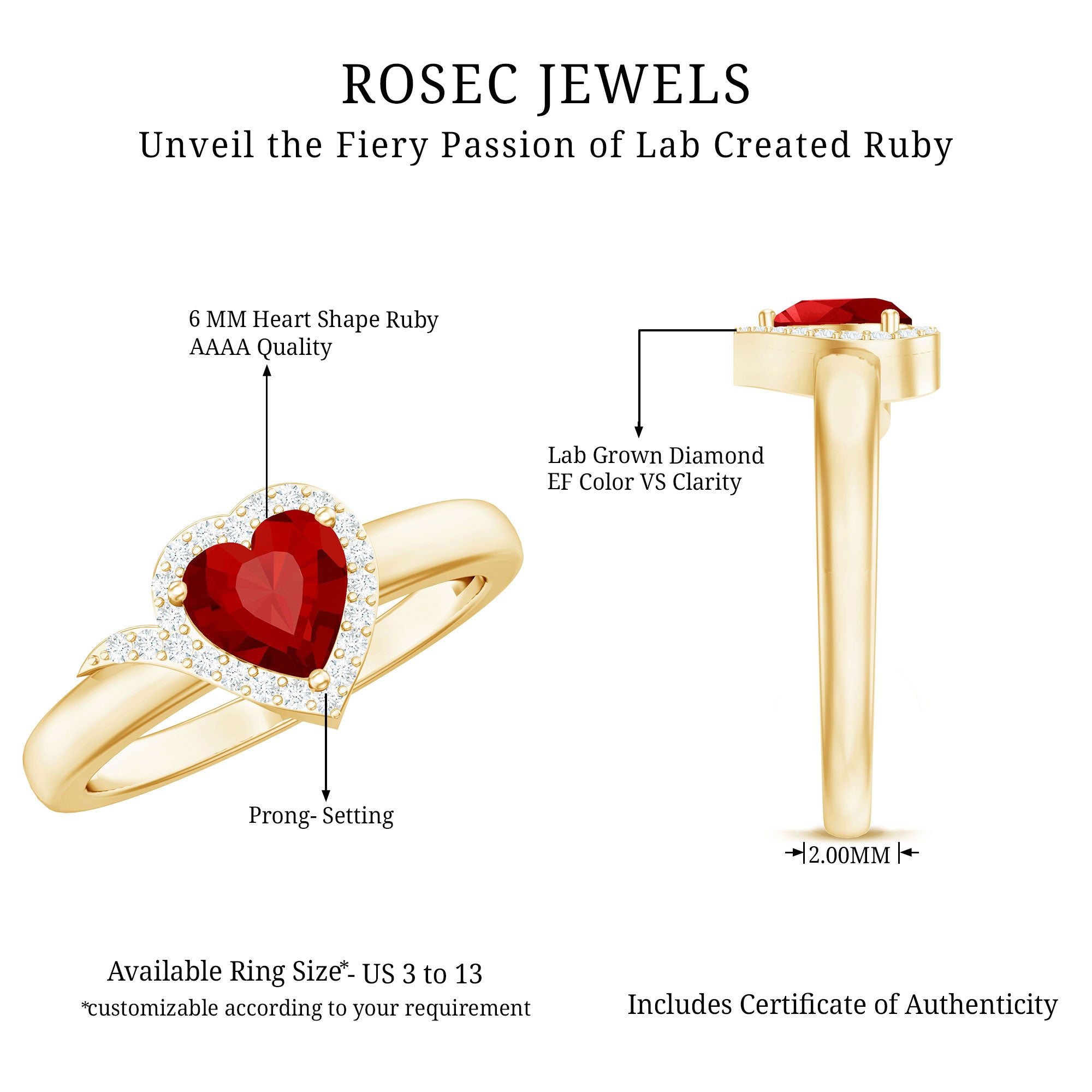 6 MM Lab Grown Ruby Heart Engagement Ring with Diamond Halo