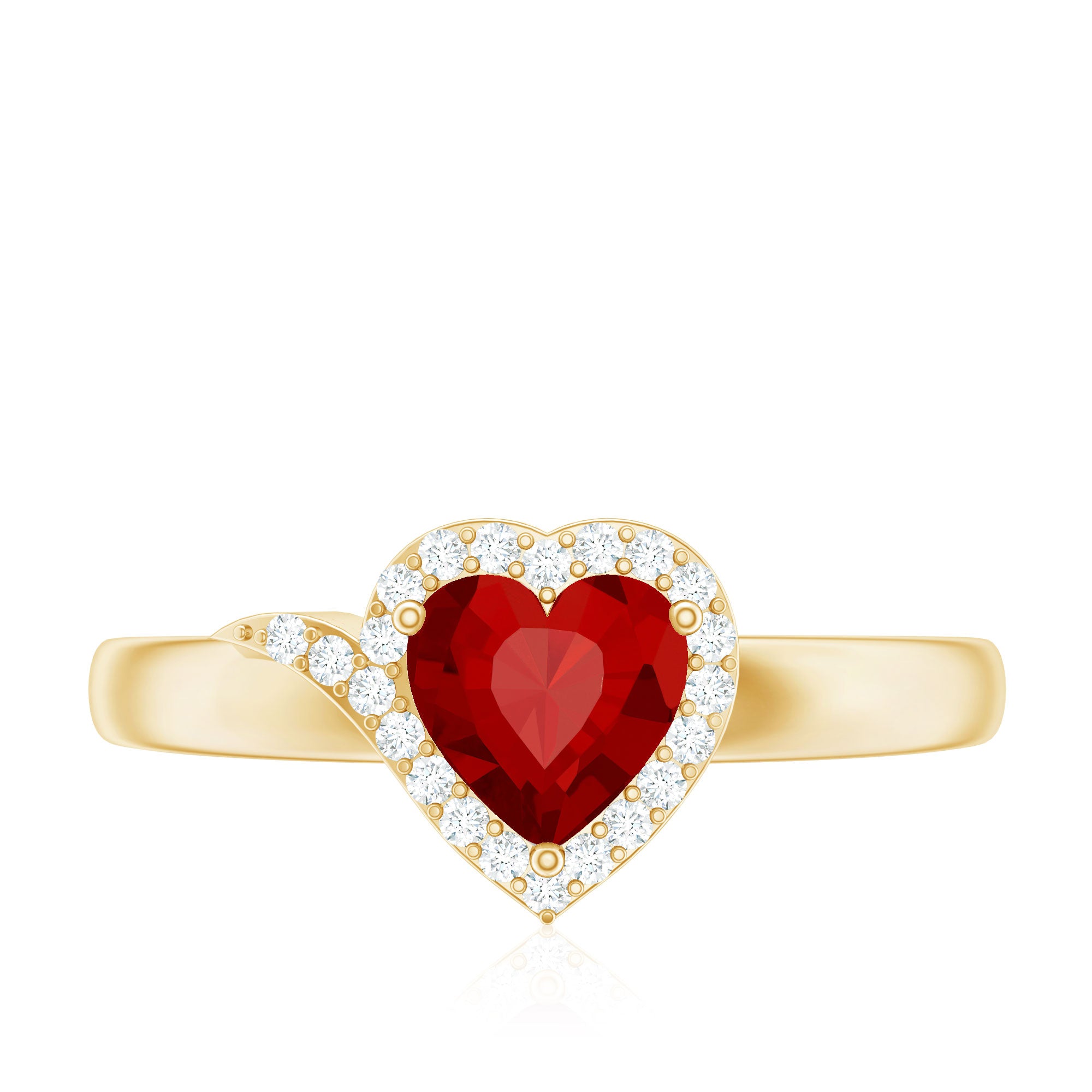 There is something truly special about a Heart Shaped Engagement Ring, it says everything without needing words. This Ruby Engagement Ring is a romantic choice for those who want something a little different, yet deeply meaningful. Shaped with care, the design features a 6 MM Heart shaped lab created ruby set in prong setting. A delicate halo of round cut lab created diamonds outlines the heart shape, giving it a graceful frame that highlights its unique form. What makes this Ruby and Diamond Engagement Ring even more thoughtful is how it is made. Using lab grown stones of AAAA quality ruby and EF-VS quality diamonds, it brings beauty and responsibility together in one timeless piece. Every element is crafted to offer not just style, but lasting value and purpose. Whether worn on its own or paired with a matching band, this Ruby Heart Ring stands beautifully on the hand. It is designed to feel light and comfortable while still making a lasting impression. Certified for quality and crafted with care, it is available in a range of metal colors and sizes, so you can make it truly personal. This is not just a piece of jewelry, it is a gentle reminder of love, care, and commitment