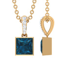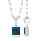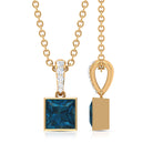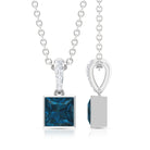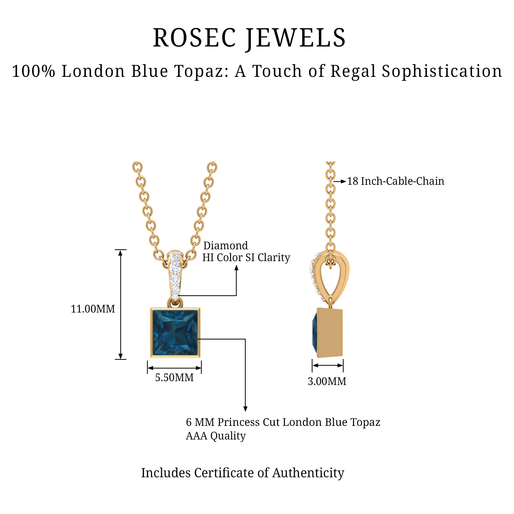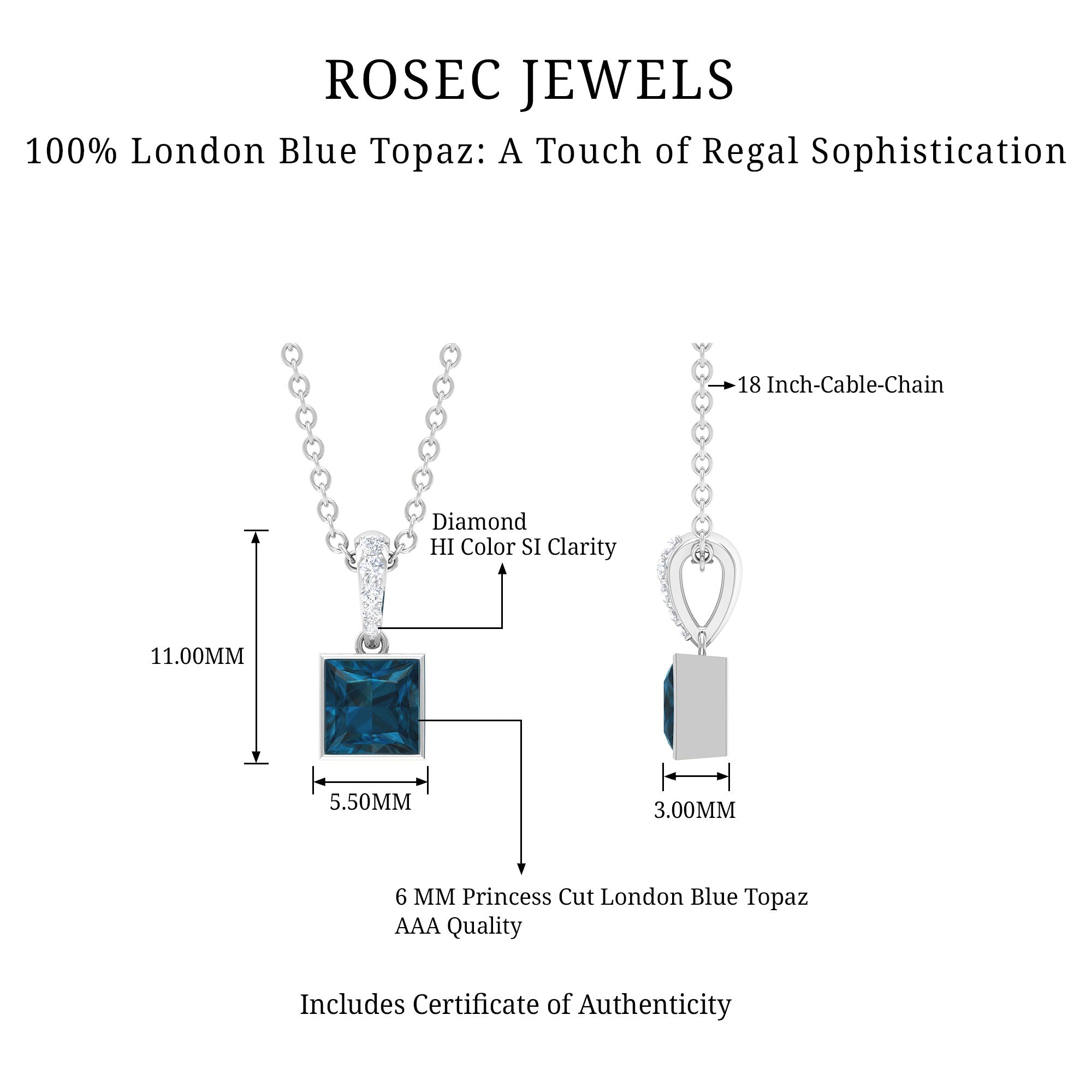 6 MM Princess Cut London Blue Topaz Solitaire Pendant with Diamond Accent Bail