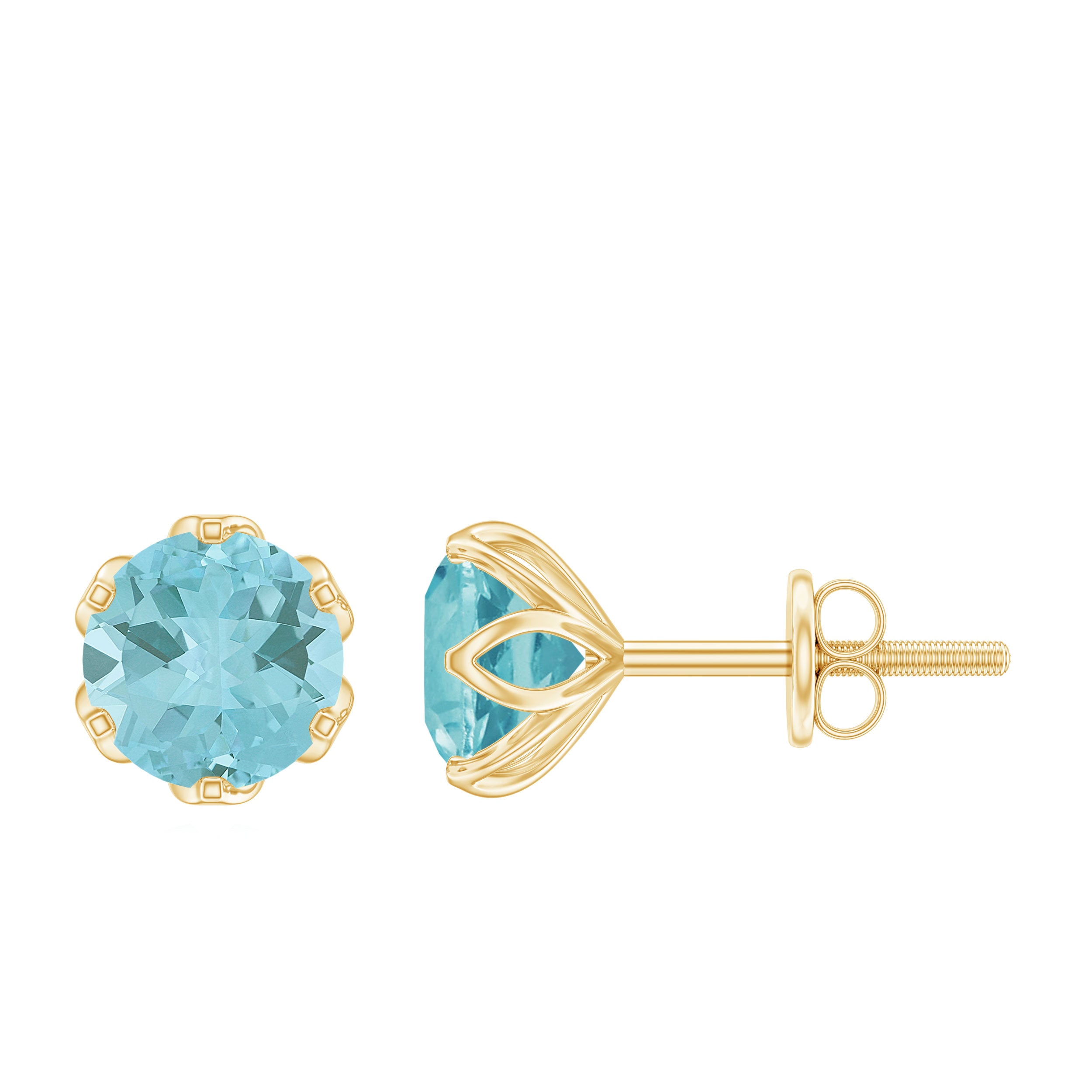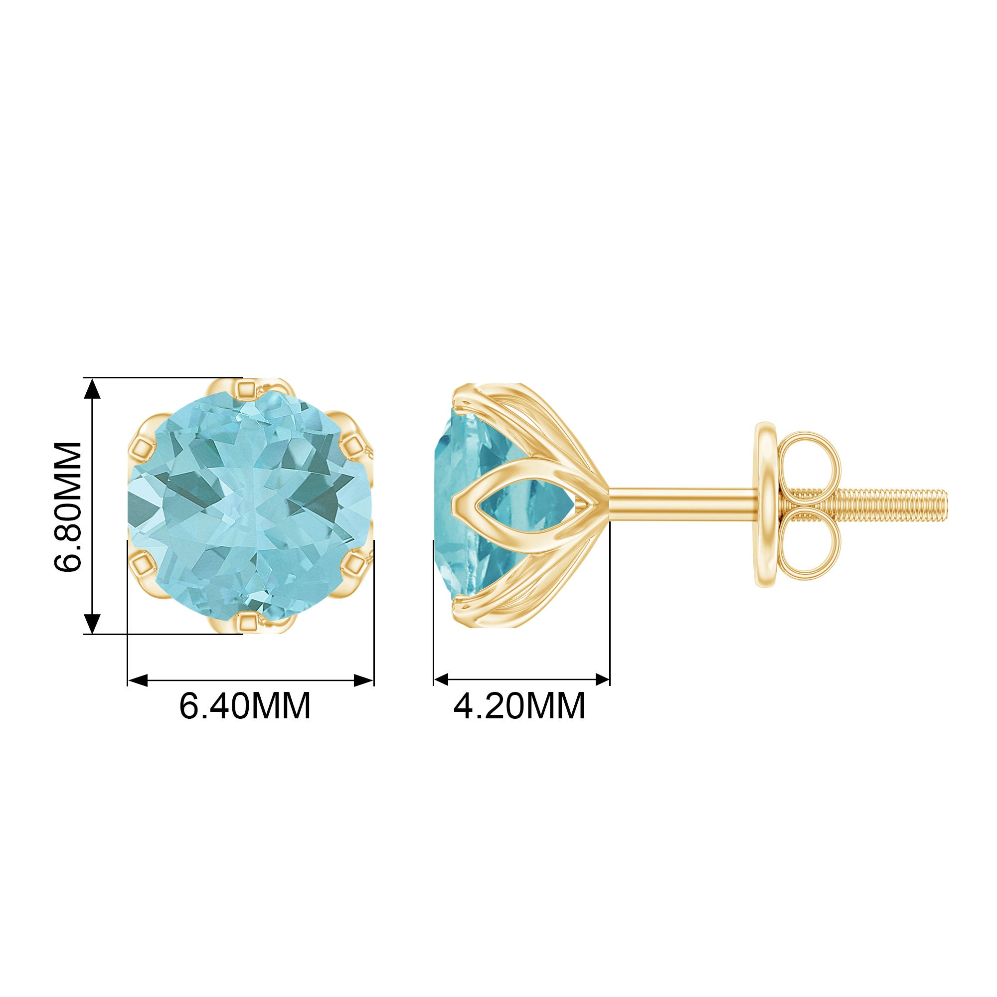 6 MM Round Cut Sky Blue Topaz Solitaire Stud Earrings for Women
