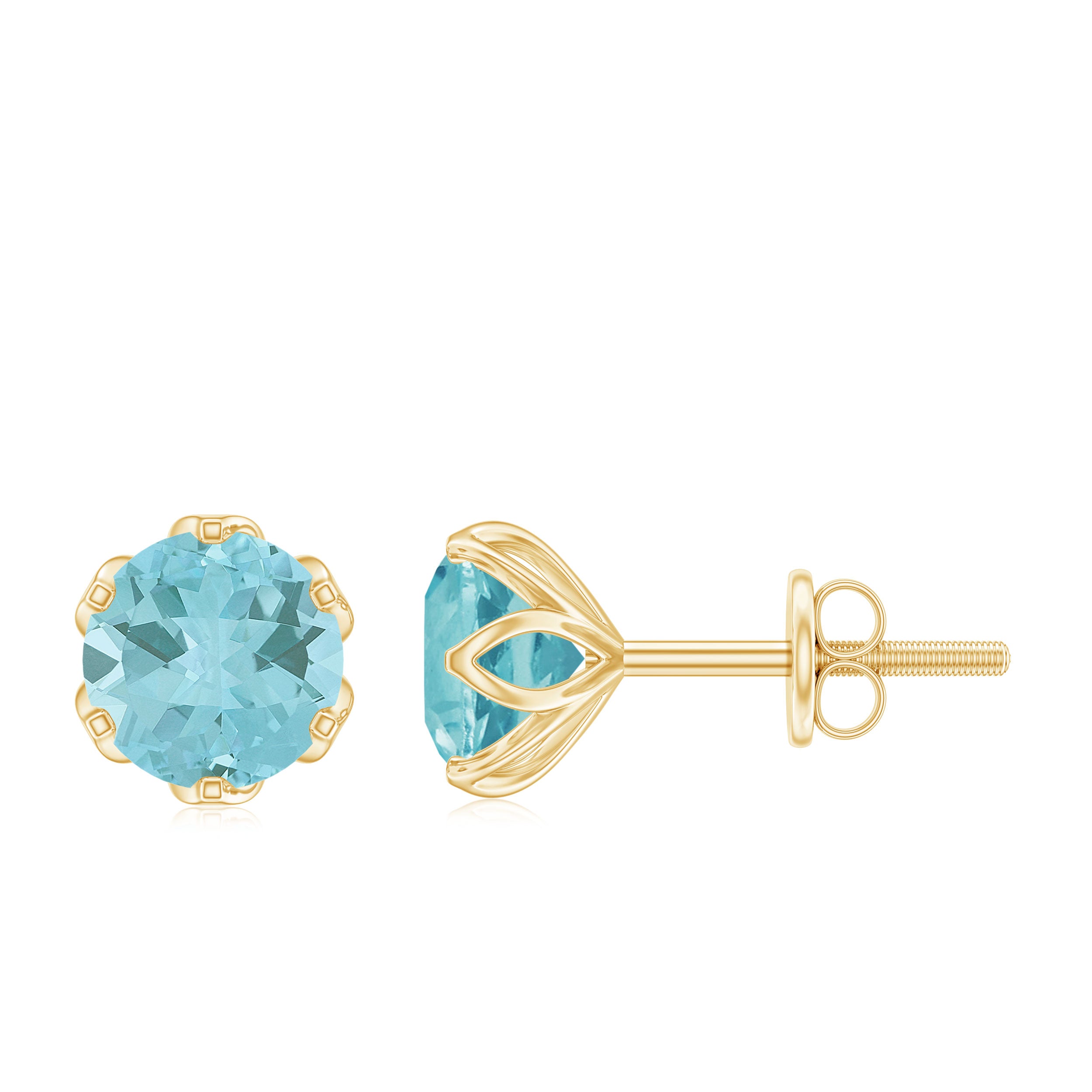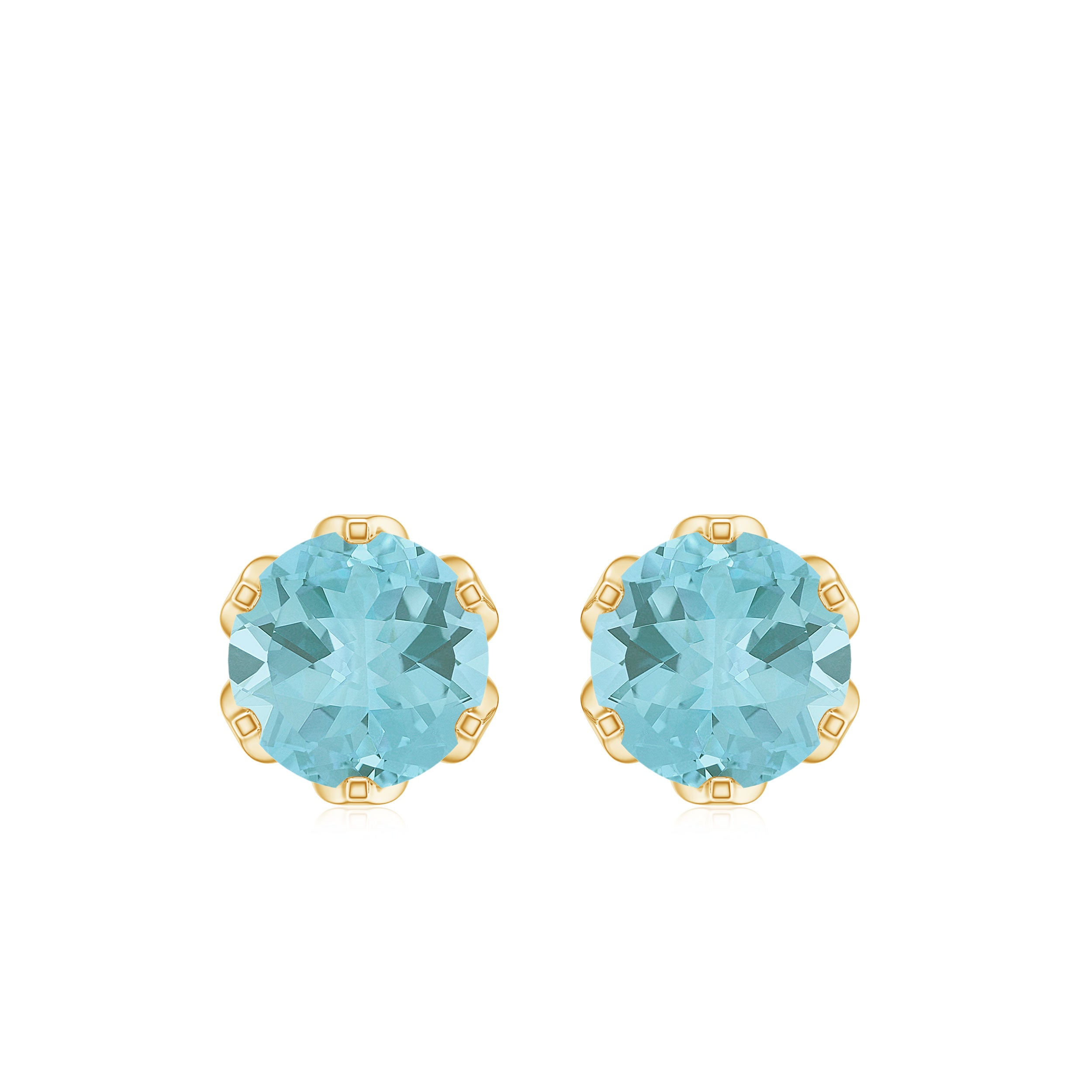 Grace yourself with this beautiful pair of Solitaire Stud Earrings embellished with sparkling Sky Blue Topaz Solitaire set in Lotus Basket Setting and appears as flower. Solid Gold composed Sky Blue Topaz Earrings will steal the spotlight for you in the parties and celebrations.