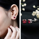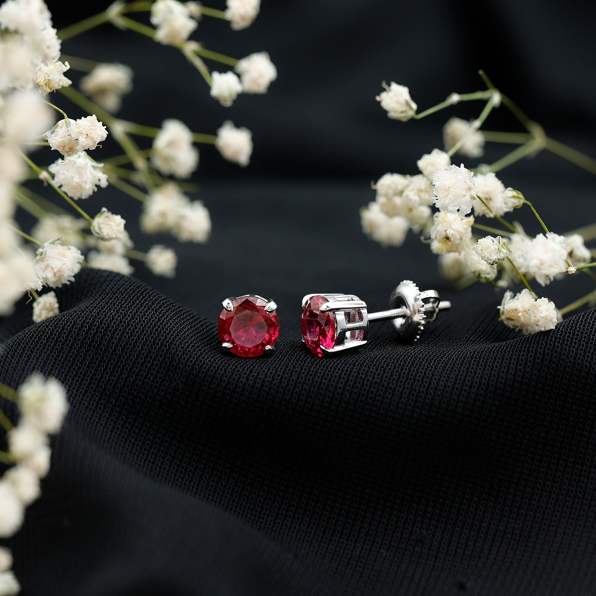 6 MM Round Cut Solitaire Lab Created Ruby Stud Earring for women