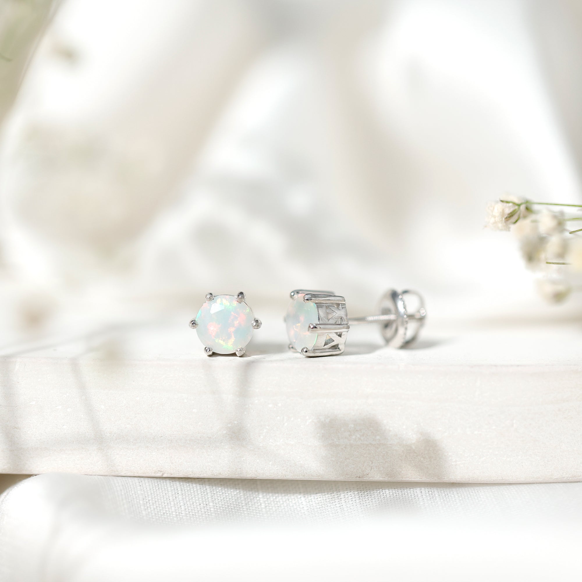 6 MM Round Ethiopian Opal Solitaire Stud Earrings in 6 Claw Prong Setting