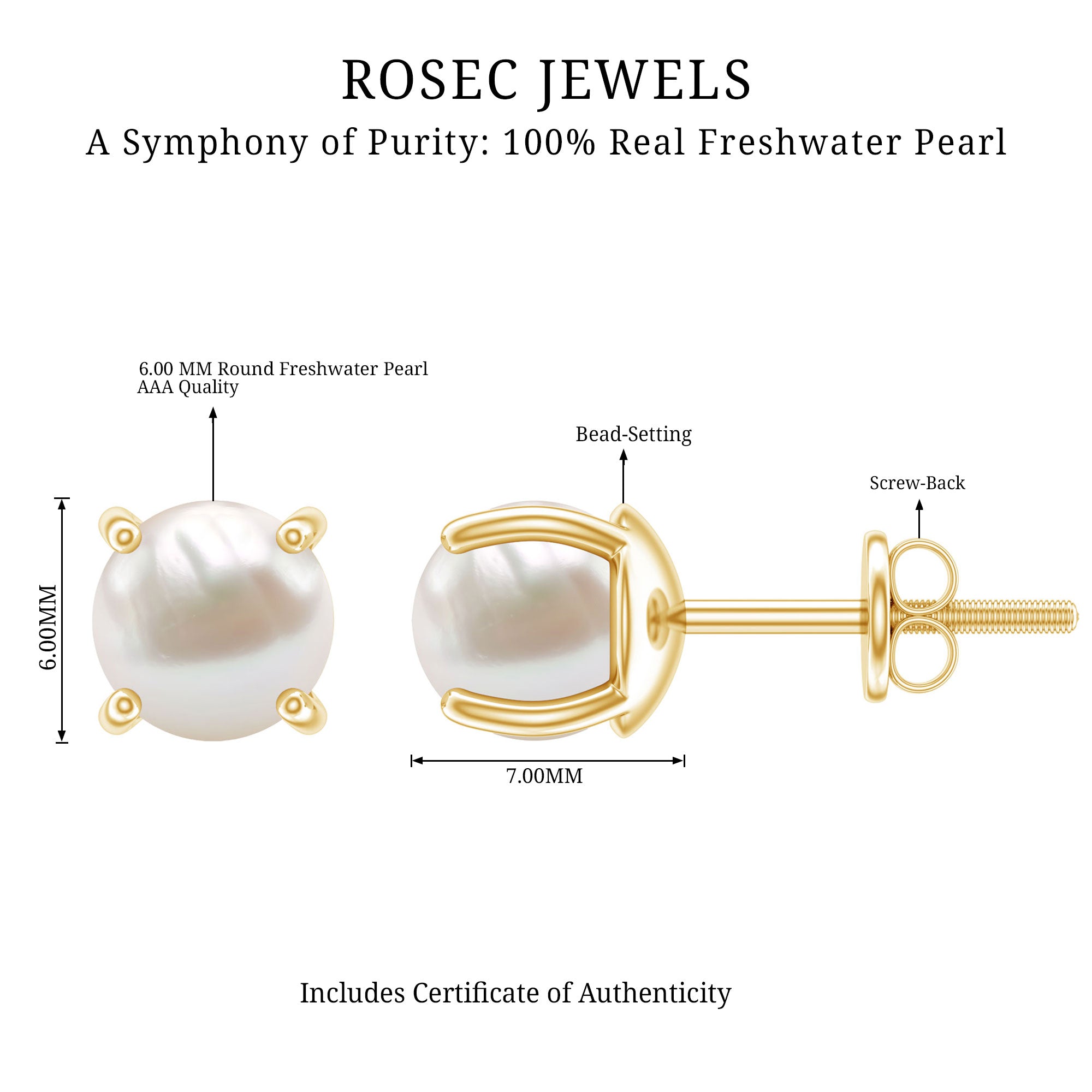 6 MM Round Freshwater Pearl Solitaire Stud Earrings