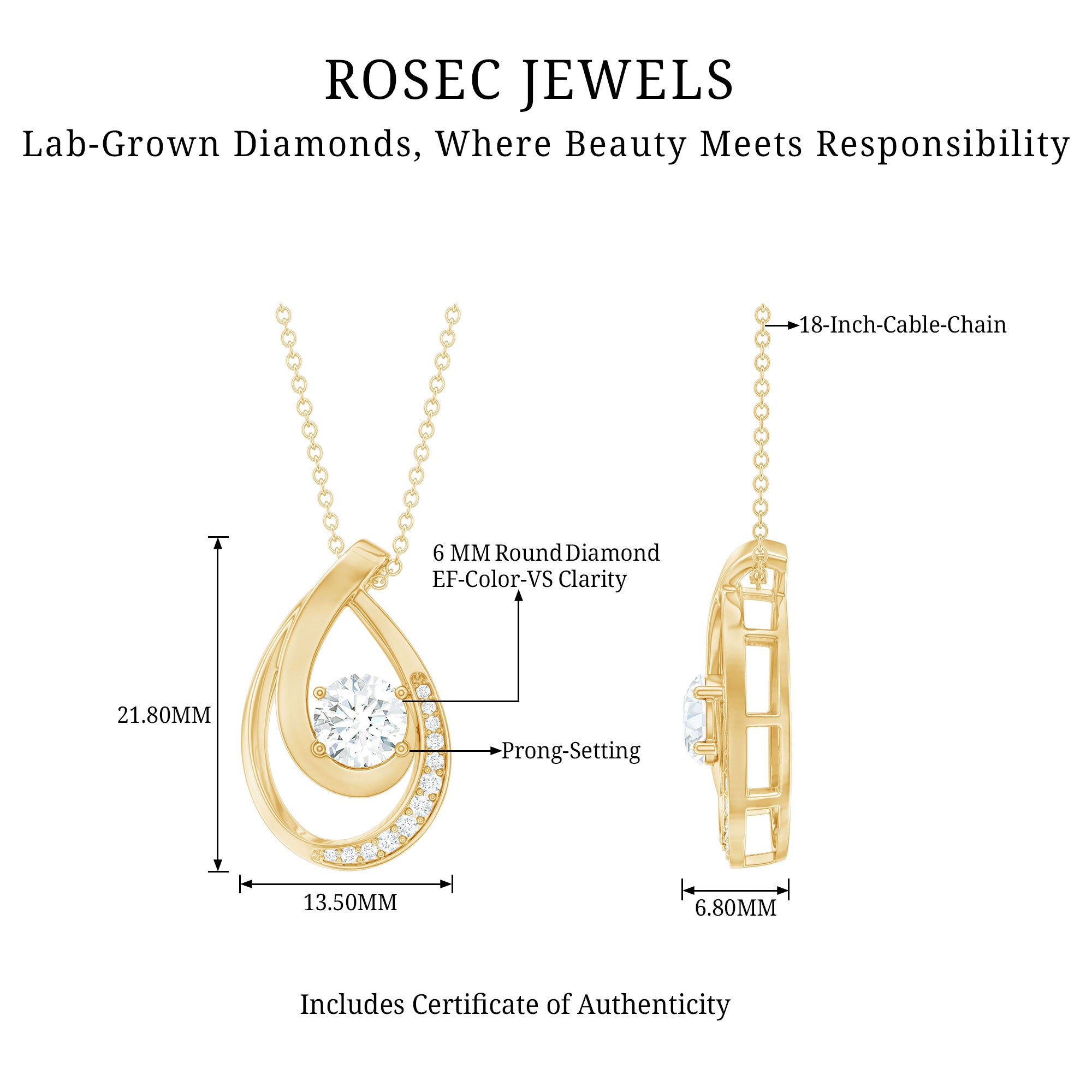 Carefully crafted with passion and attention to detail, this exquisite Lab Grown Diamond Pendant stands out from the crowd. At its heart lies a breathtaking 6 MM Round Shape Diamond gemstone, elegantly held in secure Prong Setting within a teardrop frame, enhanced by sparkling smaller gemstones. This Diamond Pendant Necklace is sure to draw compliments. Pair this stunning Solitaire Pendant with its coordinating earrings, and youll be all set to shine throughout the day.