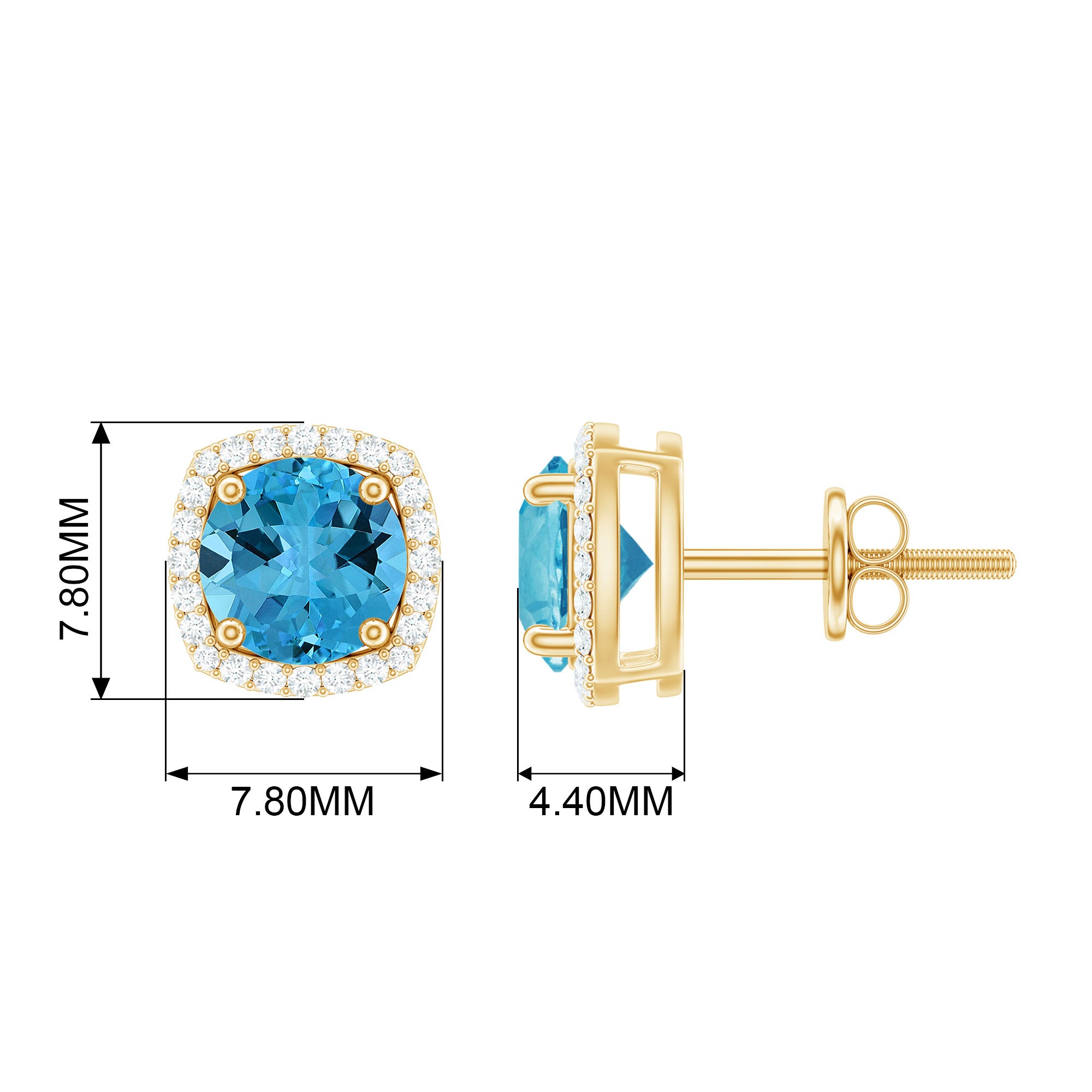 6 MM Round Shape Swiss Blue Topaz Stud Earrings with Diamond Halo