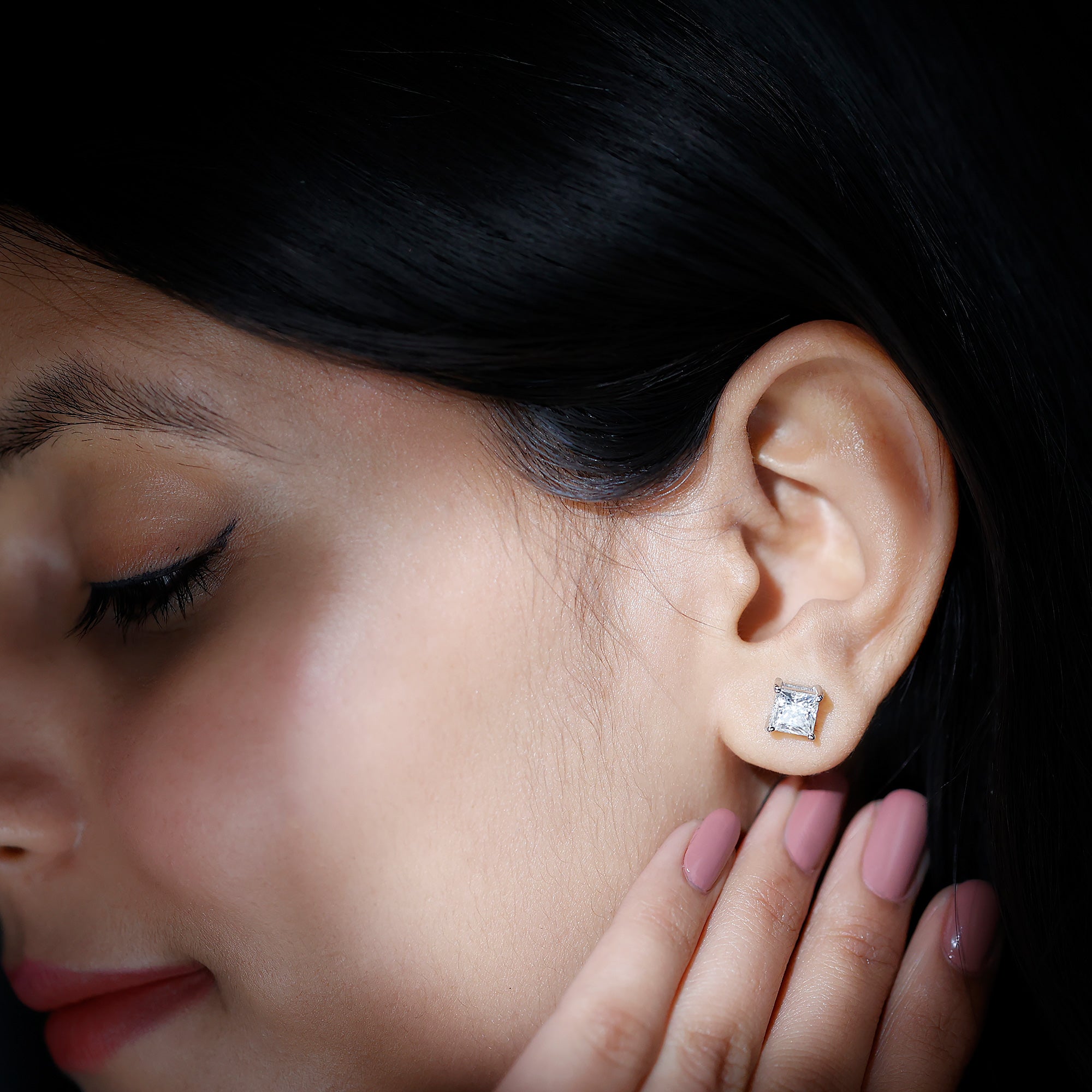 Enhance your personal style with the perfect complement of these Solitaire Stud Earrings, featuring a dazzling Princess Cut Moissanite gemstone delicately placed in a prong setting. Designed for security and convenience, these earrings are secured with a Screw Back Closure. With their understated elegance, these Moissanite Earrings exude simplicity and sophistication, making them a timeless addition to any jewelry collection.