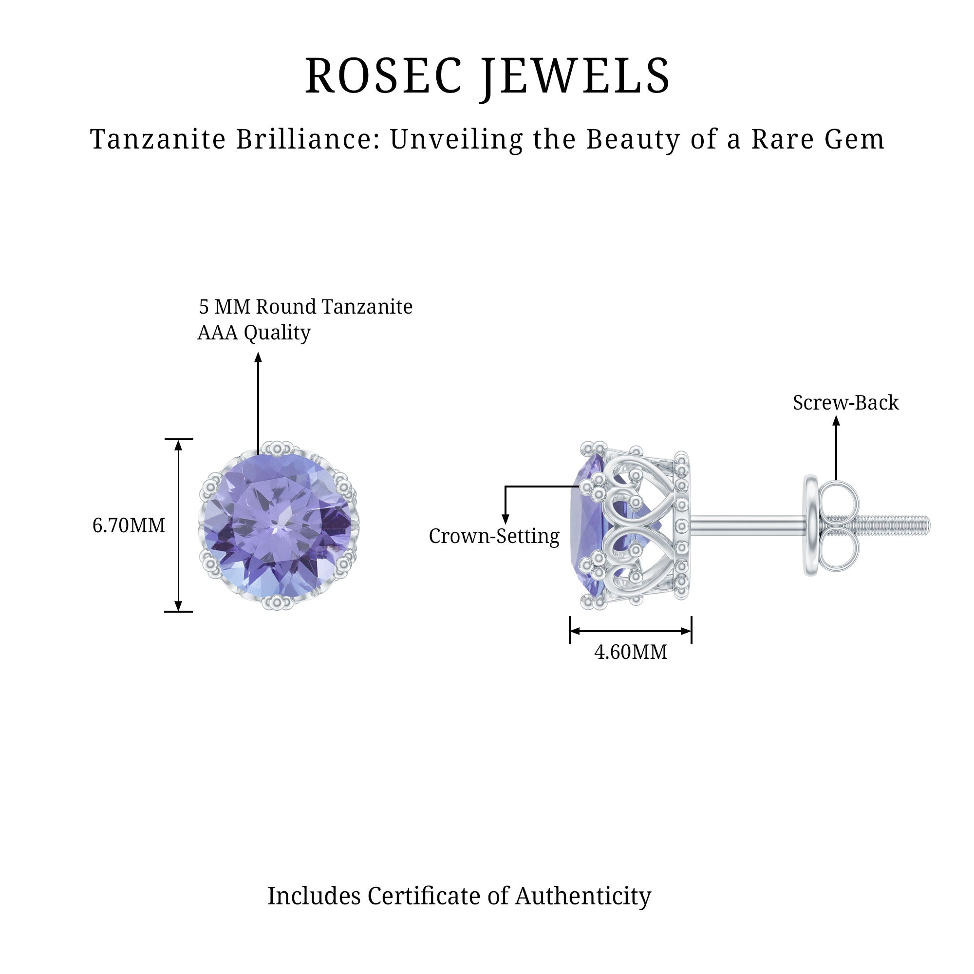 6 MM Tanzanite Solitaire Crown Stud Earrings