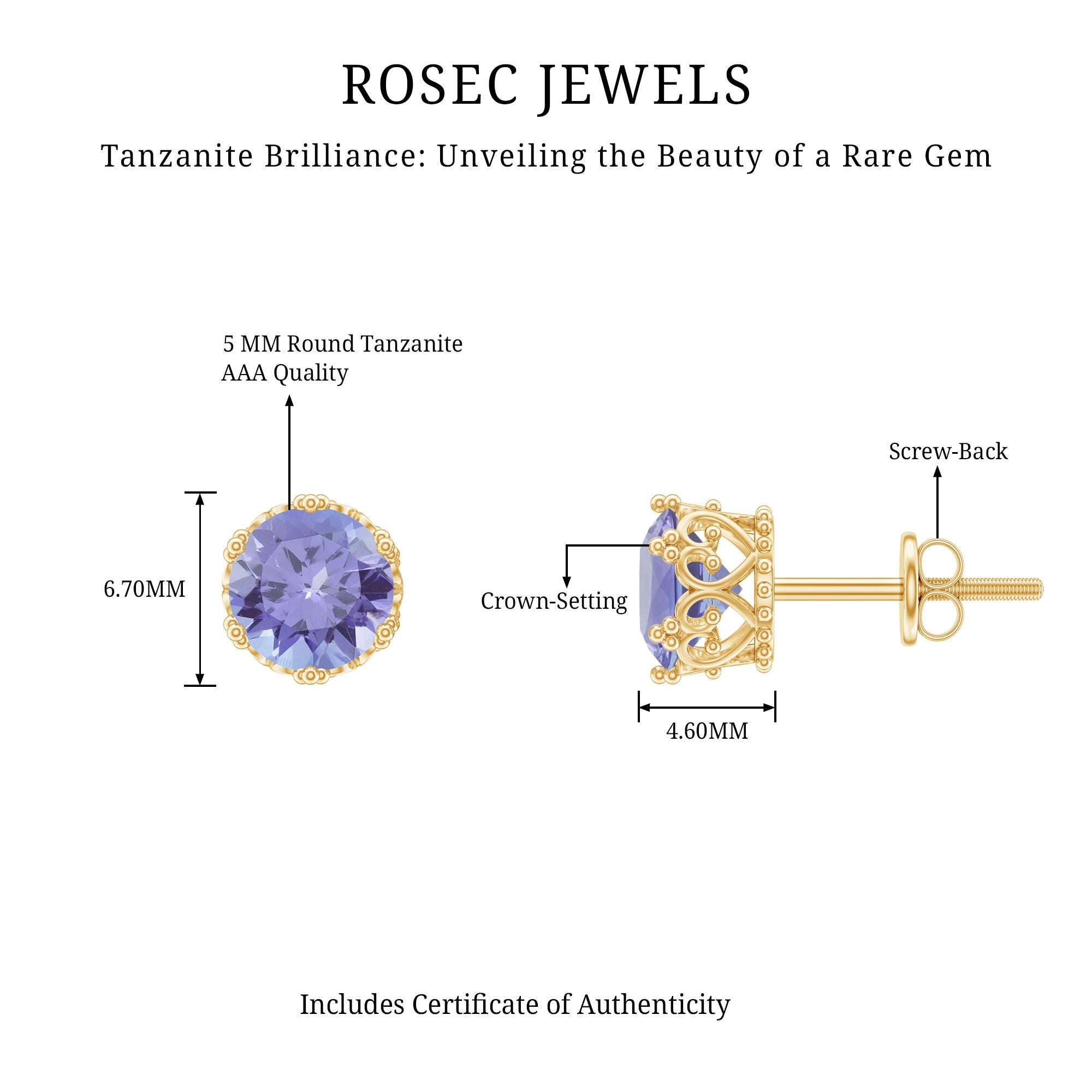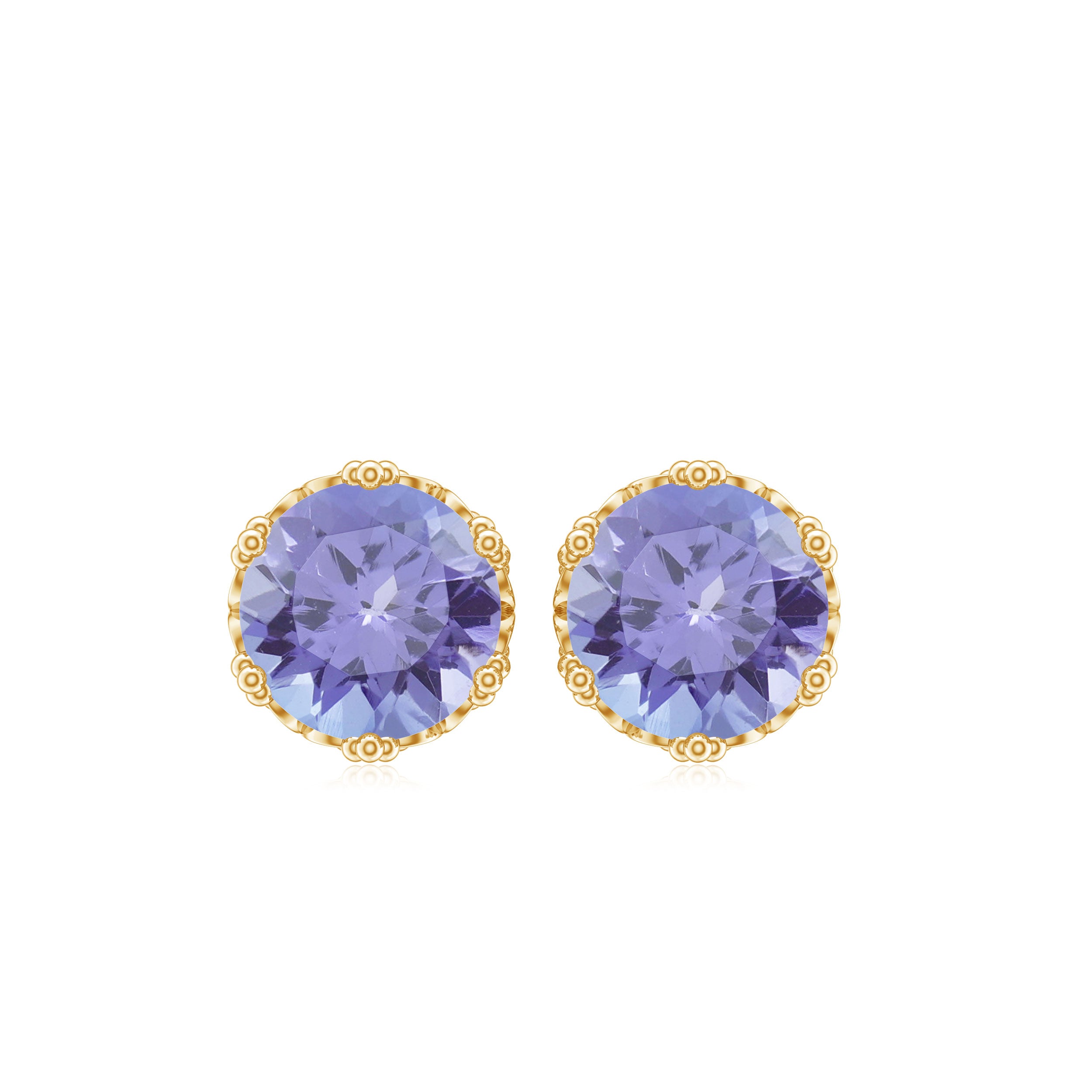Be Trendy with this Crown Stud Earrings are embellished with Round Shape Tanzanite as Solitaire in Crown Setting. These Solitaire Stud Earrings are crafted in Solid Gold.