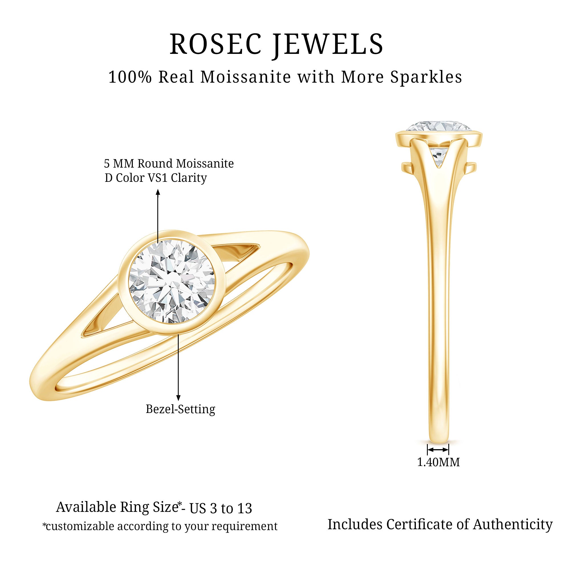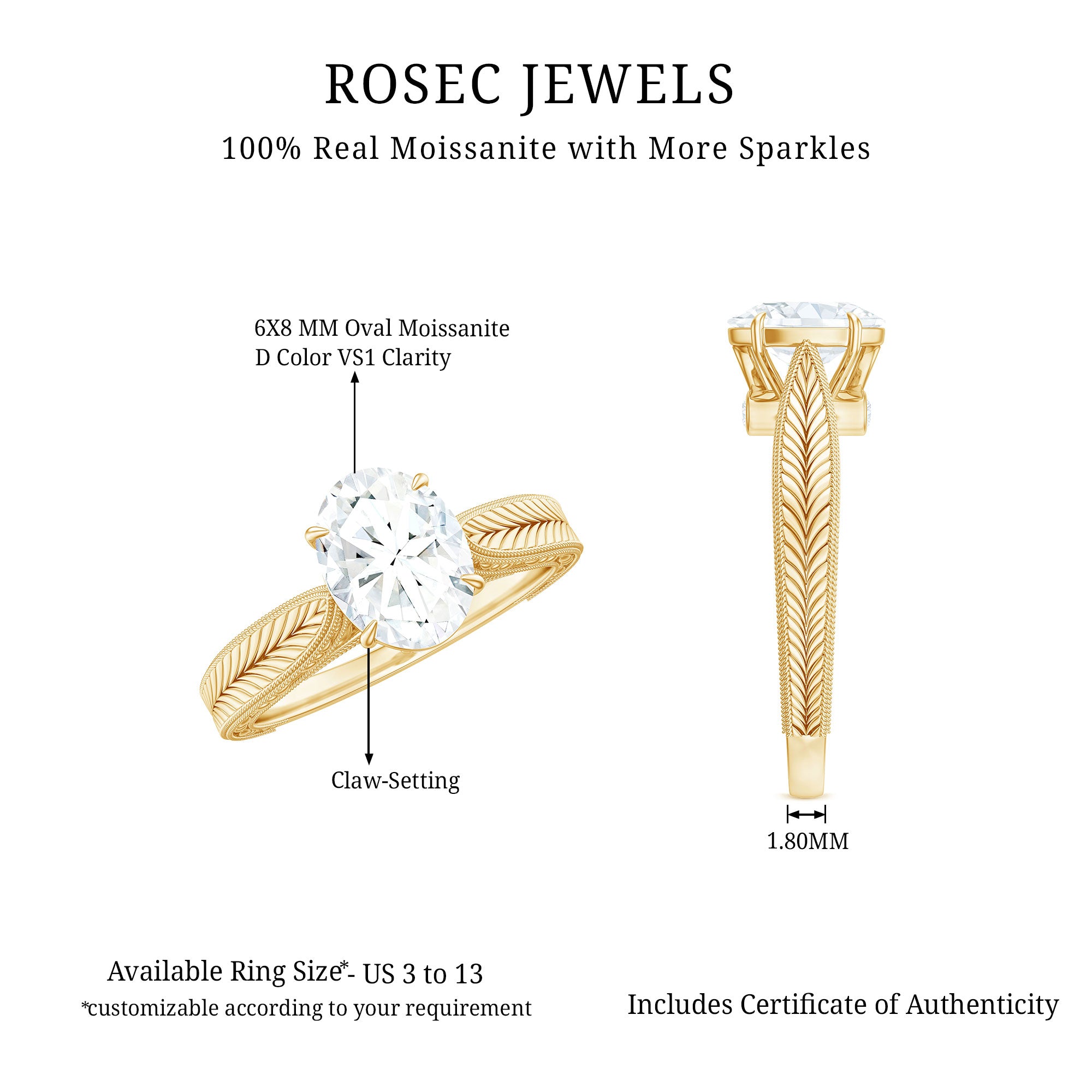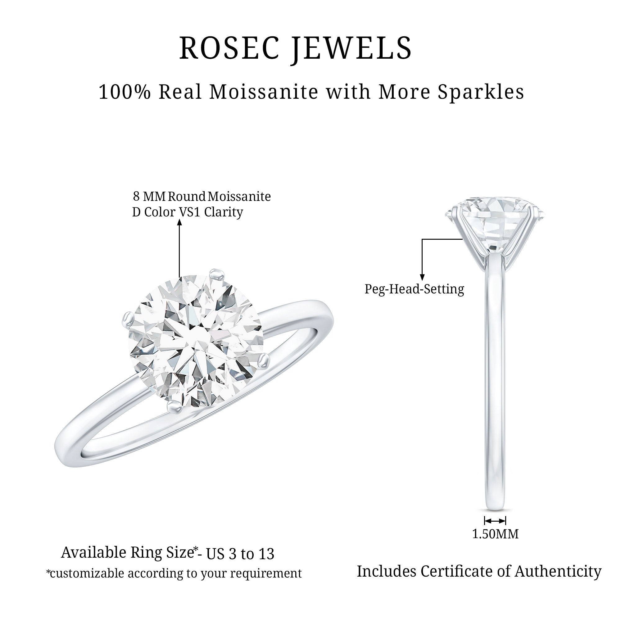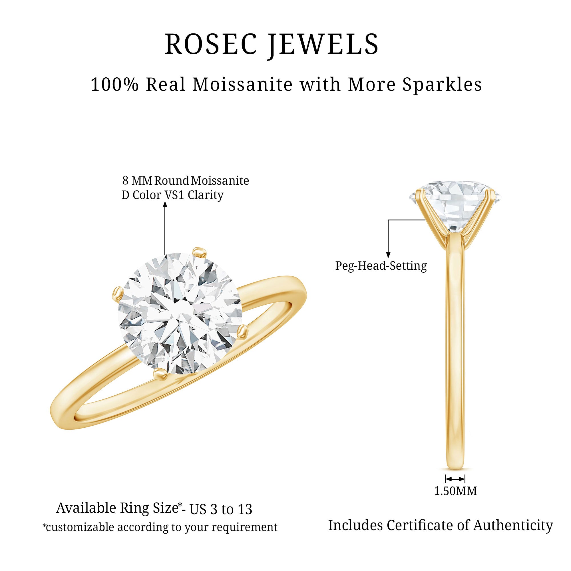 Besides that, the price is also dictated by your choice of Center Stone. While a Solitaire Ring embellished with Diamond or Precious Gemstone would be pricier, a semi-precious gemstone or Moissanite Solitaire Engagement Ring makes for a more pocket-friendly choice.