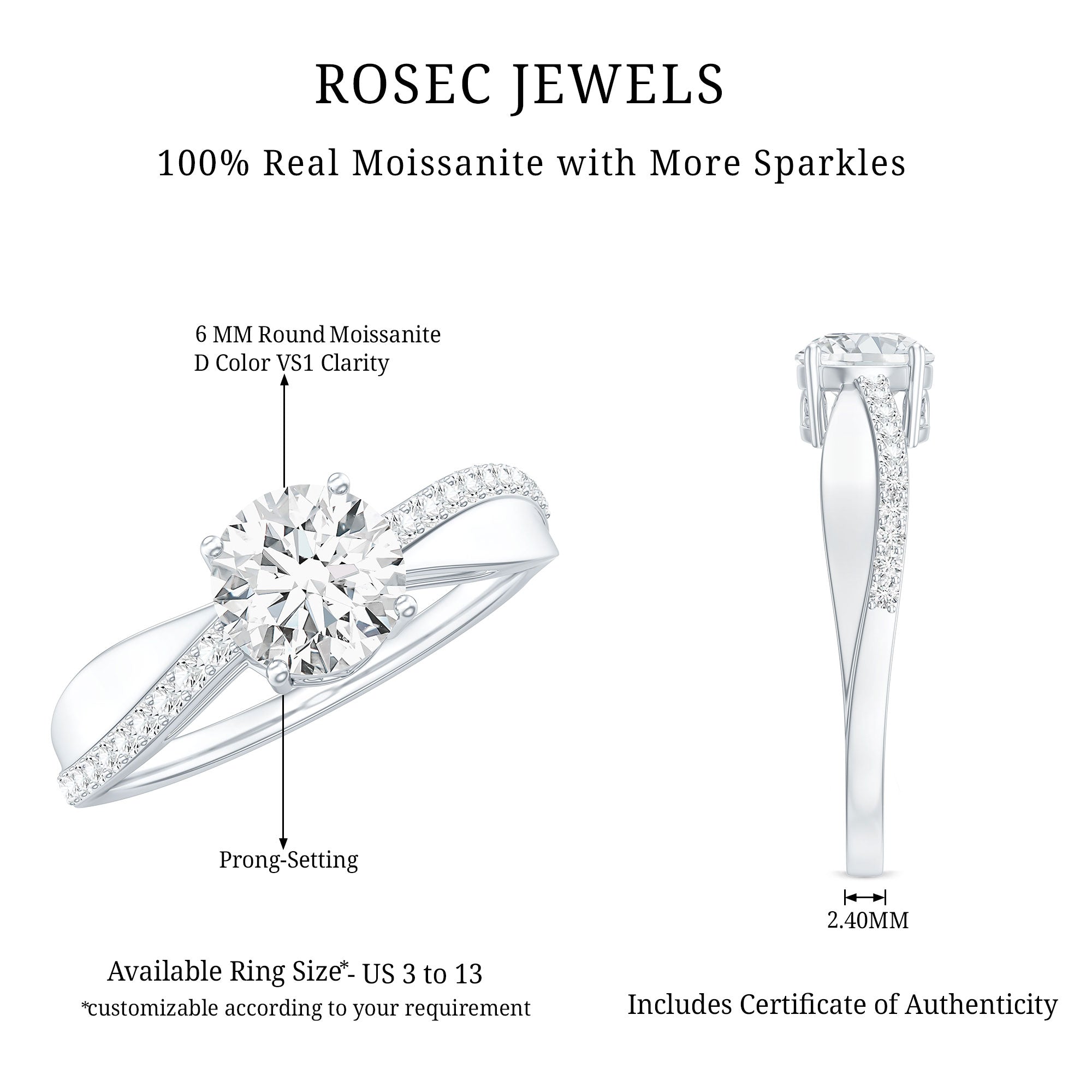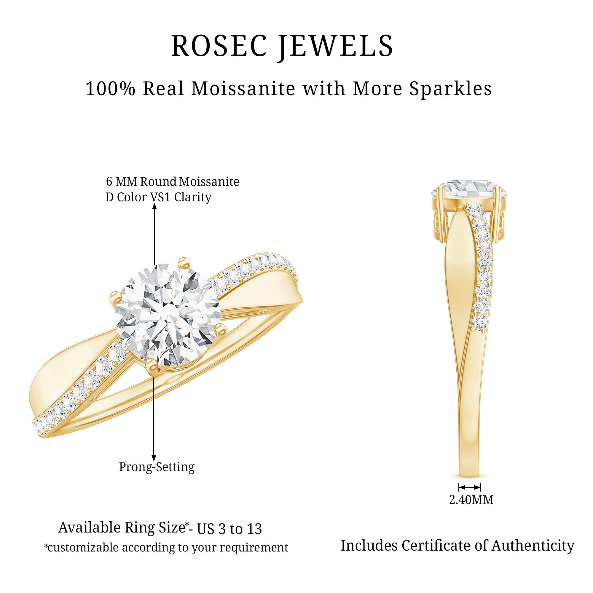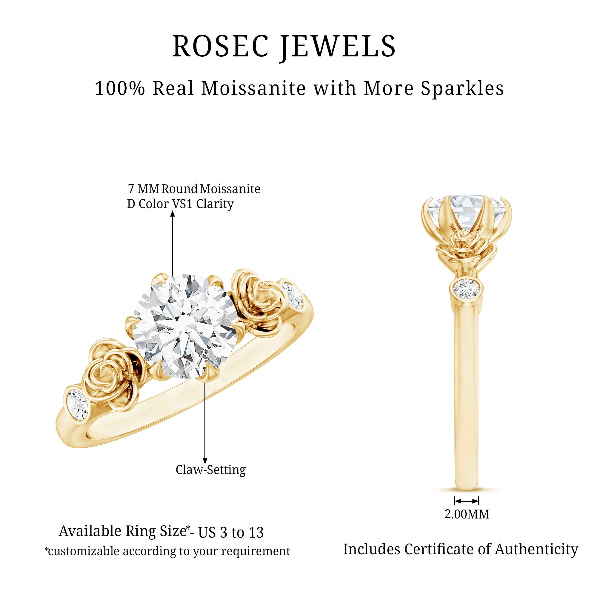 Besides that, the price is also dictated by your choice of Center Stone. While a Solitaire Ring embellished with Diamond or Precious Gemstone would be pricier, a semi-precious gemstone or Moissanite Solitaire Engagement Ring makes for a more pocket-friendly choice.