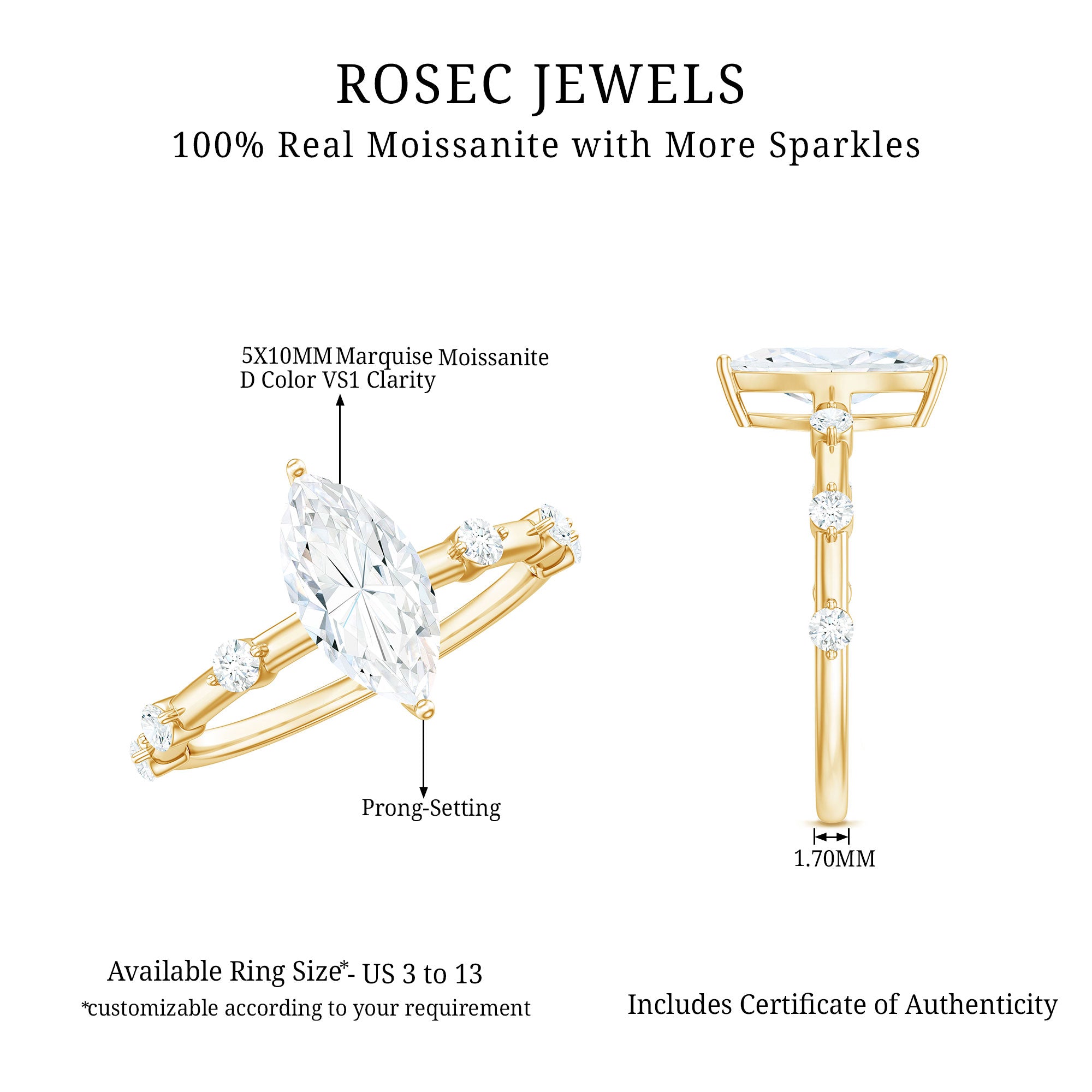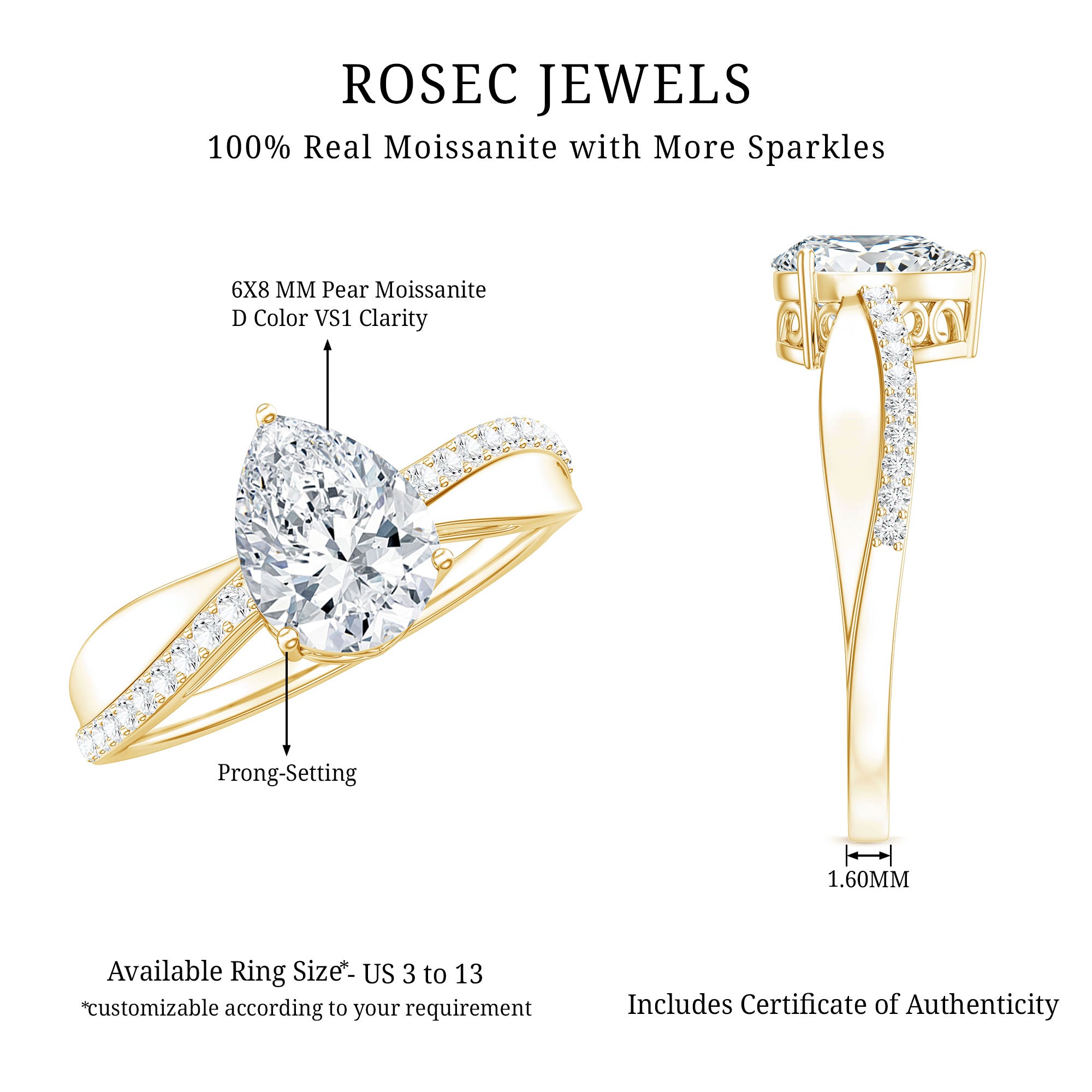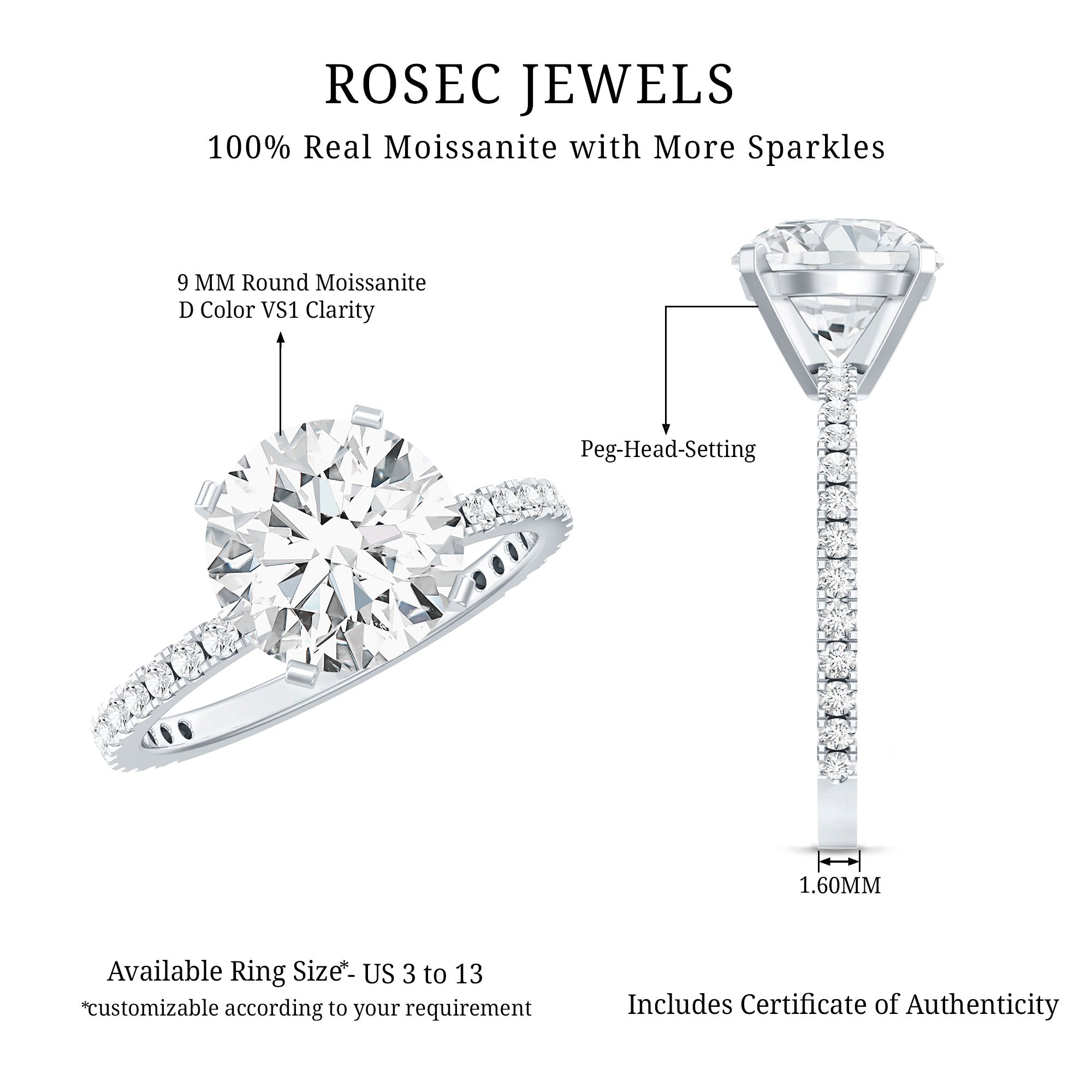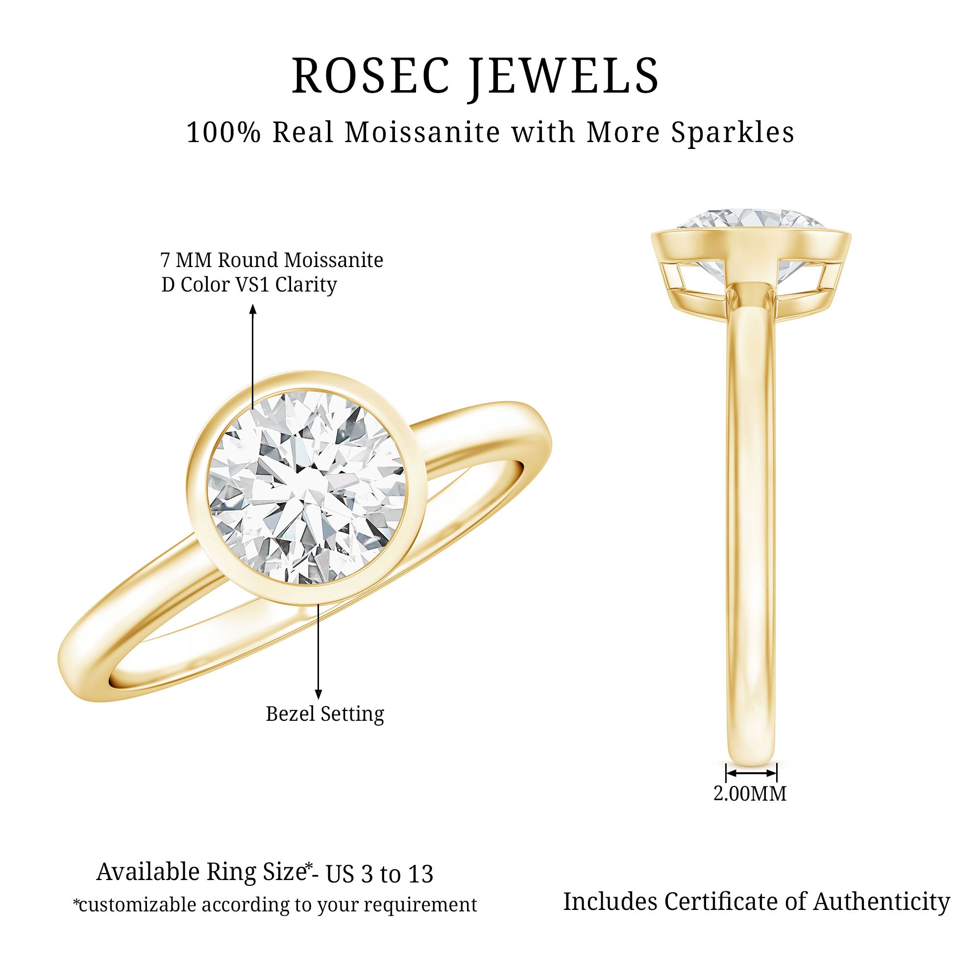 Besides that, the price is also dictated by your choice of Center Stone. While a Solitaire Ring embellished with Diamond or Precious Gemstone would be pricier, a semi-precious gemstone or Moissanite Solitaire Engagement Ring makes for a more pocket-friendly choice.