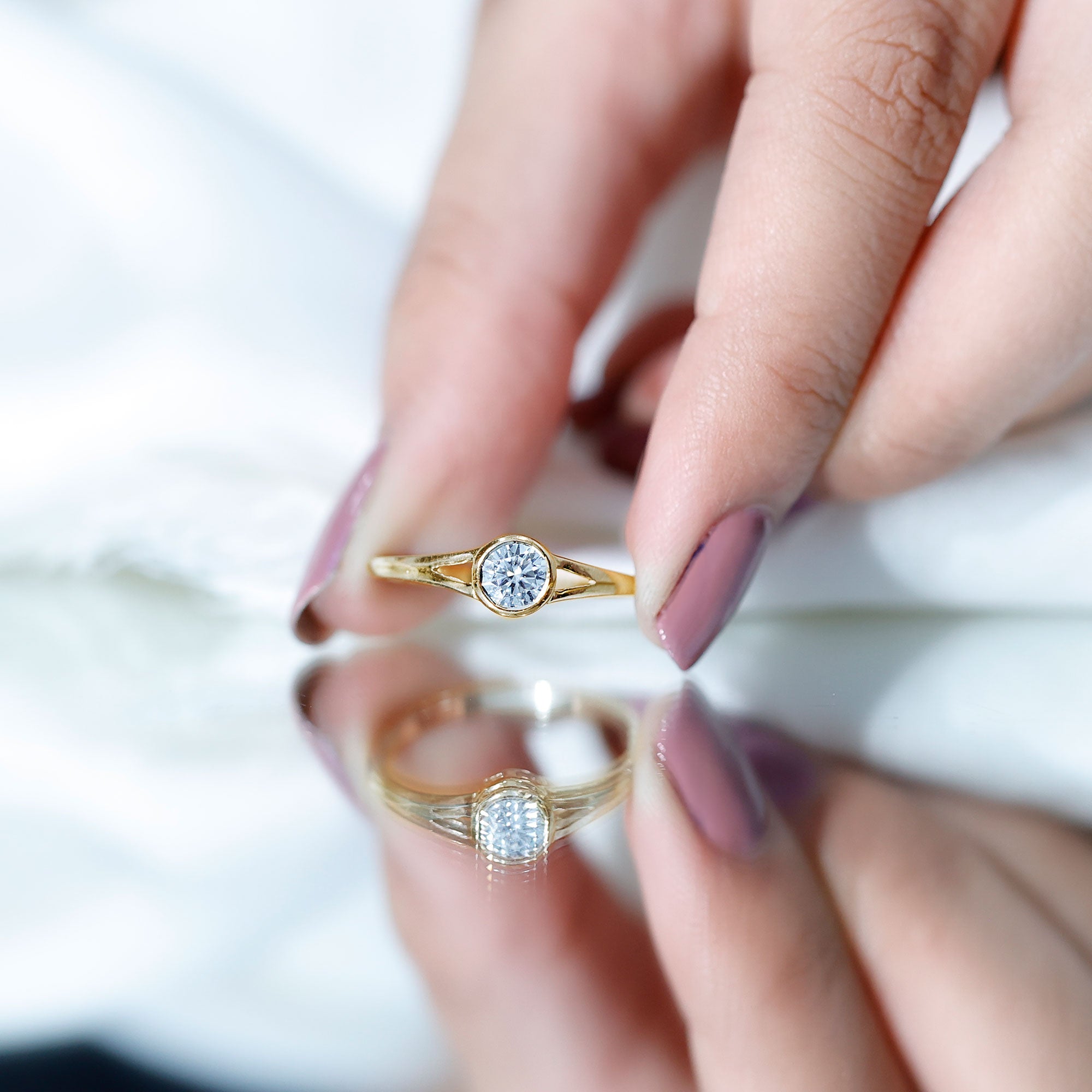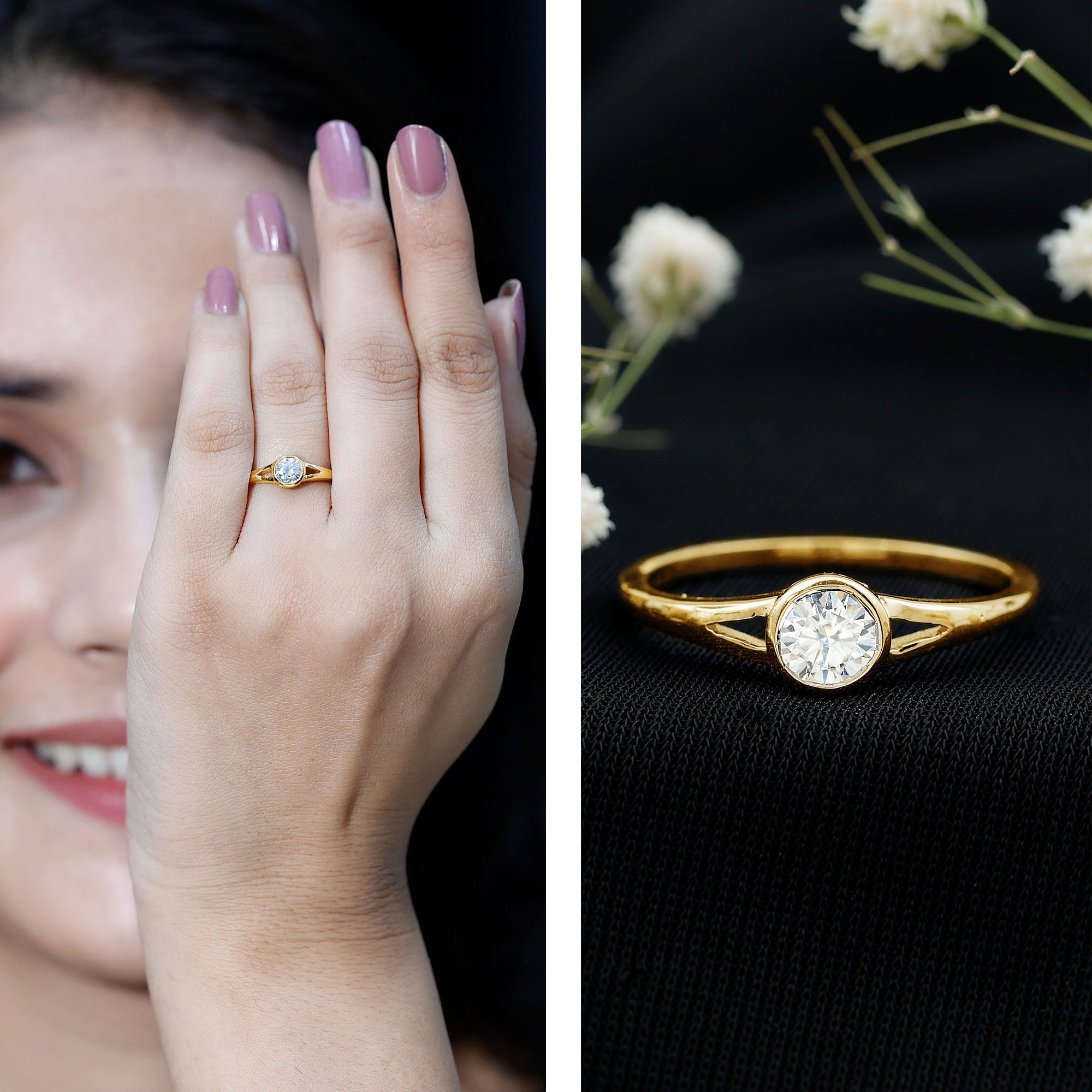 Apart from that, if you wish to play with the aesthetics of your betrothal ring, you’re in for a treat since our Gold Solitaire Engagement Rings come in three tones of metal (white, yellow and rose gold), each exuding a different aesthetic. While a Solitaire Ring fashioned in White Gold speaks to the ones with a more understated and minimal sense of style, the ones fashioned in Yellow Gold are meant for the traditional couples. A Rose Gold Solitaire Engagement Ring, on the other hand, has emerged as a feminine cum romantic ring.