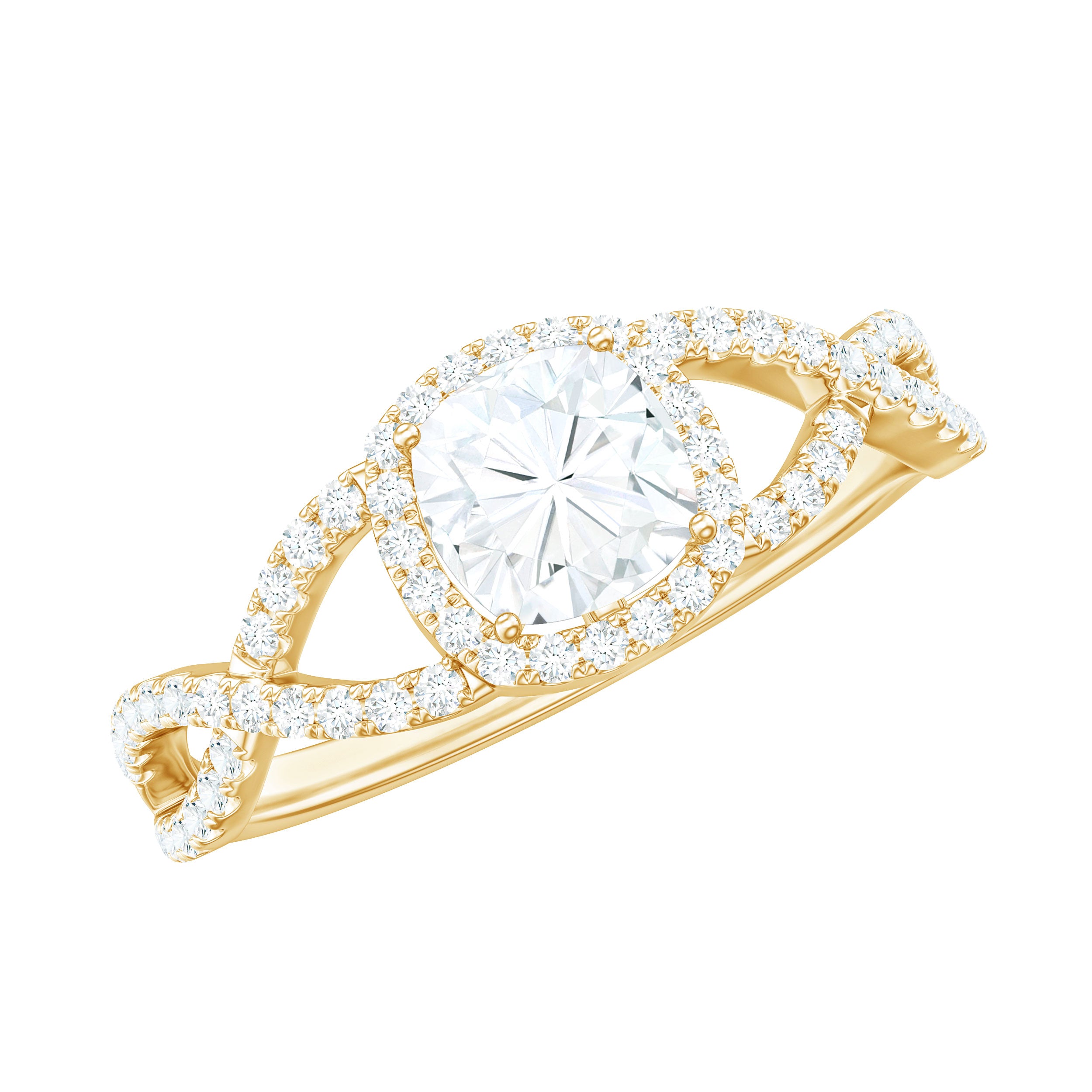 6mm Cushion Cut Moissanite Halo Engagement Ring with Crossover Shank