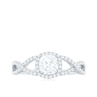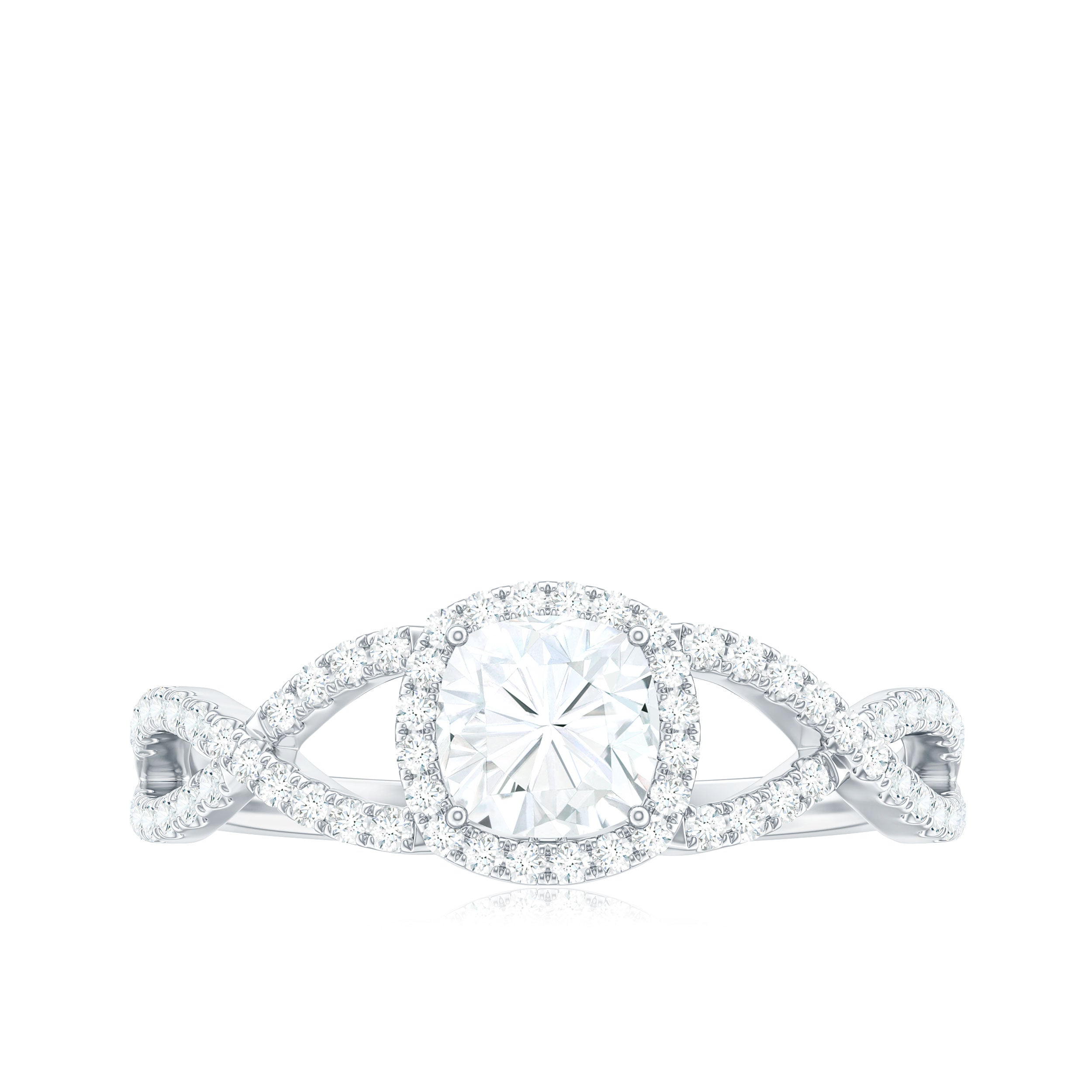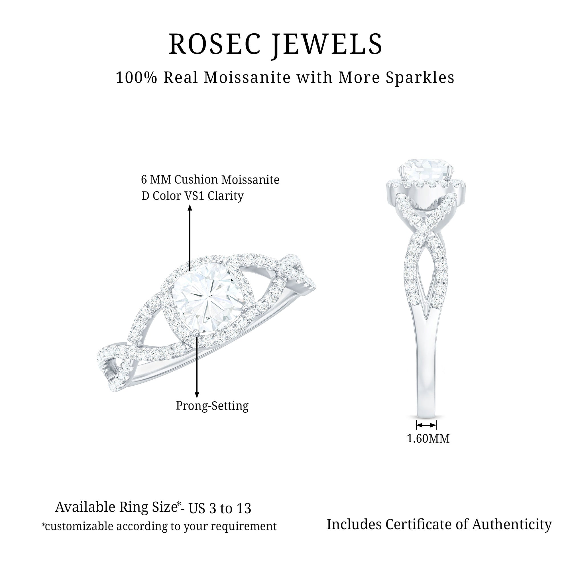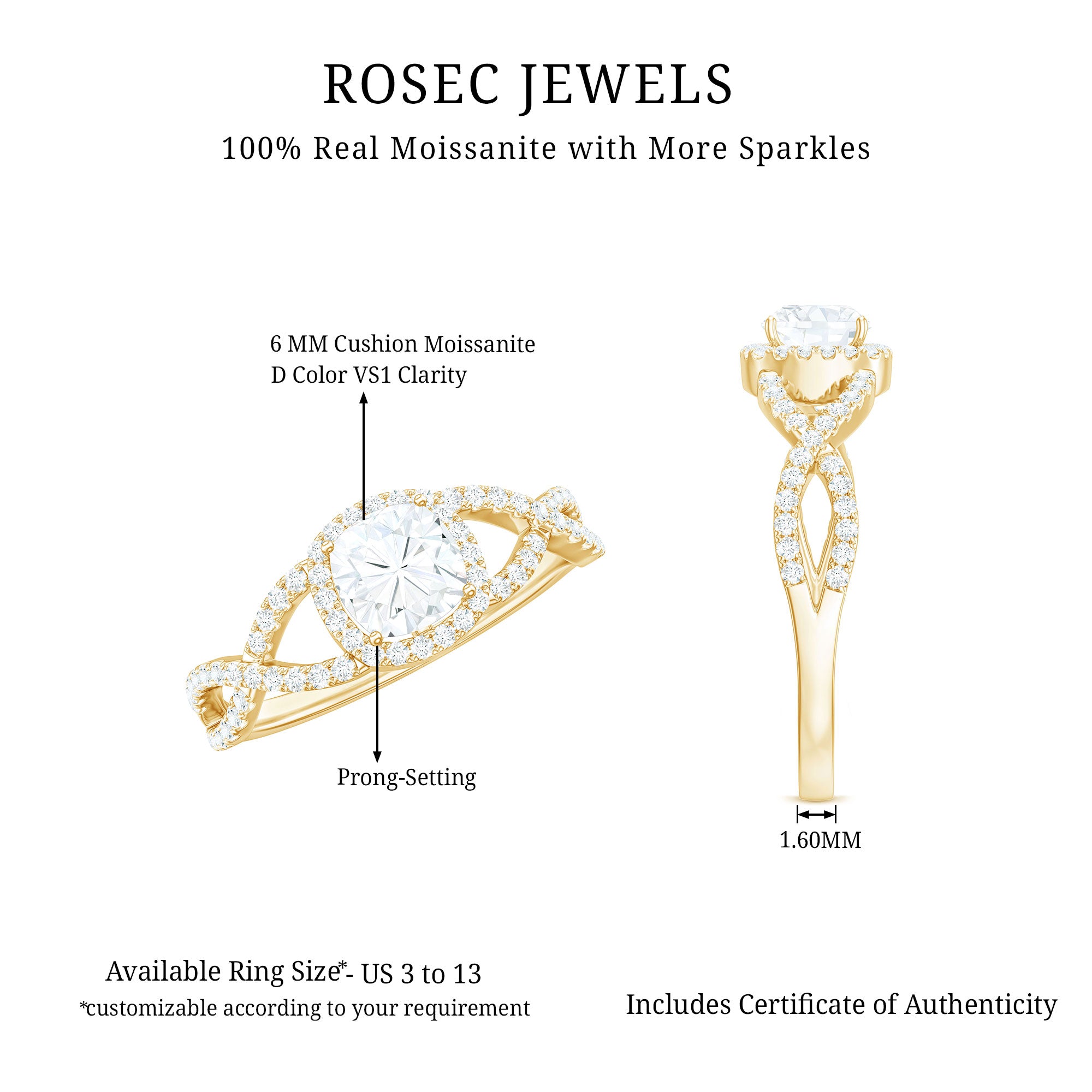 6mm Cushion Cut Moissanite Halo Engagement Ring with Crossover Shank