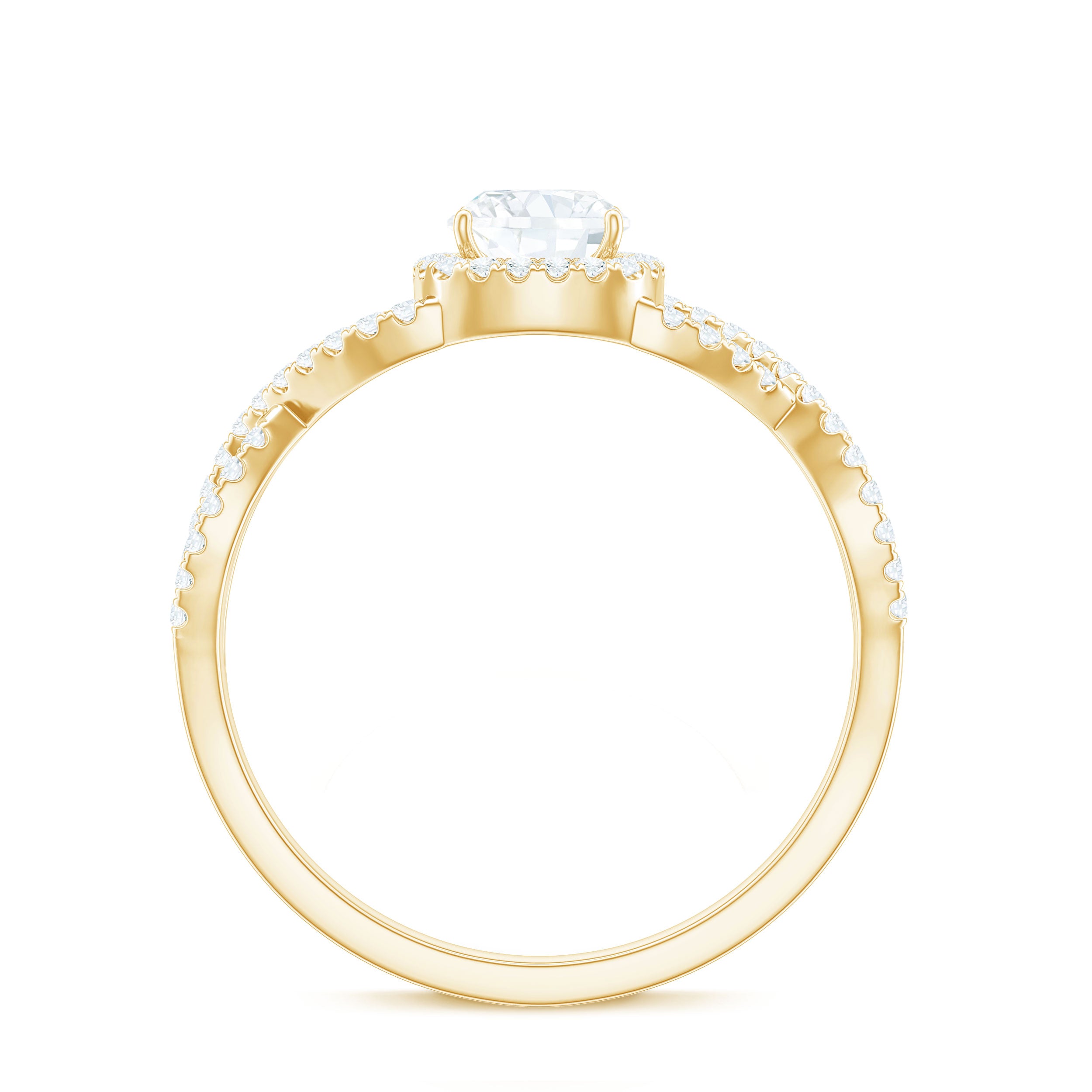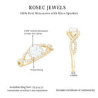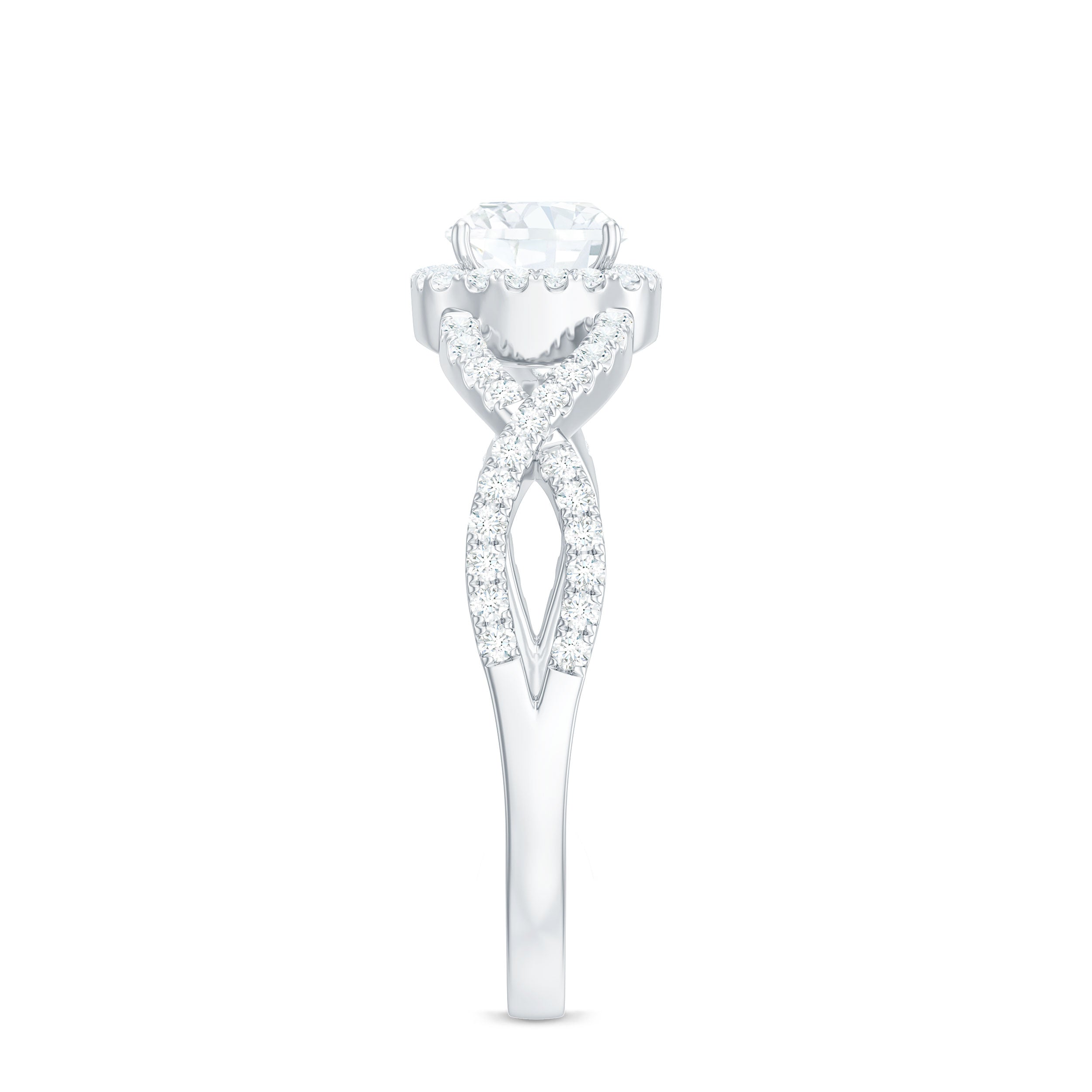 Given the purity and unconditional nature of your love for her, why not select this Halo Ring to convey your emotions. The Crossover Engagement Ring showcases a 6mm cushion cut Moissanite set in a 4-Prong Setting, enhanced by the Halo design, while the crossover shank is embellished with side stones both having tiny round shape moissanites, making it a more attractive choice for her. This Halo Engagement Ring has a total weight of 2 ct, featuring D Color and VS1 Clarity quality. Having a classic design, this Moissanite Halo Ring has a modern style and unique aesthetic that enhances the beauty of your special day. Brilliantly catching the light, this Moissanite Engagement Ring is a treasure hunt that symbolizes the unwavering growth of your love. Having a timeless appeal, this Womens Moissanite Ring captivates admirers with the mesmerizing play-of-color and has a classy way to showcase your love with the state-of-the-art deco design.