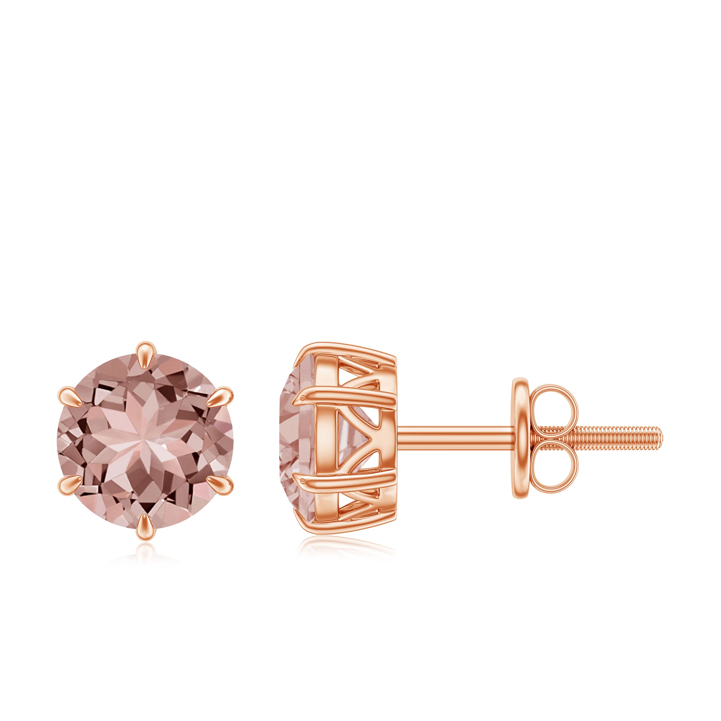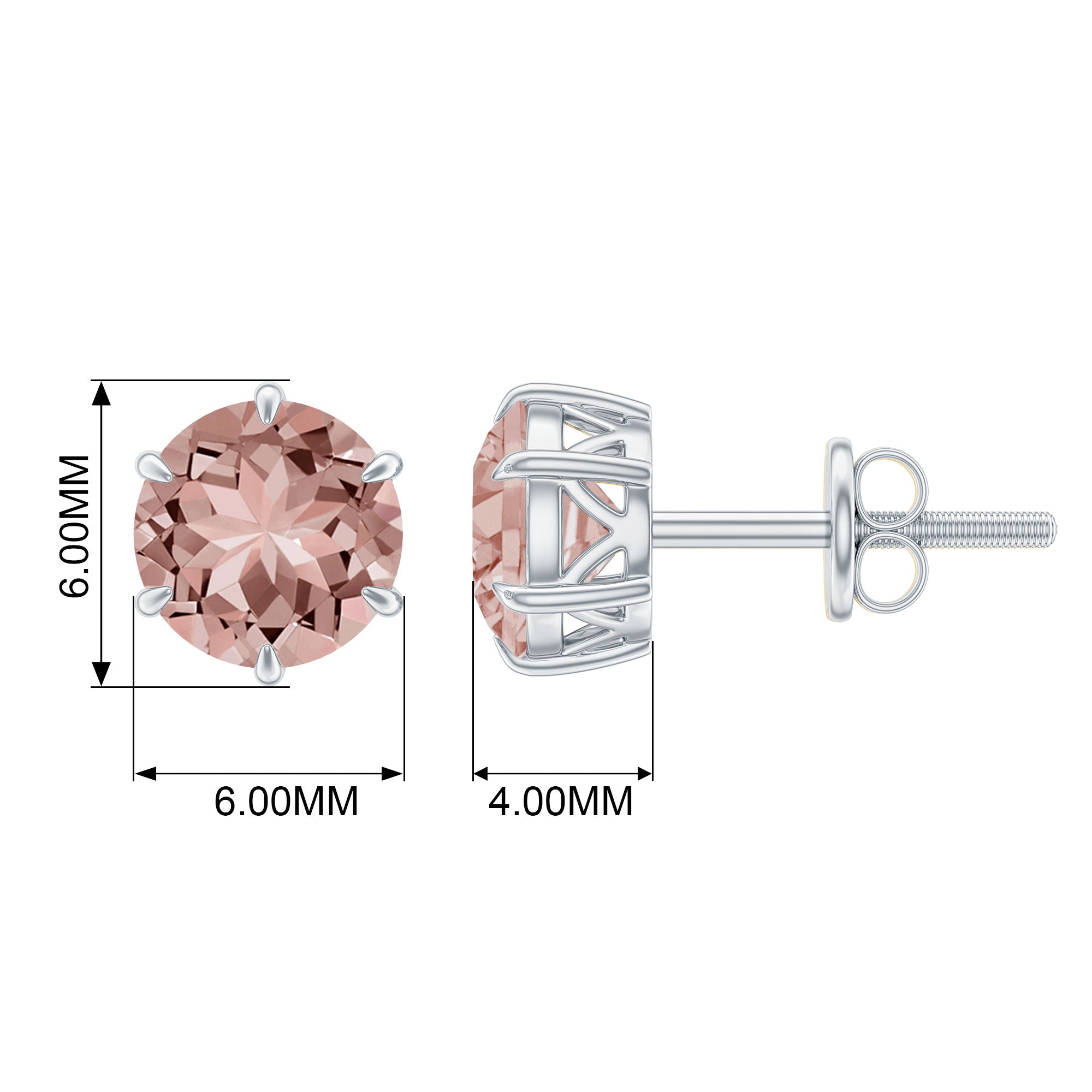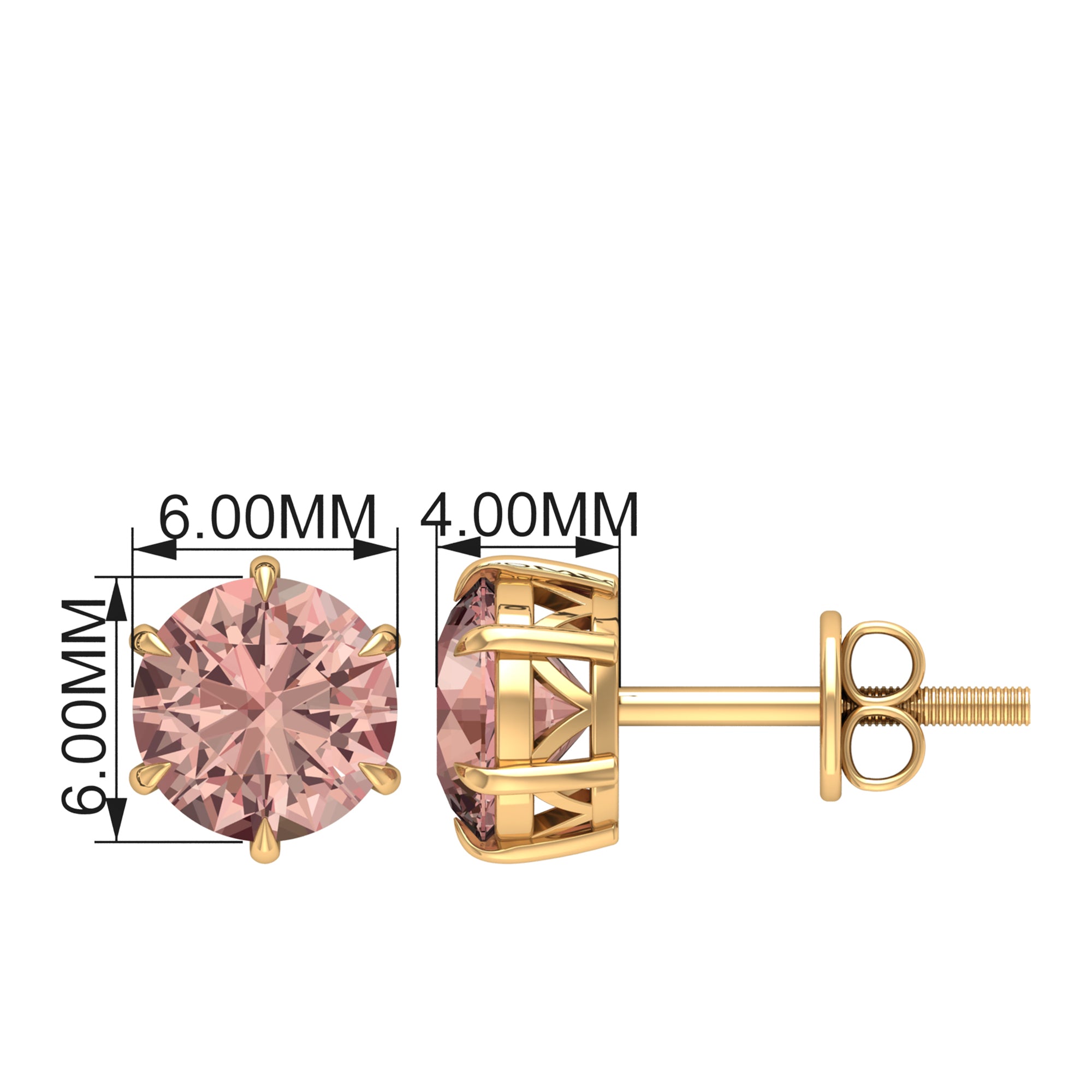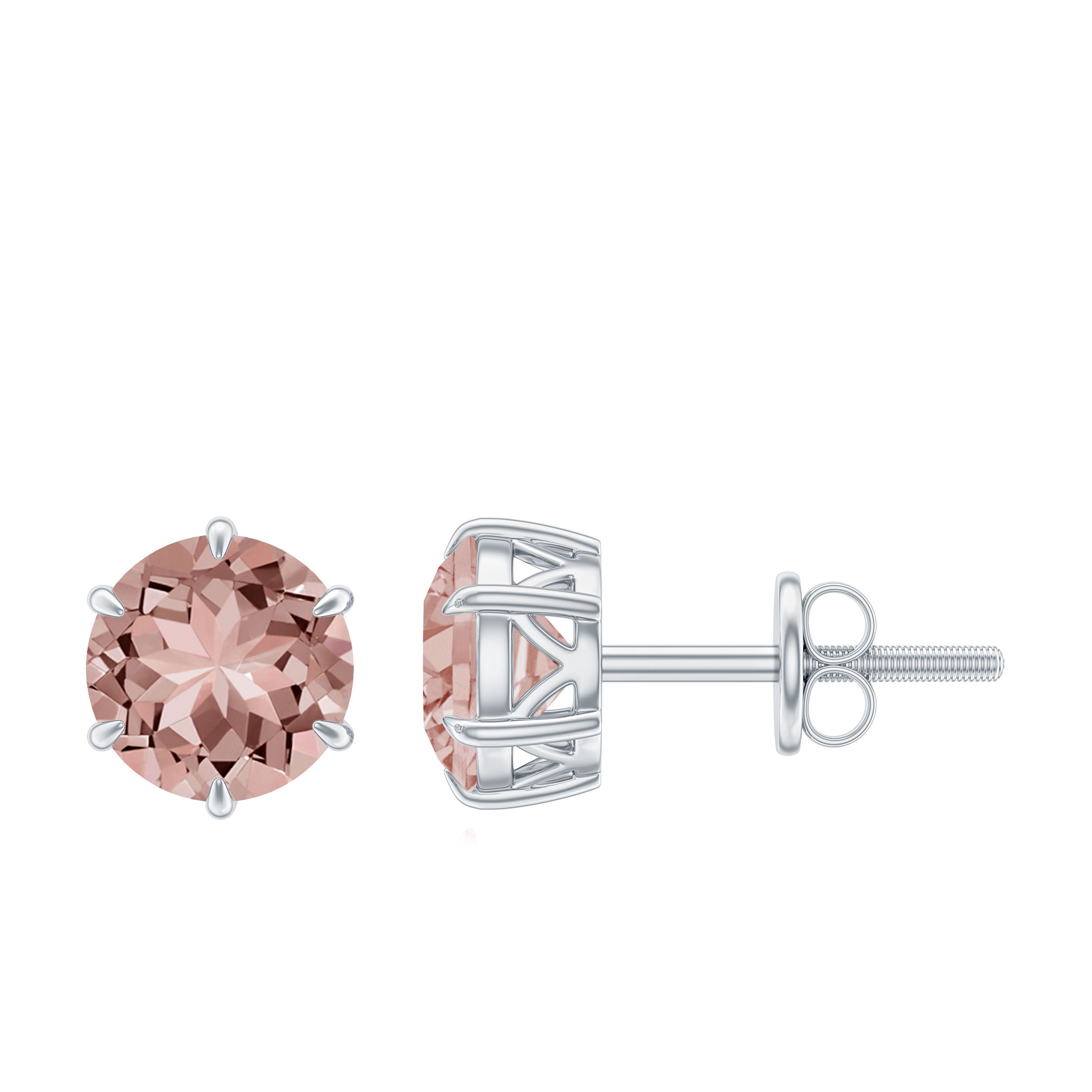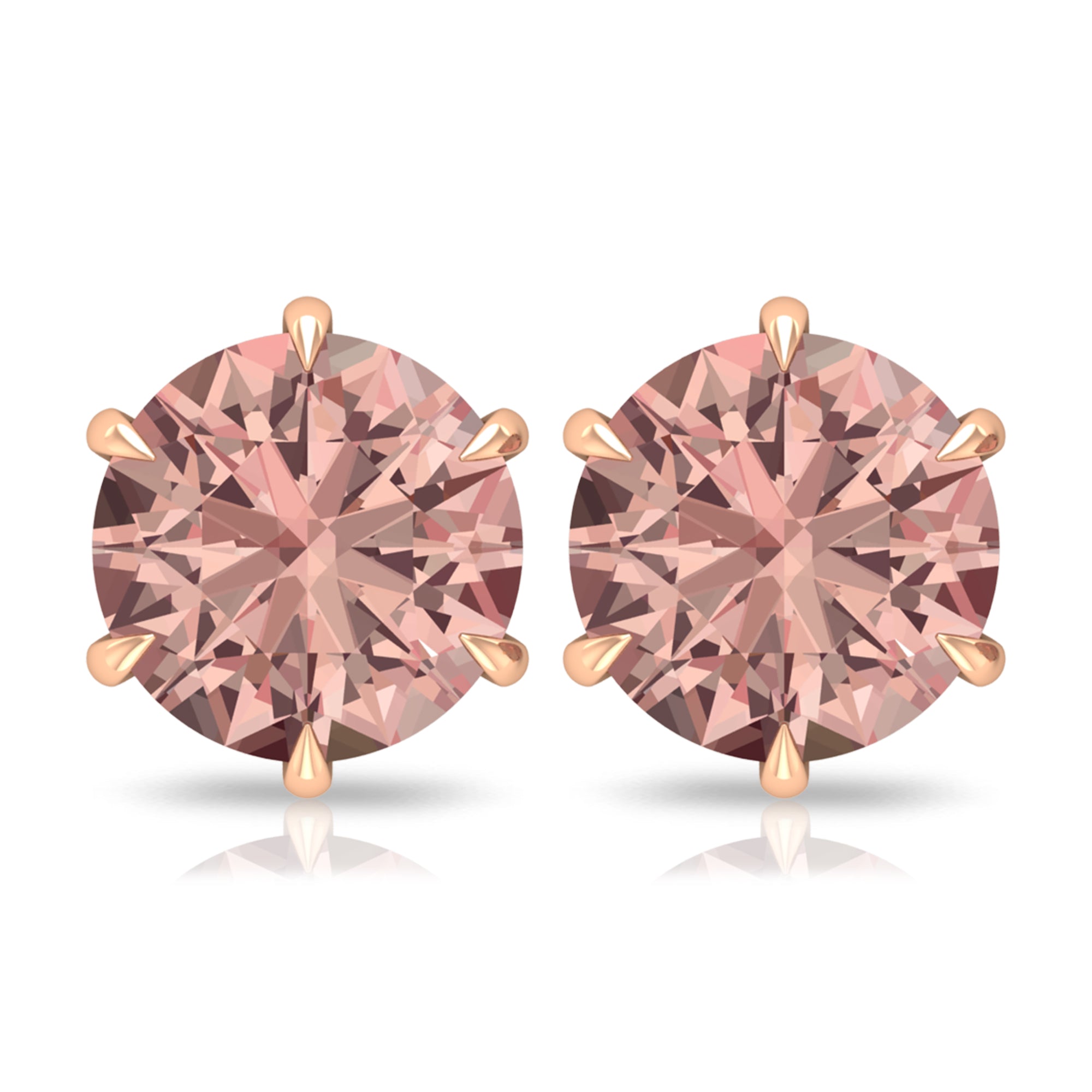 6X6 MM Morganite Solitaire Stud Earring in 6 Claw Prong Setting