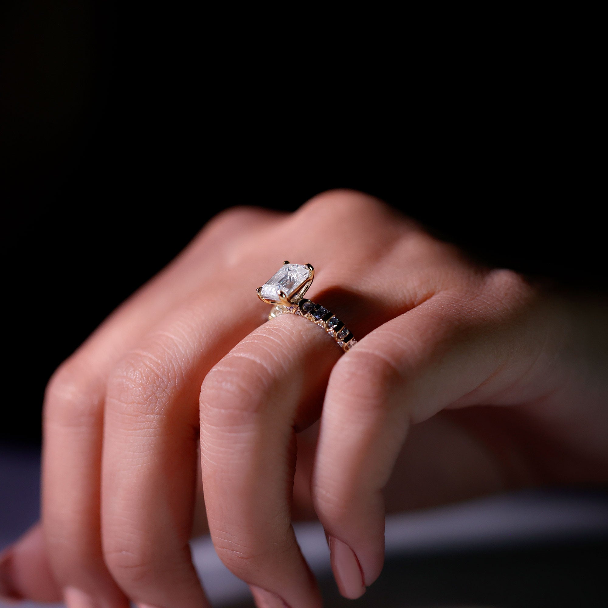 This Lab Grown Diamond Ring is truly gorgeous, with a timeless look that can never go out of style. Shining radiantly this Emerald Cut Engagement Ring has a graceful and elegant design that surely you would love to flaunt every time you wear. It is adorned with 6X8 MM Emerald Cut Lab Grown Diamond in Claw Setting, sparkling from the center. To adorn the shank are the Side Stones, accented on the shank, giving a scintillating effect. To add more grace are the Round Lab Diamond are arranged on the bridge of the ring, giving it a closing statement look, by showcasing EF Color and VS Clarity Lab Diamond. Designed for the moment she says yes, this Timeless Engagement Ring blends refined simplicity and vintage-inspired modernity. This Vintage Art Deco Ring is a modern and refined take on the classic Art Deco inspired design. It is also an effortless choice for the bride-to-be who appreciates understated luxury.