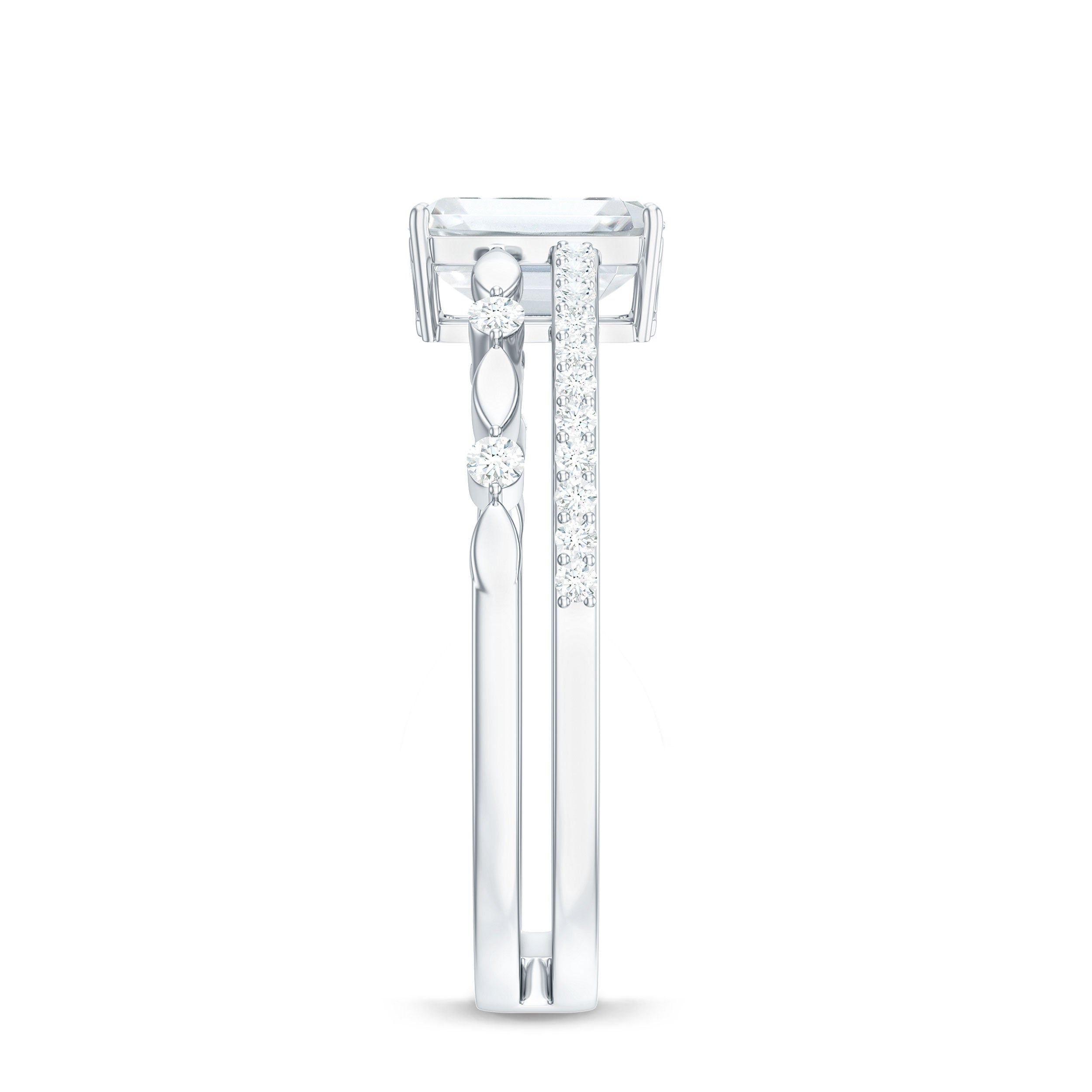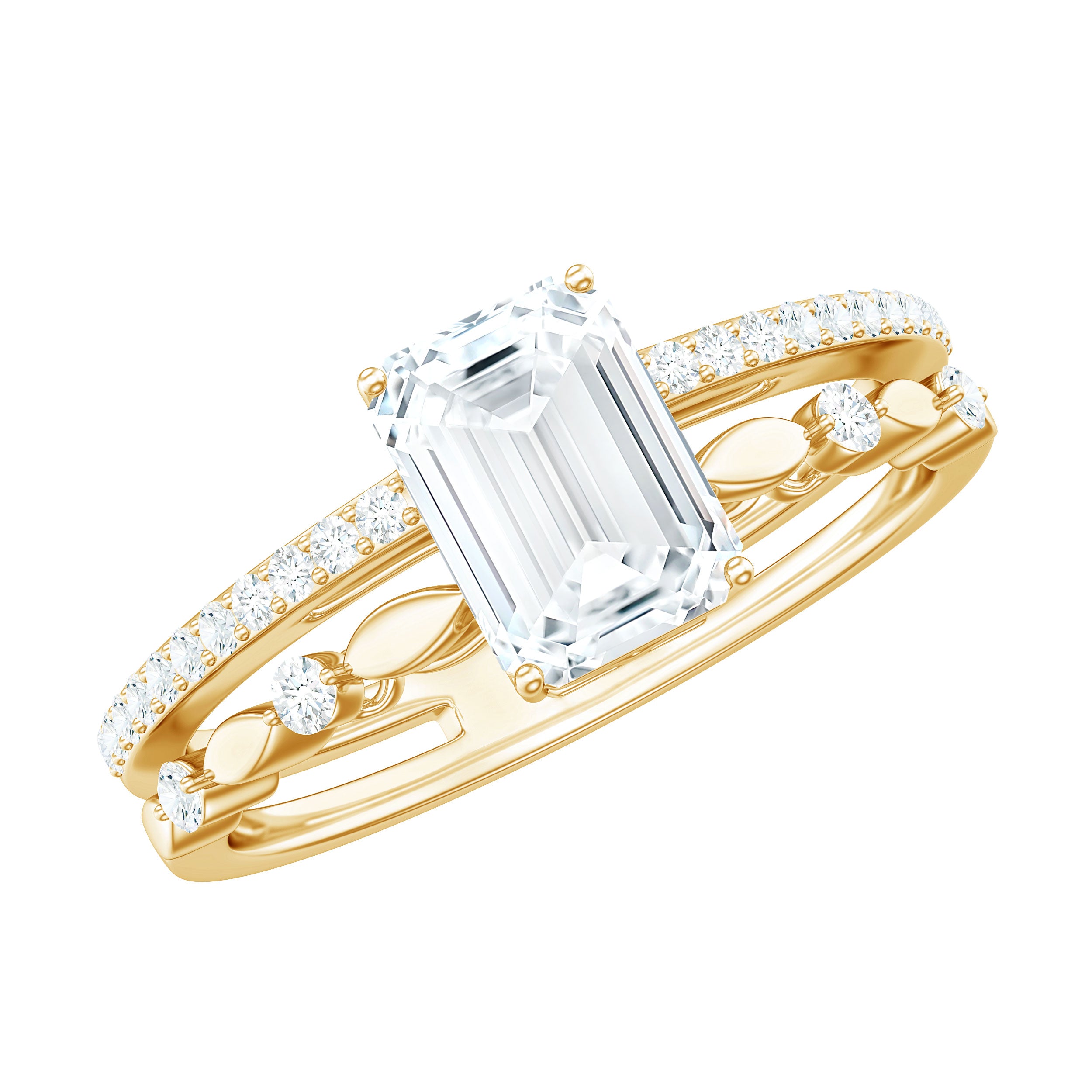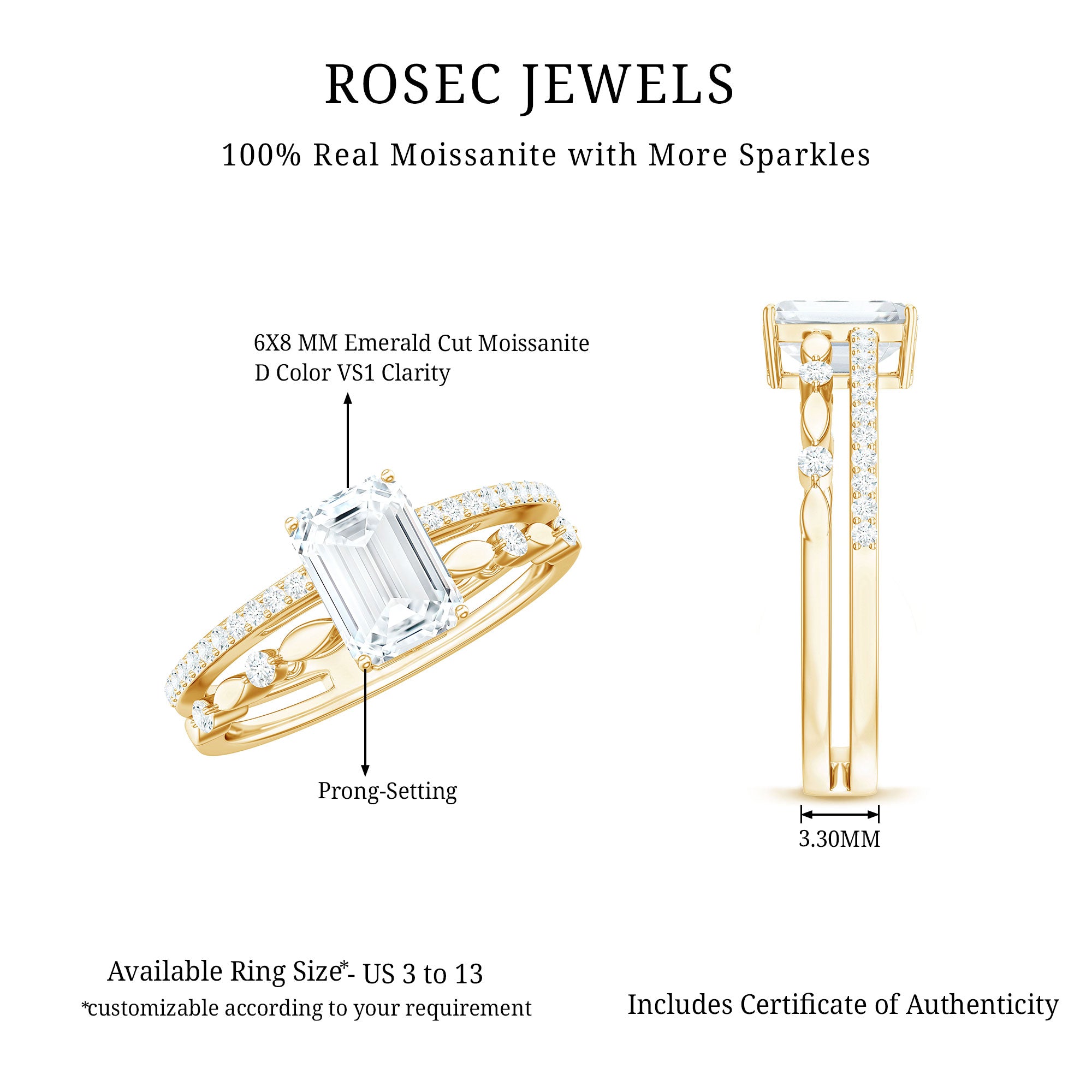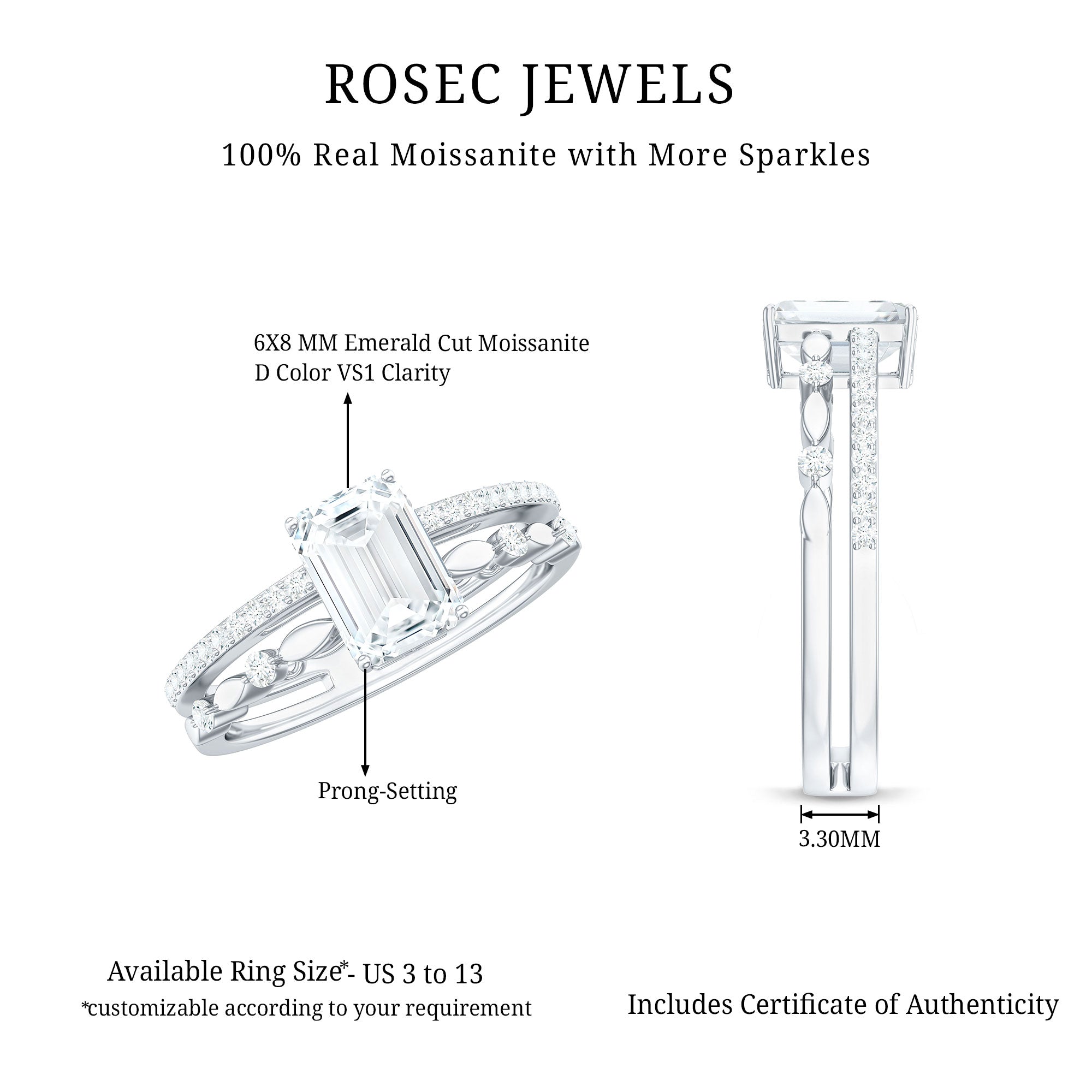 6X8 mm Emerald Cut Moissanite Solitaire Engagement Double Band Ring