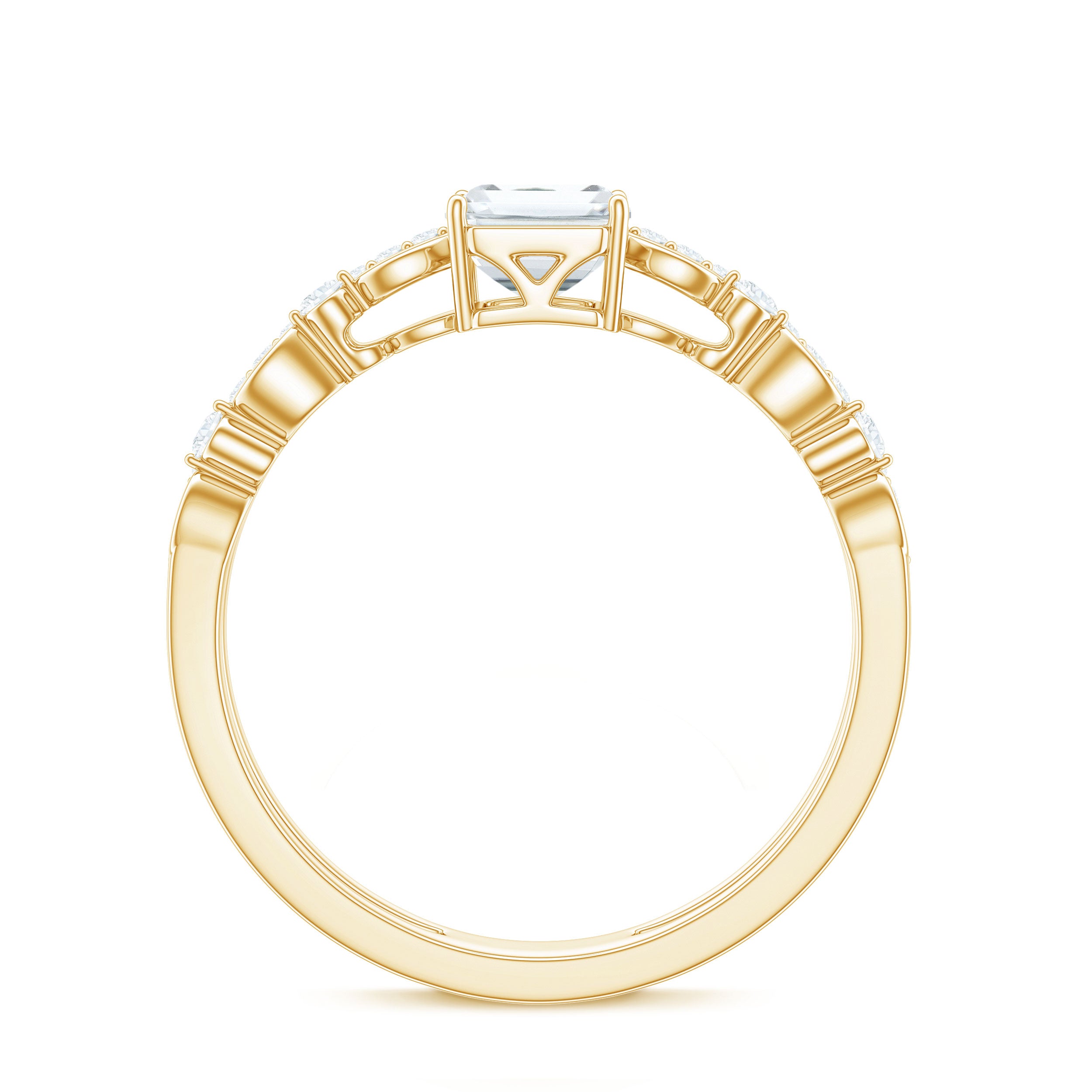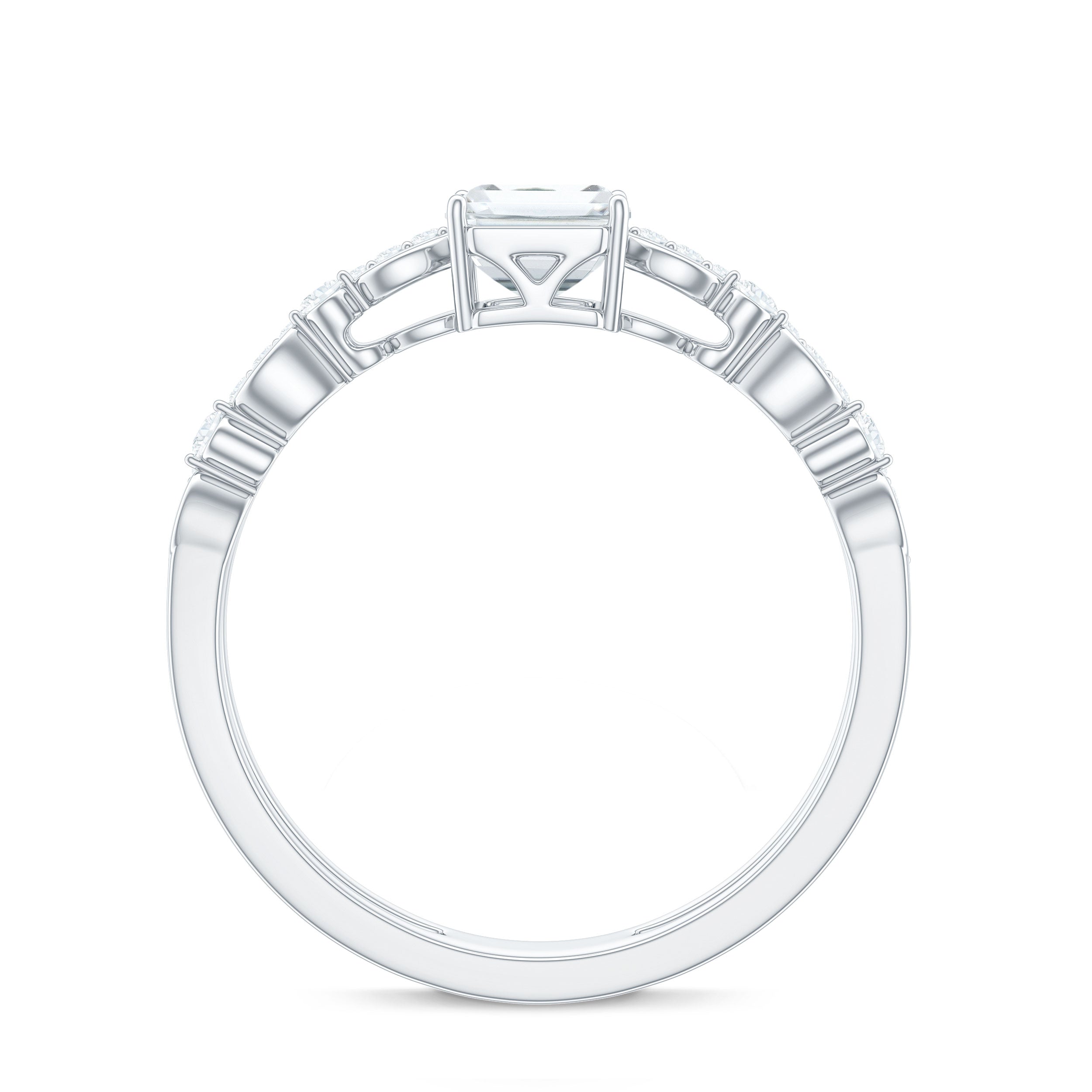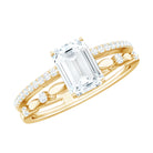 Timeless elegance that will last a lifetime, this Emerald Cut Engagement Ring is a stunning symbol of love and commitment. Featuring with 6X8 MM emerald cut moissanite set at the center, securely held in prong setting that allows light to reflect from every angle, creating a beautiful sparkle that is hard to miss. Enhancing its allure, the double band is embellished with sparkling round moissanite stones that harmoniously enhance the central gem. This Double Band Engagement Ring showcases an elegant design, providing depth, style, and a contemporary interpretation of a classic appearance. This distinctive feature symbolizes the union of two lives merging into one, serving as a profound and significant emblem of your future together. The brilliance of the side stones enhances the center gem, making the entire Moissanite Engagement Ring shine with elegance and beauty. Every element is handcrafted with care, bringing out the best in each stone and giving the ring a high-end, refined finish. Perfect for proposals, anniversaries, or special celebrations, this Designer Moissanite Ring is more than just jewelry, it’s a lasting expression of love, promise, and devotion. Whether worn daily or on special occasions, it is a piece that will always make a statement.