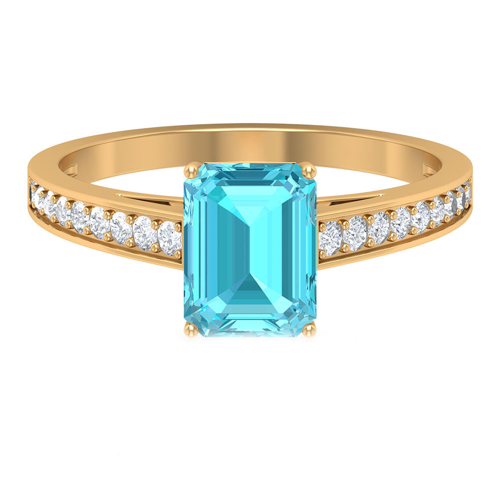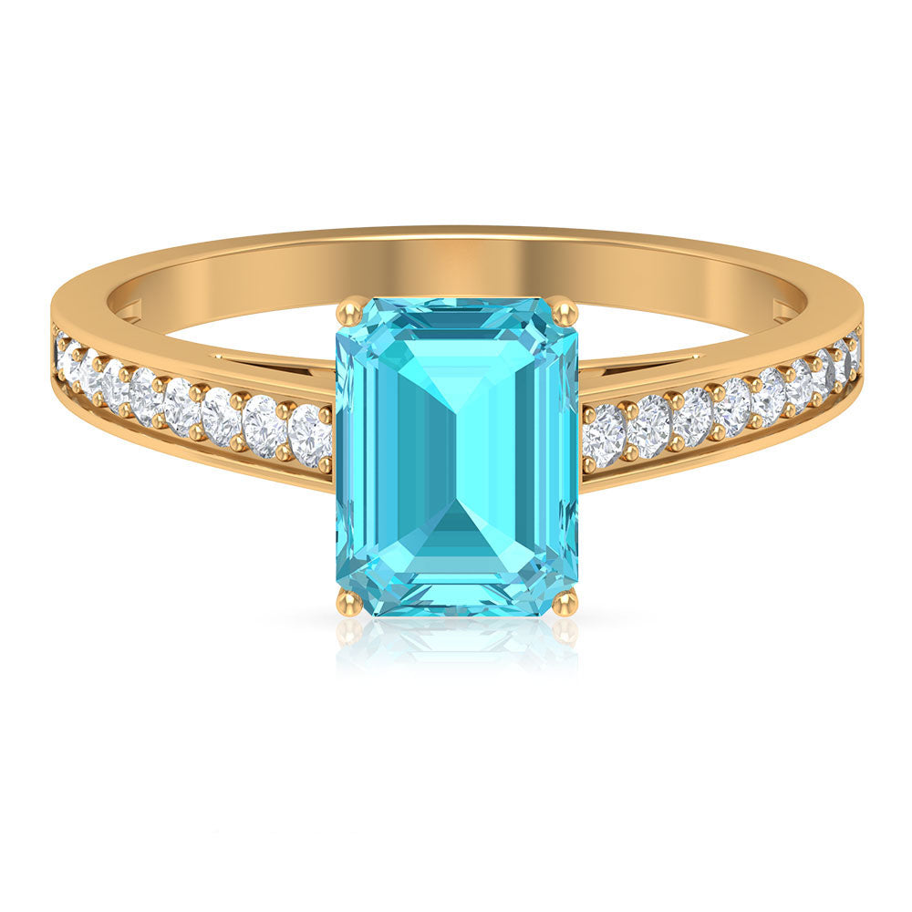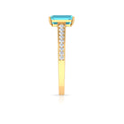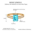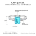6X8 MM Emerald Cut Shaped Swiss Blue Topaz Solitaire with Diamond Side Stone Ring