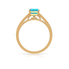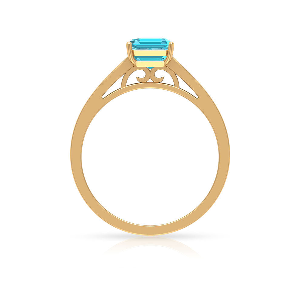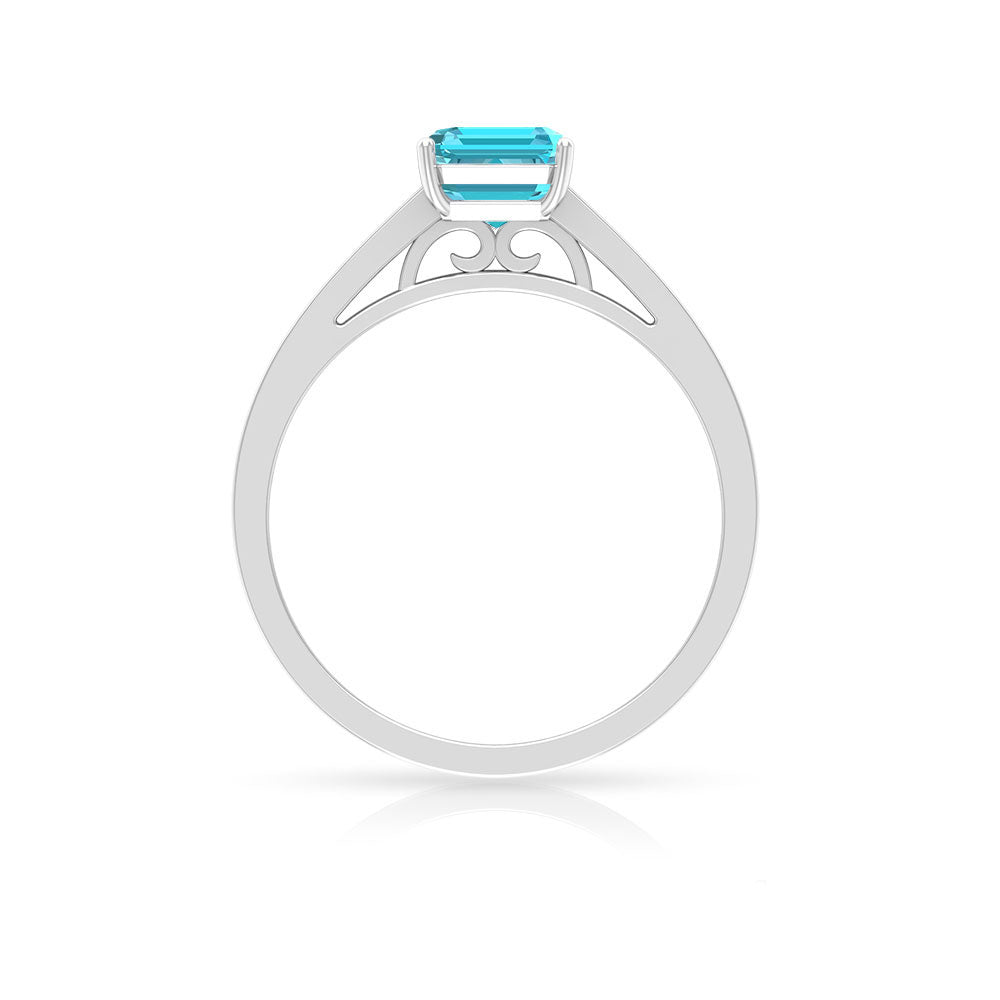 Dazzle around in this Solitaire Engagement Ring studded with a 6X8 MM Emerald Cut Solitaire of Swiss Blue Topaz, birthstone of the month December accentuated by Diamond side stone which will enhance your ensemble.