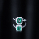 6X8 MM Lab Created Emerald Halo Engagement Ring With Moissanite