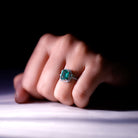 Begin your forever journey with our Emerald Halo Ring, a ring that whispers sophistication. Features 6X8 MM lab created emerald wrapped in a halo frame of moissanite completing the look. With the AAAA quality of the created emerald, this emerald ring ensures exceptional durability and sustainability. The graceful charm of the halo engagement ring is sure to embrace your engagement day and create lovely memories with your partner.