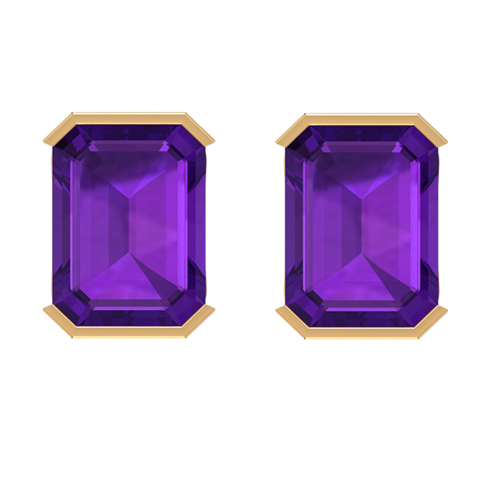 These Beautiful Stud Earrings are embellished with Octagon Cut Amethyst set in Half Bezel Setting. These Solitaire Stud Earrings are crafted in Solid Gold.