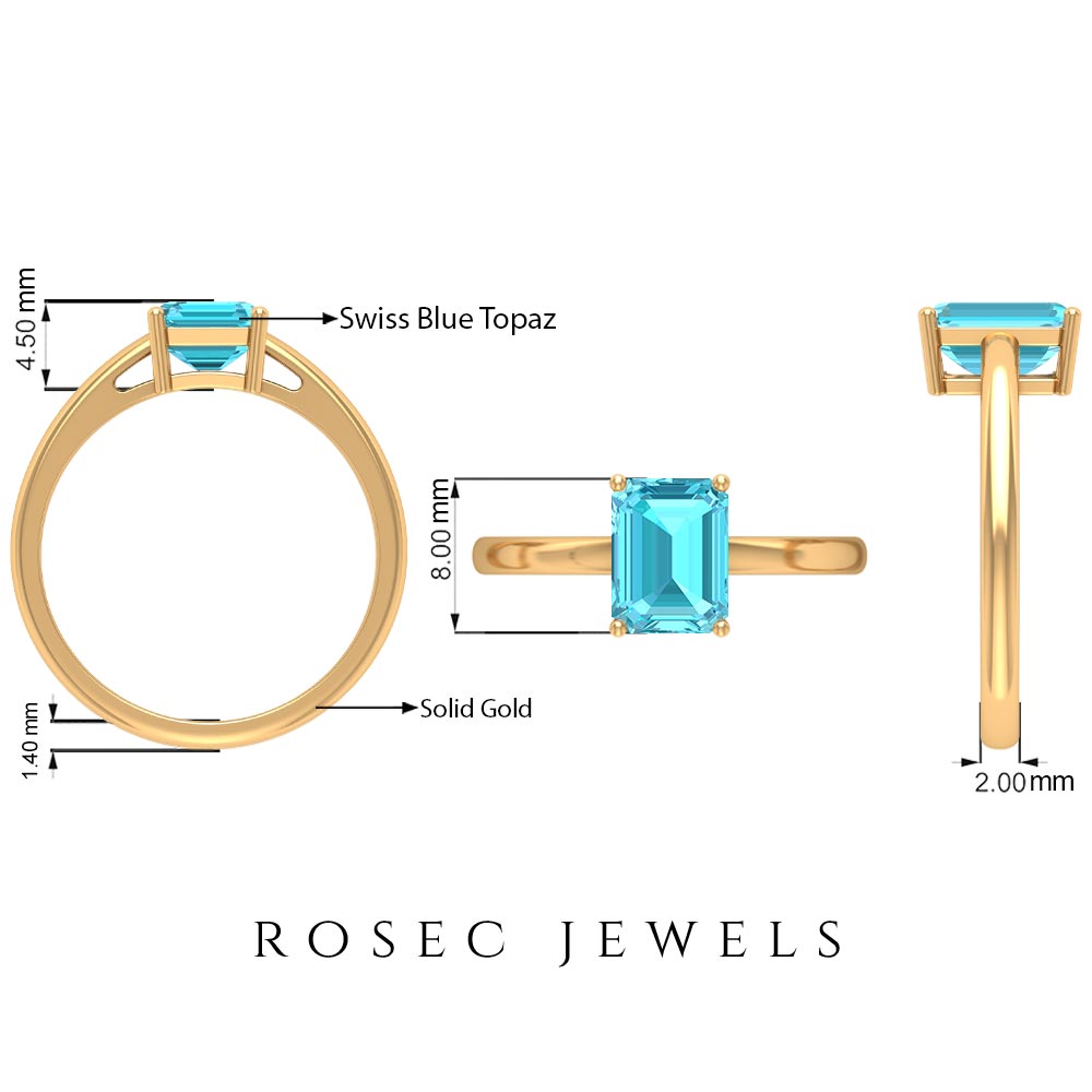 This Solitaire Promise Ring is embellished with Octagon Cut Swiss Blue Topaz Gemstone is set as Solitaire in a Prong Setting, crafted in a Solid Gold Metal.