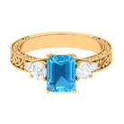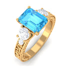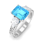 6X8 MM Octagon Cut Swiss Blue Topaz with Moissanite Three Stone Ring