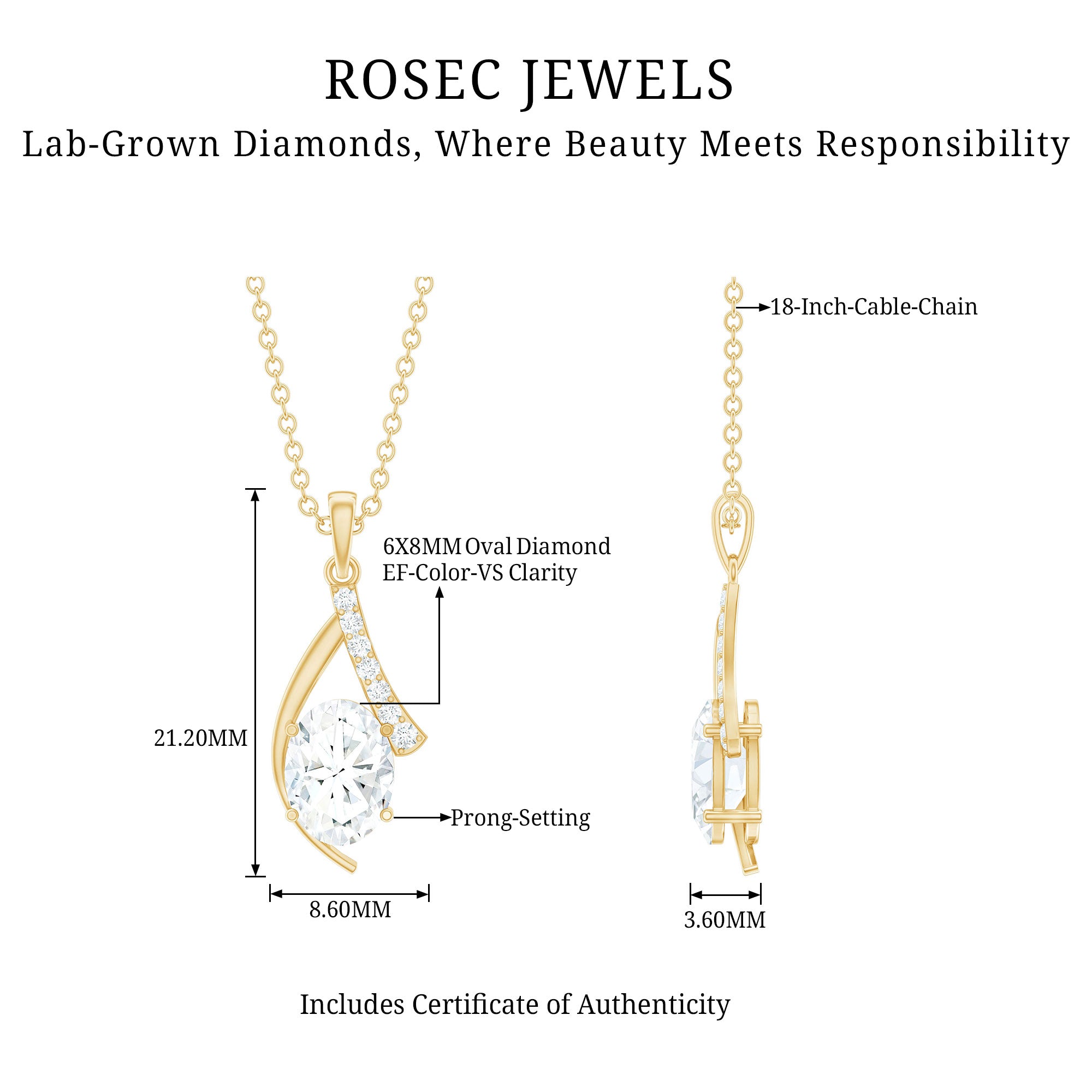 Make a fashion statement with this Lab Grown Diamond Pendant Necklace, handcrafted in top-notch metal. This Solitaire Pendant features a striking 6X8 MM oval-shaped diamond gemstone securely set in prong setting, drawing all the attention. Enhancing its beauty are delicate round-shaped lab-grown diamonds that enhance the unique design. Ideal for any special occasion or as a daily statement piece, this Simple Pendant is sure to be cherished for years ahead. Whether you are heading to a romantic dinner, a glamorous event, or a special celebration, this Oval Diamond Necklace is the perfect way to elevate your look.
