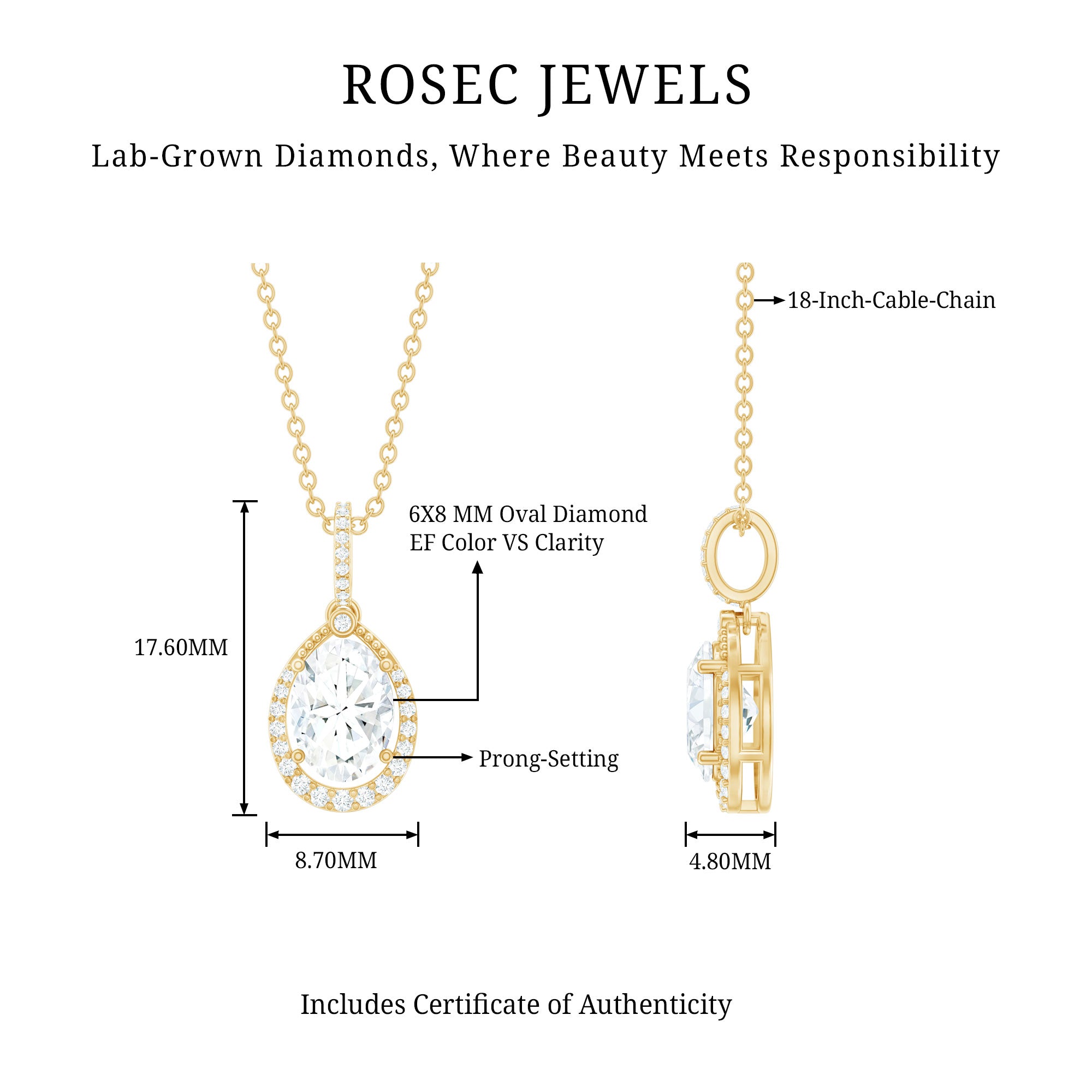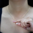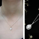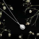 This shimmering Diamond Drop Necklace is a sparkling treat and a stunning tribute to the woman you adore. Its teardrop-shaped round diamond halo cradles a 6X8 MM oval-shaped lab-grown diamond set in a prong setting. The diamond accented bail gives the Teardrop Pendant a shimmering look, perfect for any bride-to-be. This Oval Necklace makes an ideal anniversary or birthday gift, perfect for celebrating the love and connection you share, and comes with a Certificate of Authenticity, ensuring exceptional craftsmanship and Quality. Plus, it is curated with lab grown diamonds so it offers not only brilliance but also an ethical choice for the modern woman.