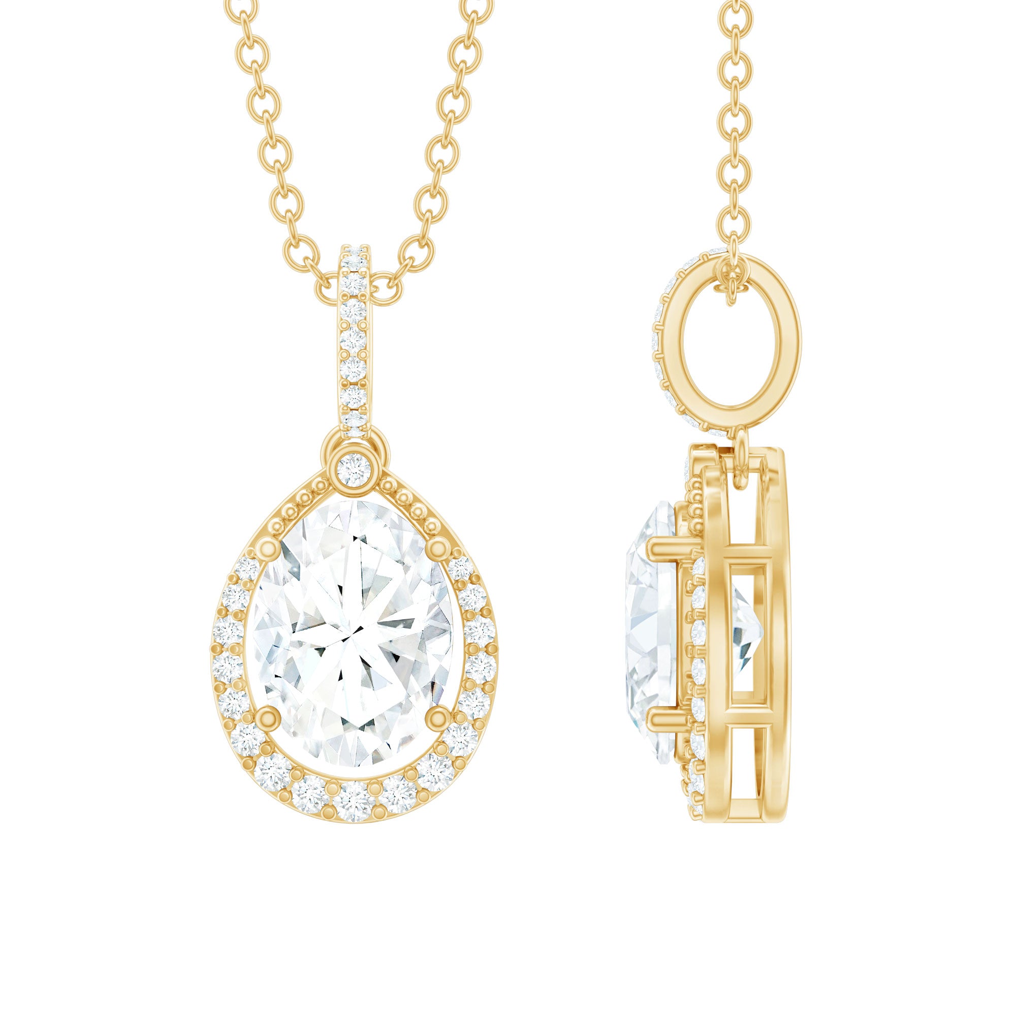 6X8 MM Oval Lab Grown Diamond Teardrop Halo Necklace For Women