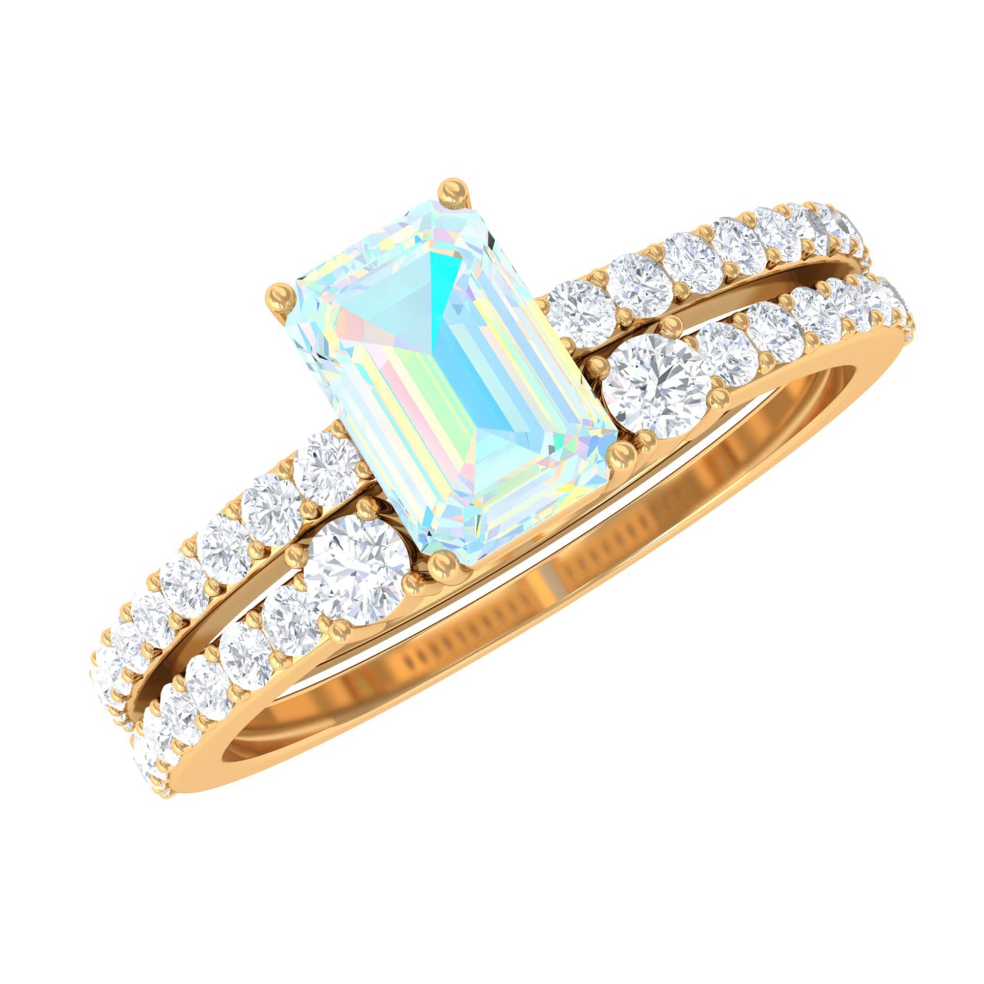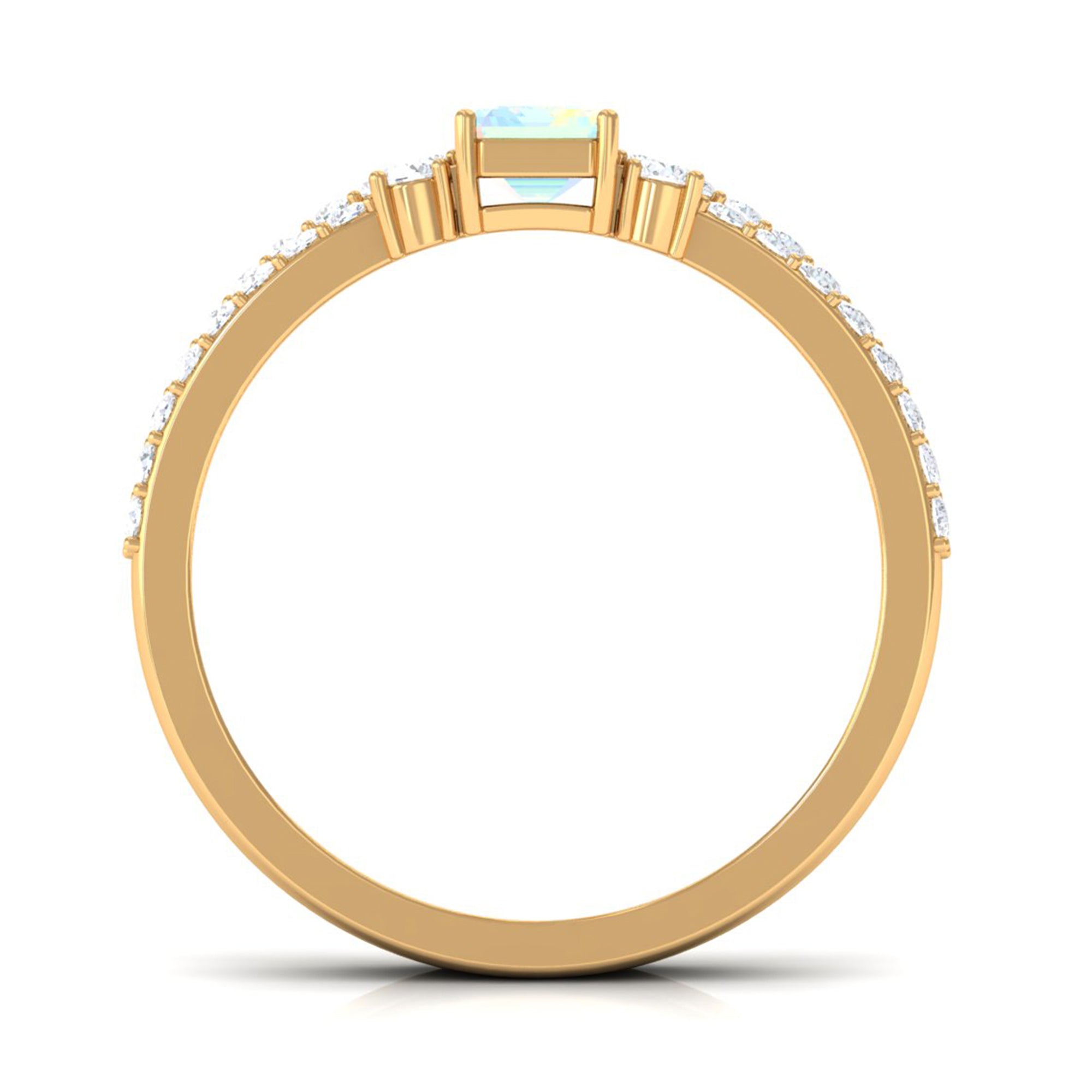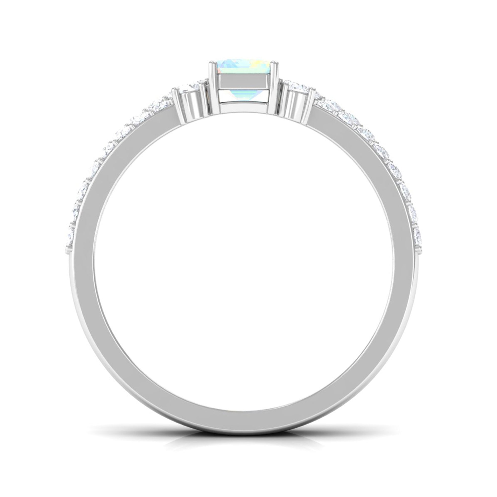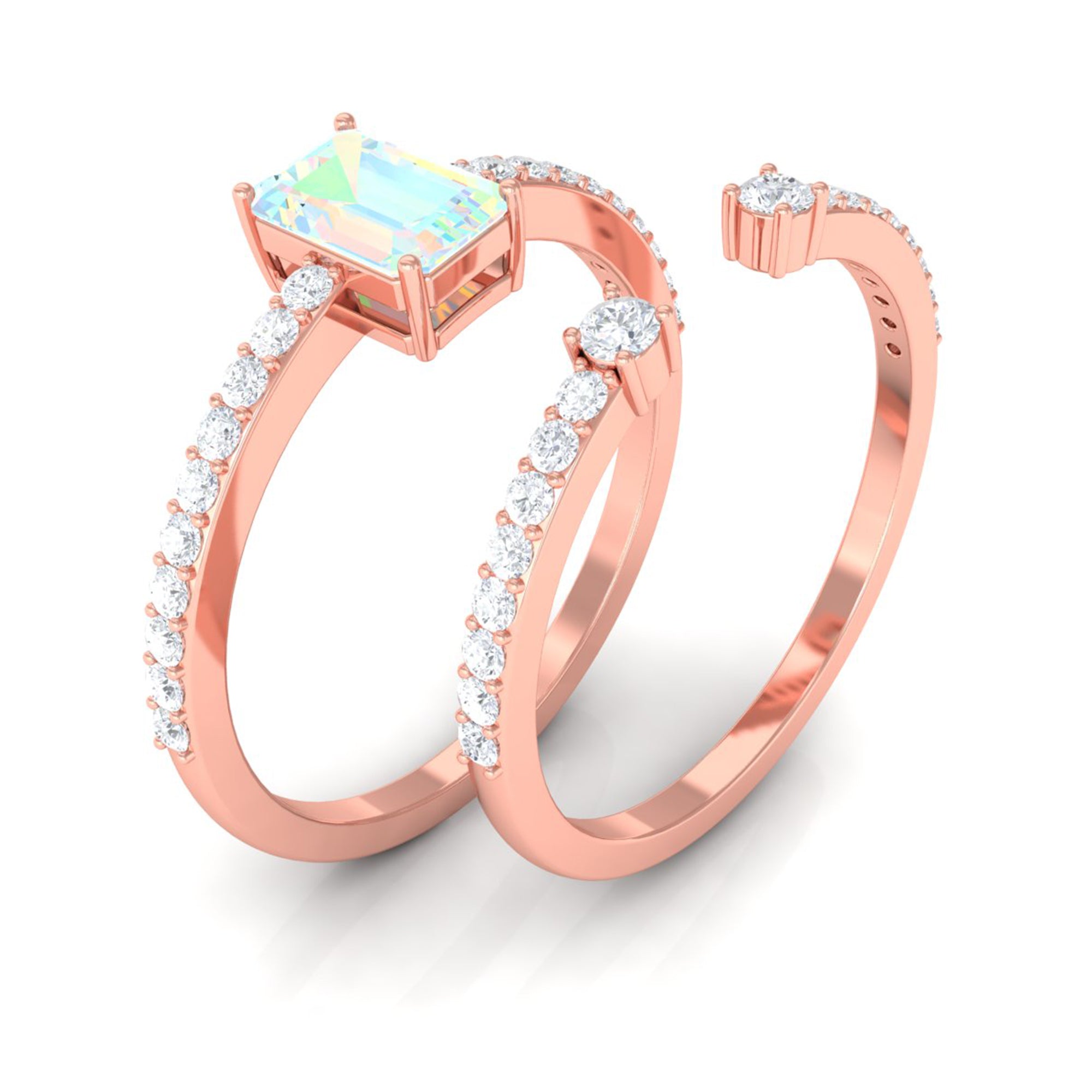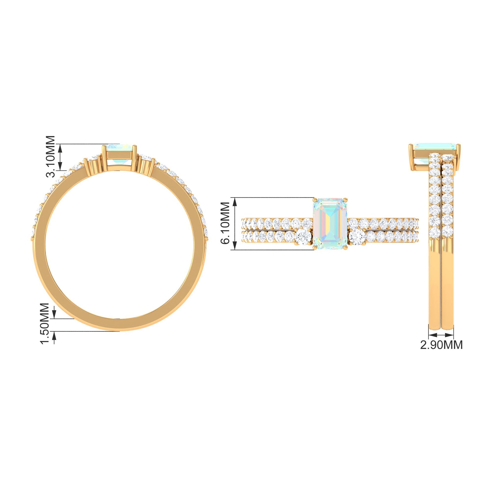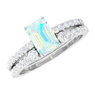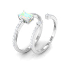 6X8mm Emerald Cut Ethiopian Opal Solitaire Engagement Ring Set with Diamond Band