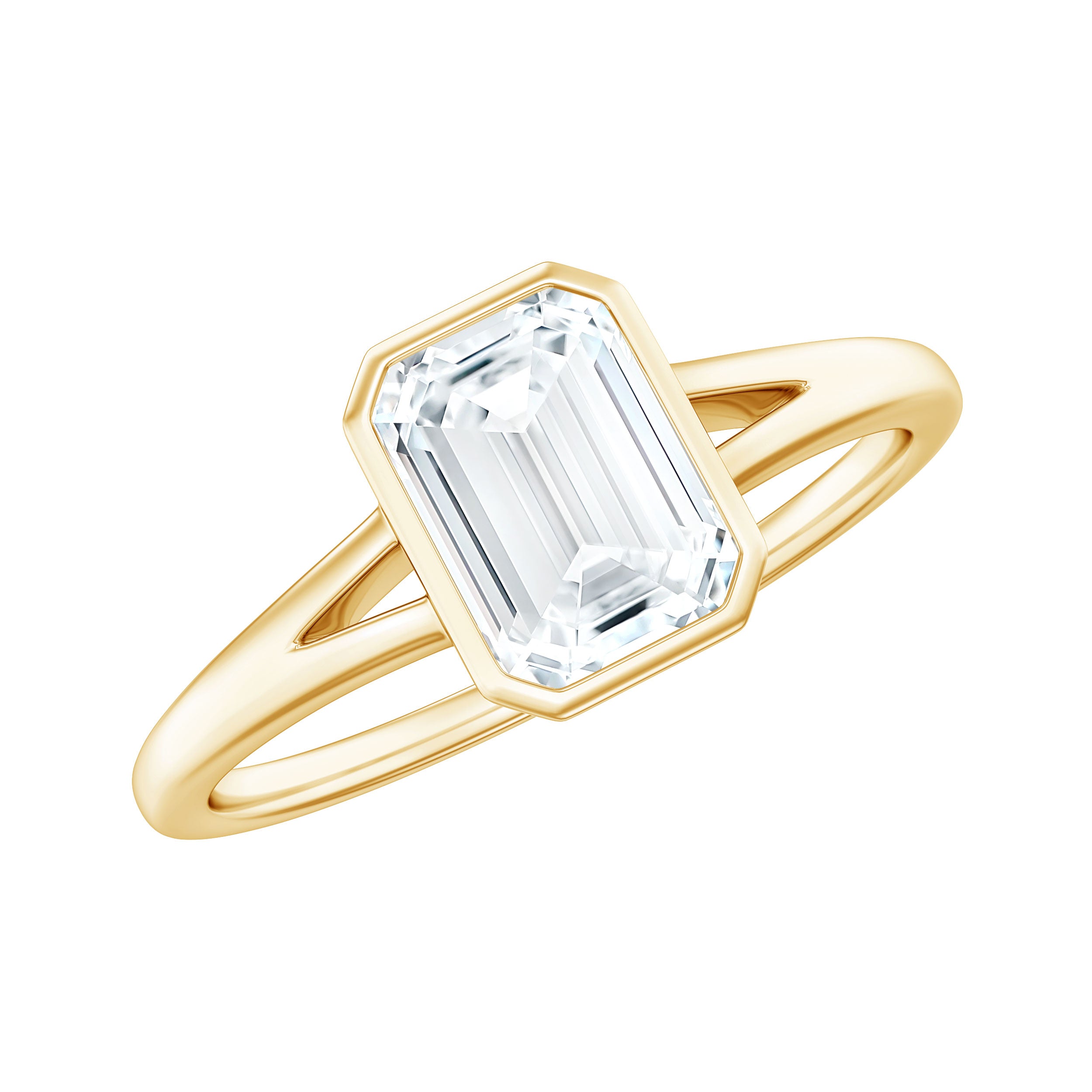 6X8mm Emerald Cut Moissanite Bezel Set Engagement Ring with Split Shank
