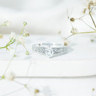 This Moissanite Solitaire Ring resembles a gem from yesteryears, narrating a story of eternal love and beauty. With a design inspired by vintage aesthetics, this Solitaire Engagement Ring blends classic features with a modern touch, making it perfect for those who value a hint of old-world sophistication in their jewelry. At its core is a 6X8 MM oval cut moissanite, gracefully set in a claw setting. The stone boasts D color and VS1 clarity, delivering remarkable brilliance that draws attention with every movement. This Oval Cut Engagement Ring highlights a beautifully crafted filigree band embellished with intricate swirls and delicate leaf-like designs that wrap around the shank, enhancing its vintage charm. Beaded details along the edge contribute texture and depth, imparting a soft, romantic feel to the ring. This Vintage Moissanite Ring is lightweight and comfortable for everyday wear, yet retains a special quality for significant occasions. Whether you are looking for a Vintage Style Engagement Ring, a heartfelt promise ring, or a significant statement piece, this Antique Filigree Ring merges elegance, sentiment, and timeless allure that will always be in vogue.
