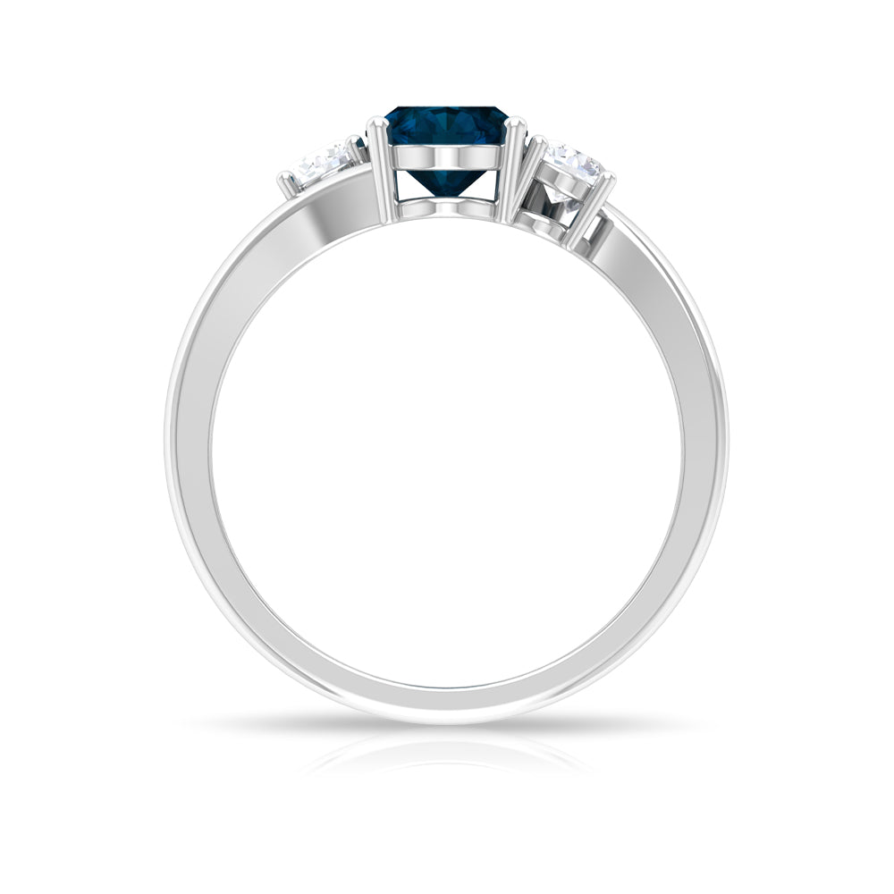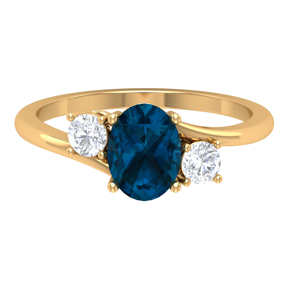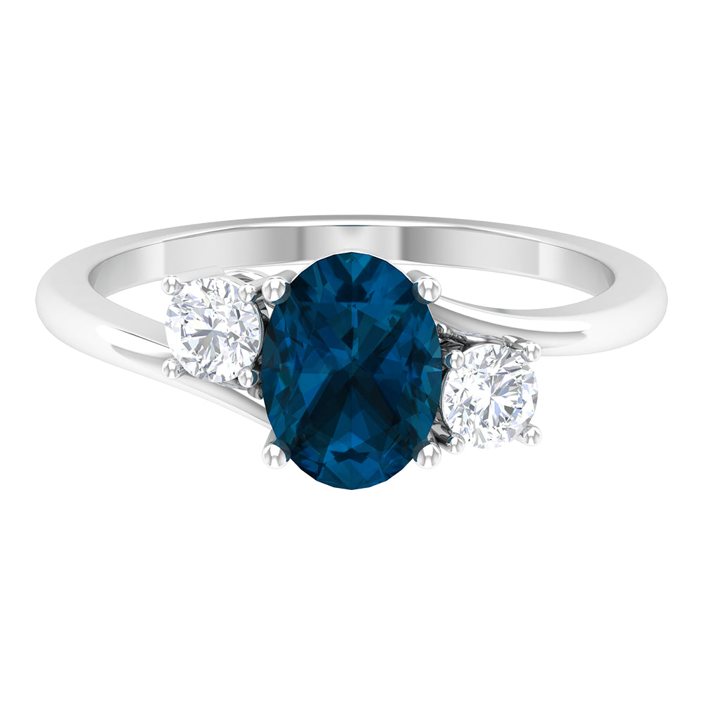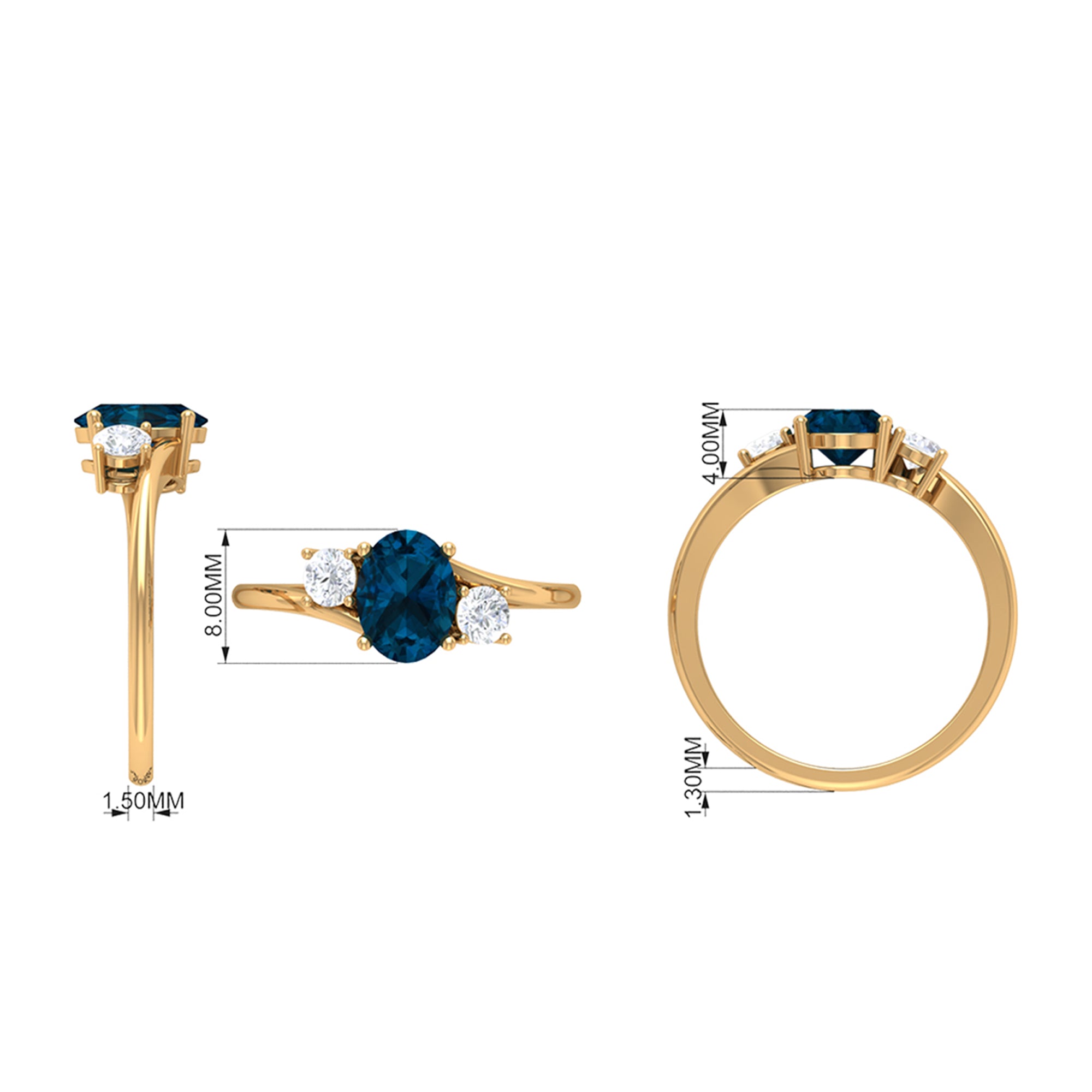 6X8mm Oval Cut London Blue Topaz Three Stone Engagement Ring with Diamond