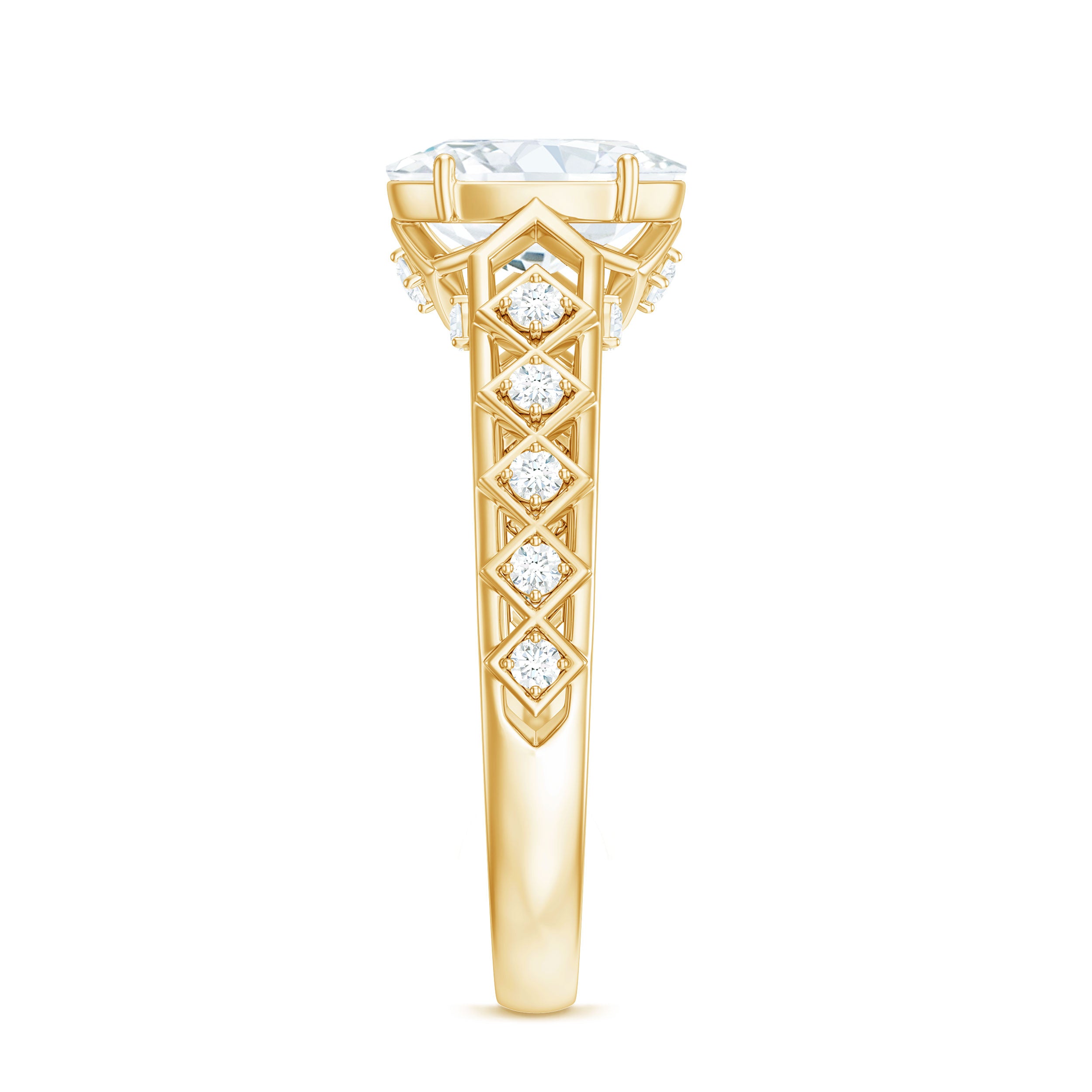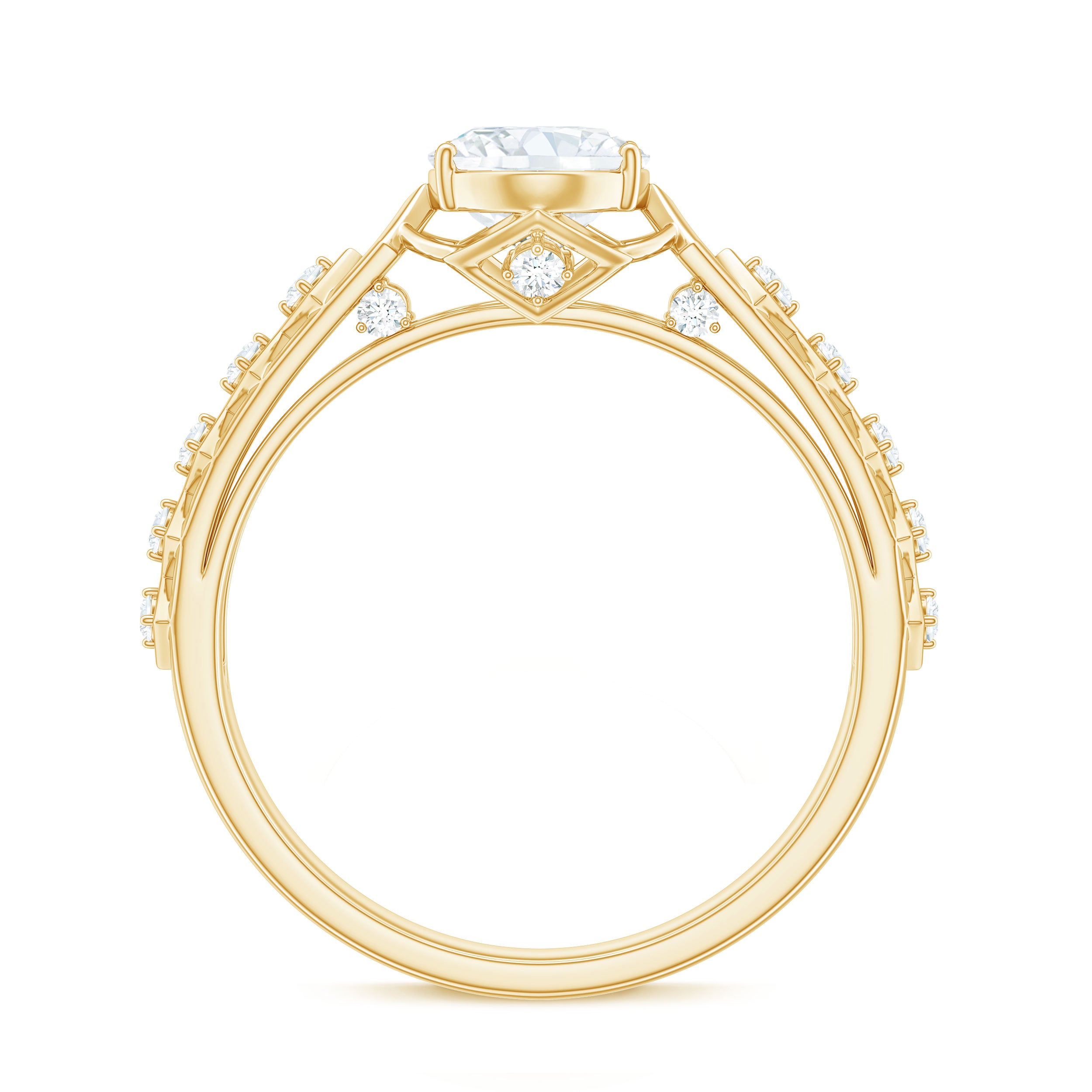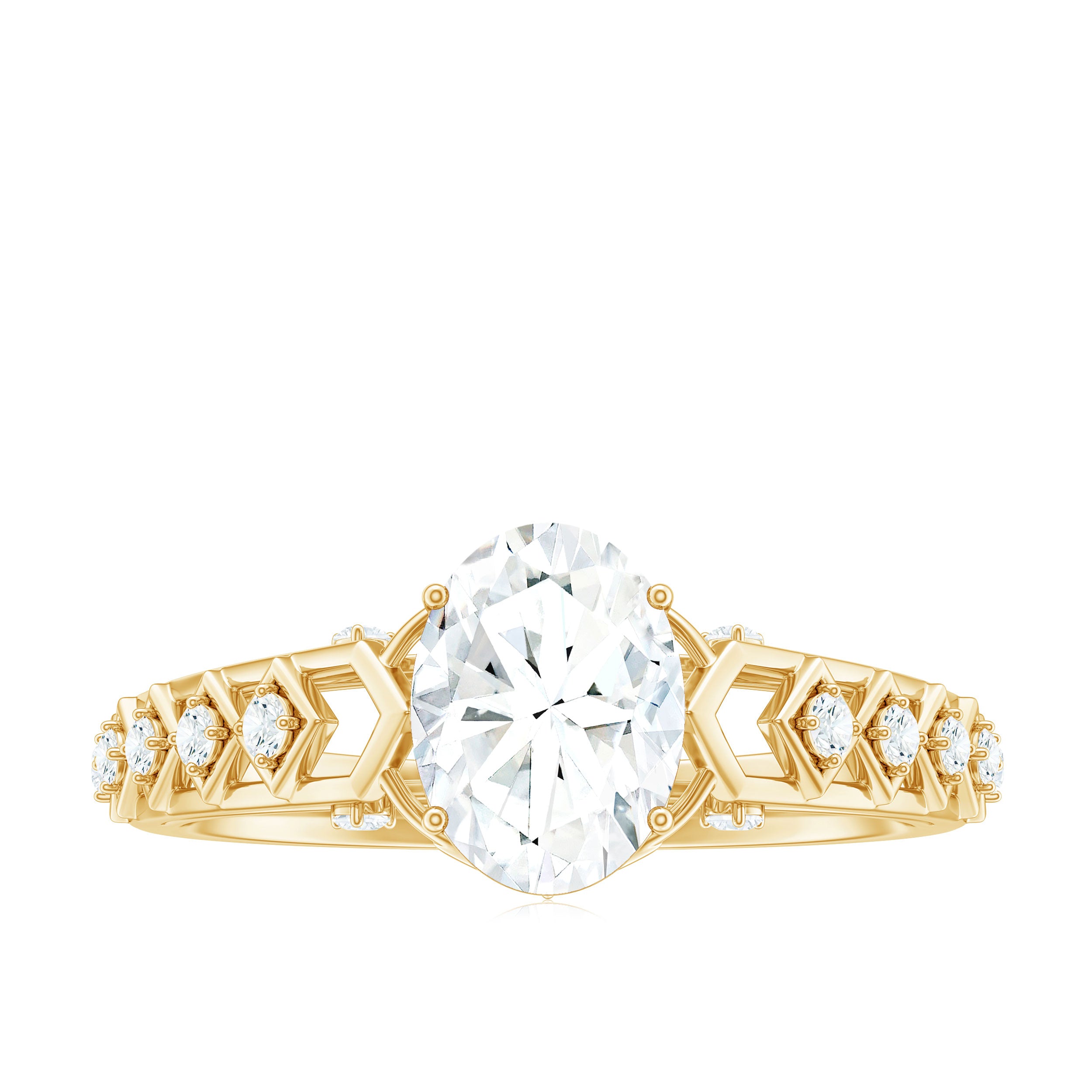 Make a statement with this Oblong Engagement Ring on your special day and make it an unforgettable day. This beautiful Solitaire Ring features an 6X8 mm Oval Cut Certified Moissanite in the center in Prong Setting with sparkling Moissanite gemstones on either side having arrow style shank. This stunning Moissanite Solitaire Ring is sure to impress and become a cherished addition to your jewelry collection. A timeless classic, this Moissanite Engagement Ring is the perfect finishing touch to any look. Having a unique palette of colors, the D color VS1 clarity Moissanite has a timeless appeal with its unique tone. It evokes nostalgia in contemporary creations by making it a dramatic choice for every individual who would love to stand out. Referring to the intricate design, it showcases the craftsmanship of bygone eras. Moissanites having same brilliance as natural diamonds at an affordable prices.