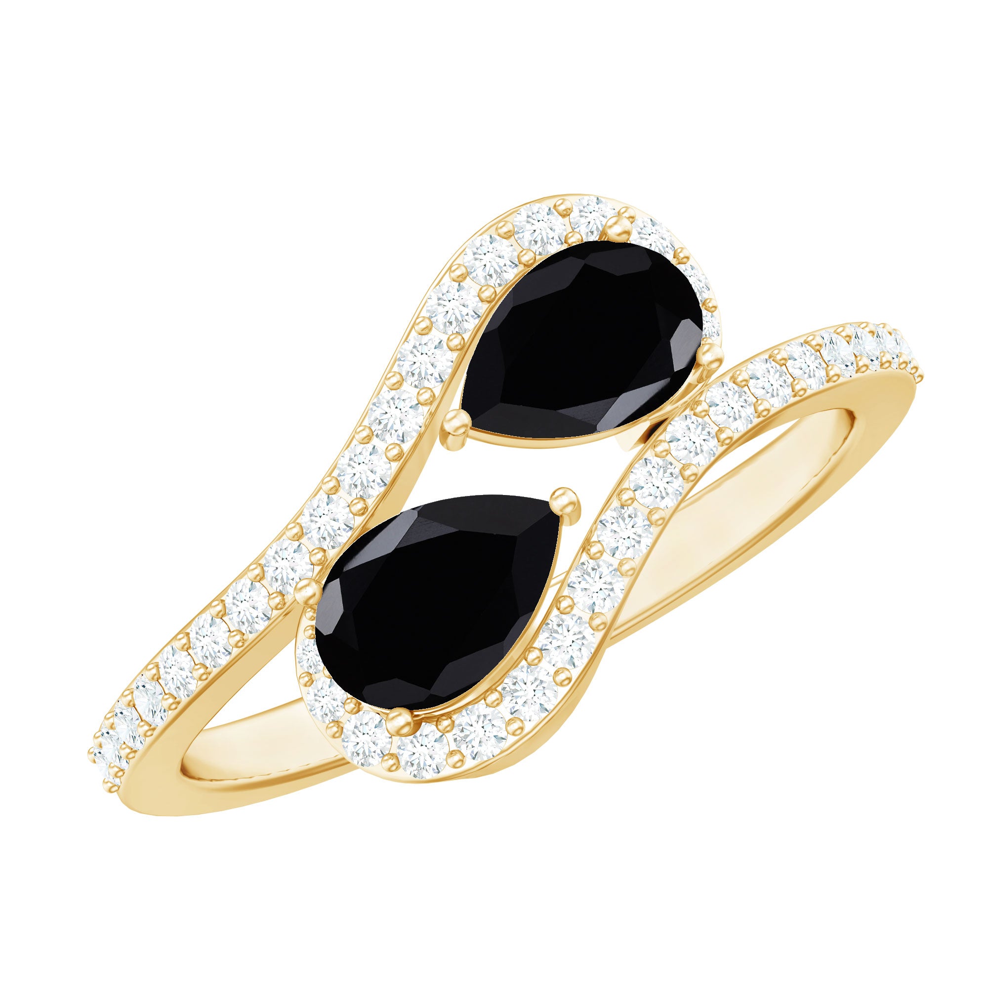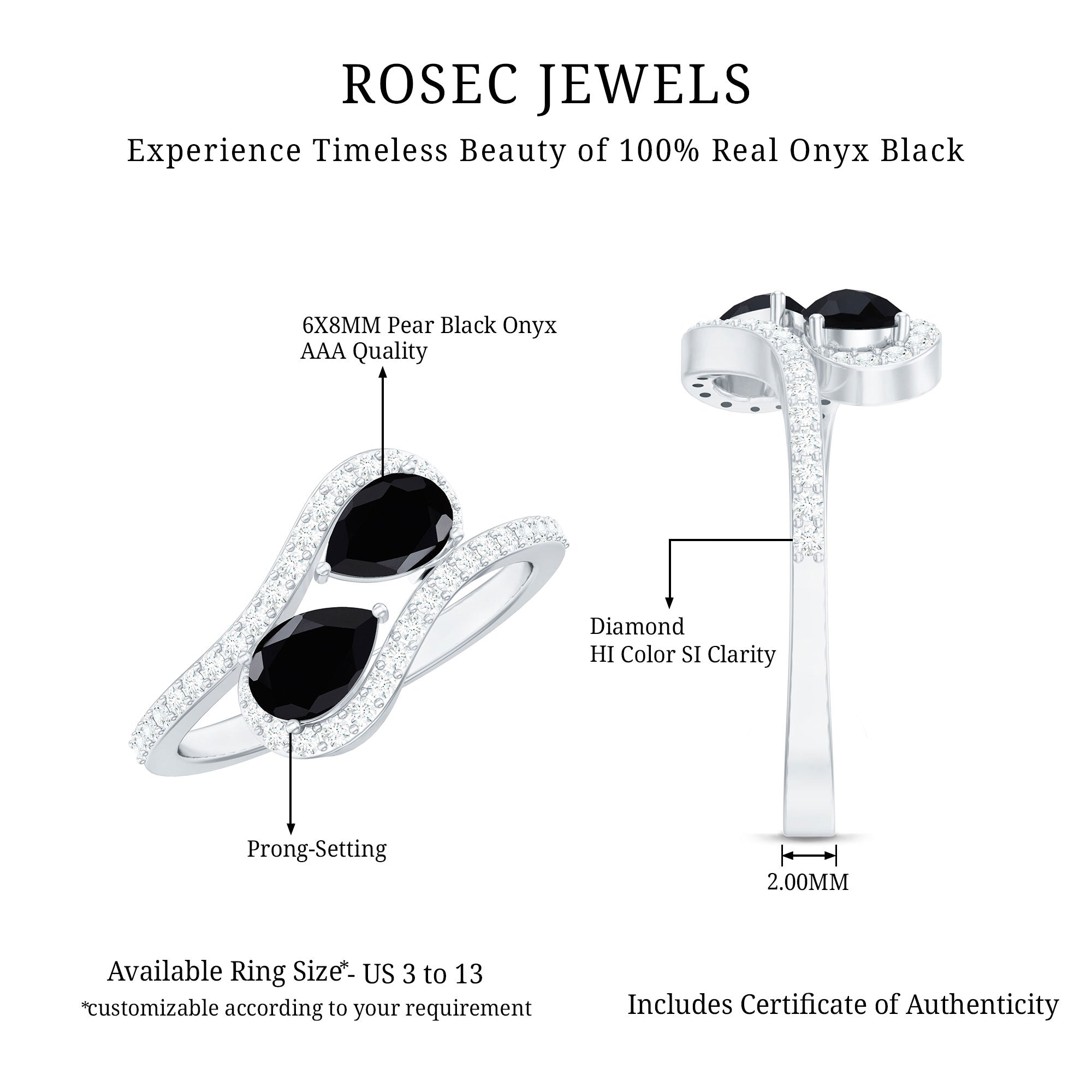 6X8mm Pear Cut Black Onyx Two Stone Engagement Ring with Diamond