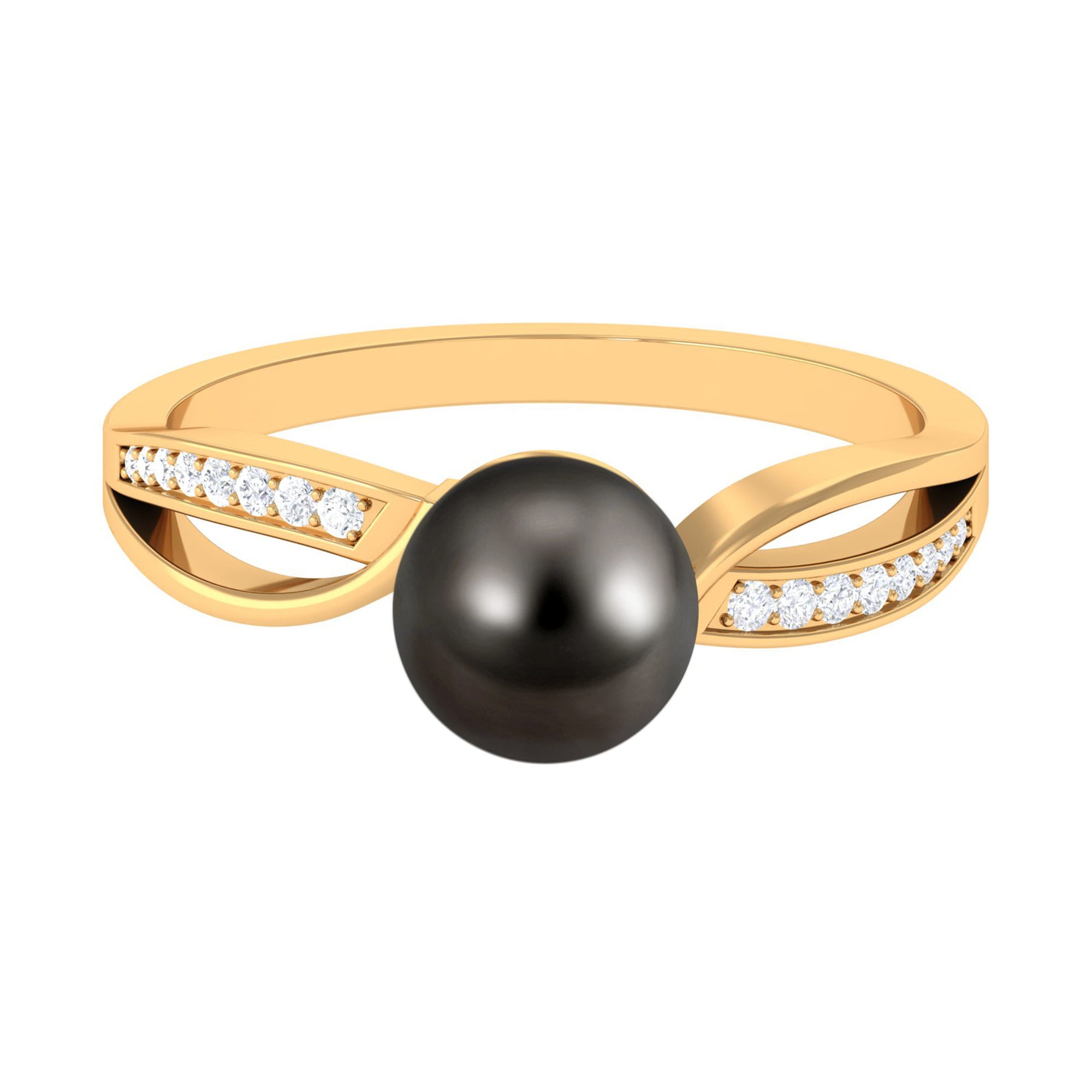 Give Her That Fairytale Ending. Forever gleaming and radiant, adorn her hand with our Solitaire Tahitian Pearl Engagement Ring that is only fit for a true princess. Featuring brilliant round shape tahitian pearl at the center and Diamond accent on the designer shank, handcrafted in Gold this Black Tahitian Pearl and Diamond Ring is absolutely stunning.