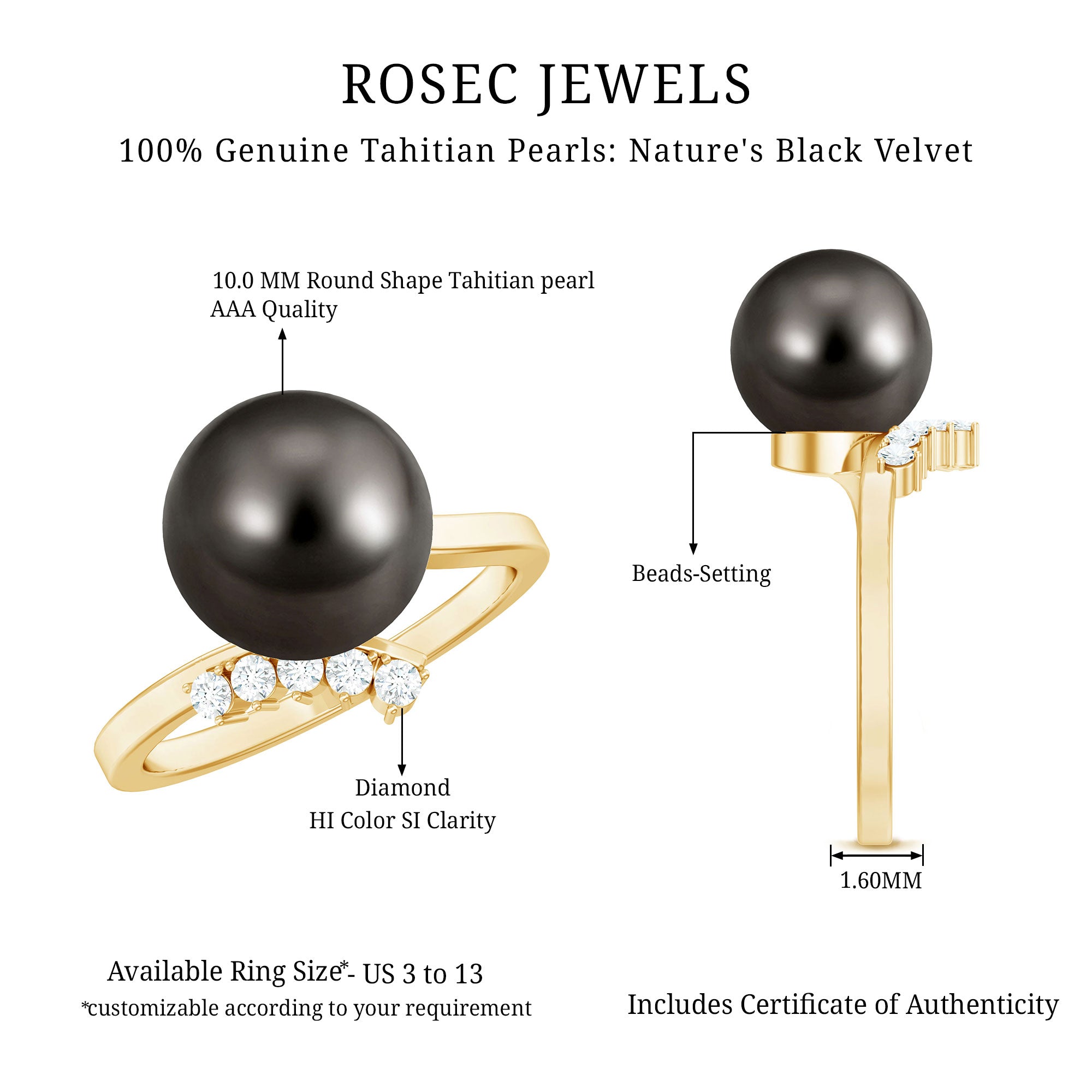 High on elegance and style, this classic Tahitian Pearl and Diamond Ring captivates your senses with its designer look. Tahitian Pearl - Tahitian Pearl exhibits AAA Quality and possess exotic color. Semi-Precious June Birthstone summons intelligence, and prosperity. It is Natural and Certified, helps in boosting vitality of the wearer. Its huge range of colorful overtones makes it a captivating and desirable gem. Diamond- HI-SI Quality exhibited by Brilliant Cut Diamond give justice to its incredible value. Diamond summons beauty, attractiveness and unbreakable love. It is Certified and helps in bringing success and luxury to the wearer. Its Durability and Luster is enhanced by Lab Created Treatment, to further make it a captivating and desirable gem.