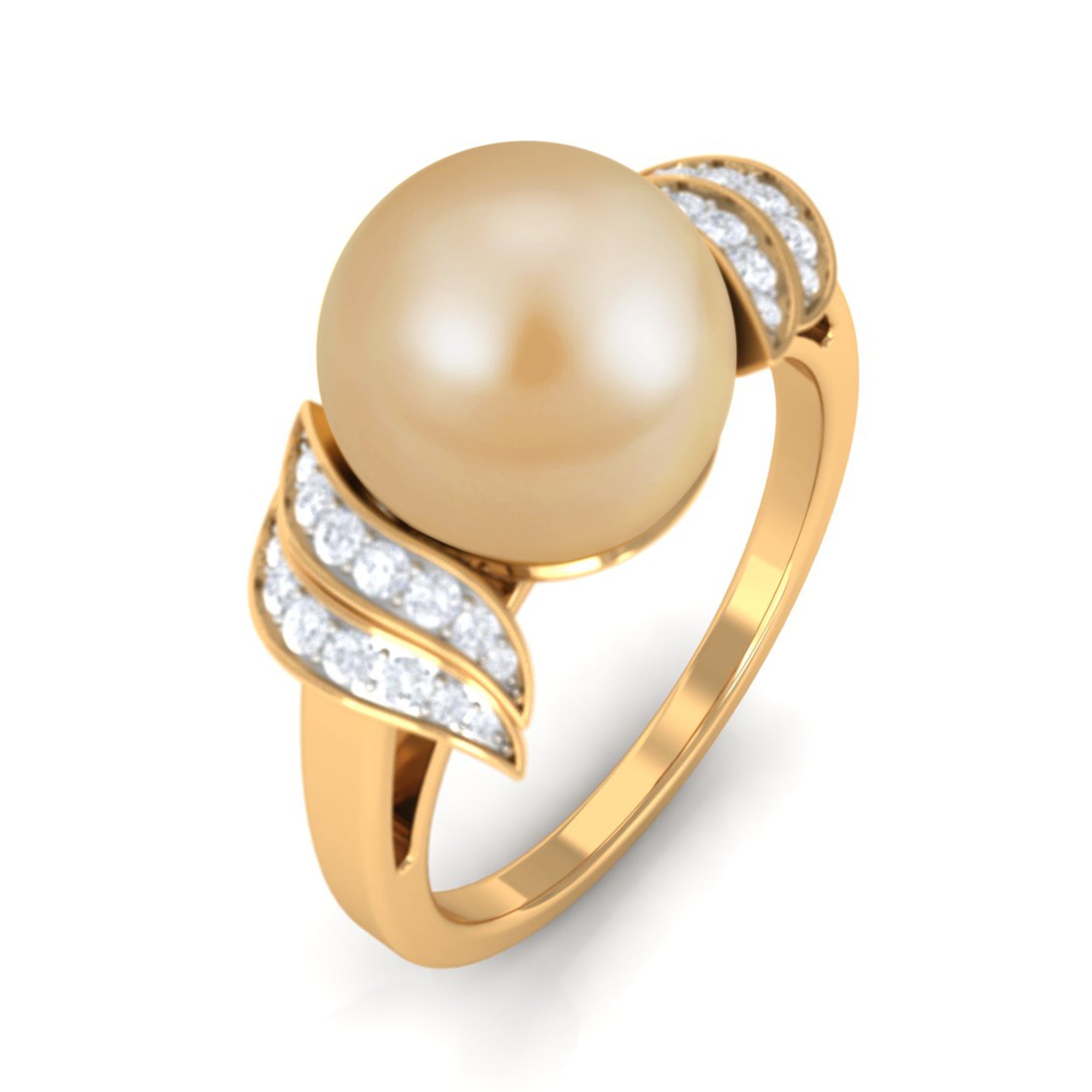 Indulge in the exquisite beauty of our Gold South Sea Pearl Solitaire Ring, designed to add a touch of radiance to your mundane days. Adorned with a stunning Bead Set South Sea Pearl and a sparkling Diamond, this golden pearl engagement ring is the ideal choice to make your beloved feel cherished and cherished.