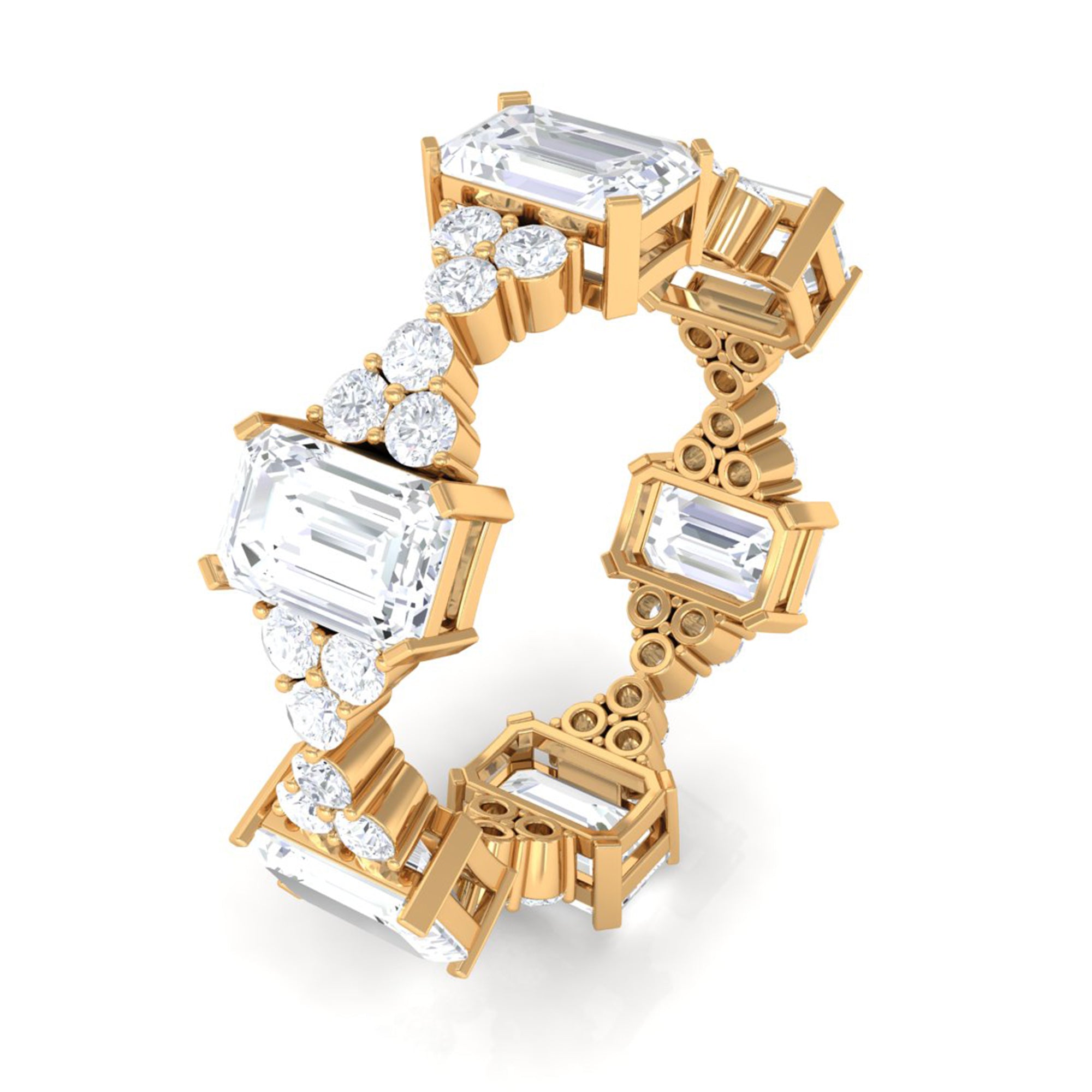 This designer eternity ring is set with Octagon and Round Cut Zircon Stones in prong setting that allows the stones to sparkle from every angle. The designer touch adds a unique and personalized feel to the ring, making it a perfect choice for those who want a one-of-a-kind piece to cherish for years to come.