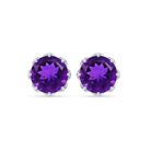 Natural Amethyst Solitaire Stud Earrings with Screw Back