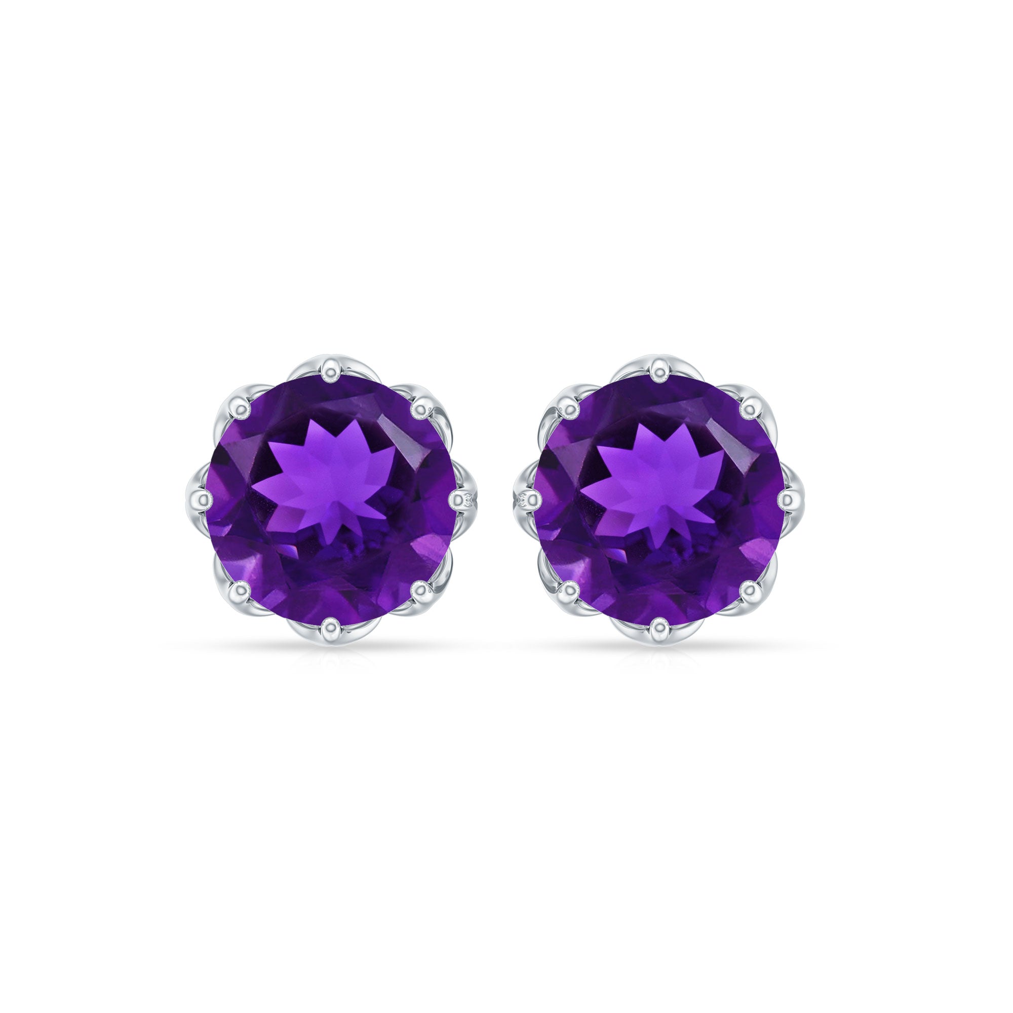 As a gemstone of calm and clarity, Amethyst carries an aura of grace that makes these Solitaire Stud Earrings truly enchanting. Each earring features a 7 mm Round Shape Amethyst that glows with regal purple hues, a timeless symbol of peace, balance and inner strength. Set in a unique style, the AAA Quality Amethyst radiates effortless elegance, perfect for adding a touch of romance and sophistication to any look. The Screw Back Closure ensures a secure and comfortable fit, allowing you to wear them with confidence from morning coffee dates to evening celebrations. Whether paired with casual wear or your favorite office outfit, these Amethyst Ear Studs bring a subtle yet captivating sparkle that never goes unnoticed. Ideal as a February birthstone gift, a token of love or a treat for yourself, these Amethyst Stud Earrings embody both meaning and style in perfect harmony. Beautifully presented in an elegant jewelry box, these Amethyst Earrings for Women are ready to make every moment shine.