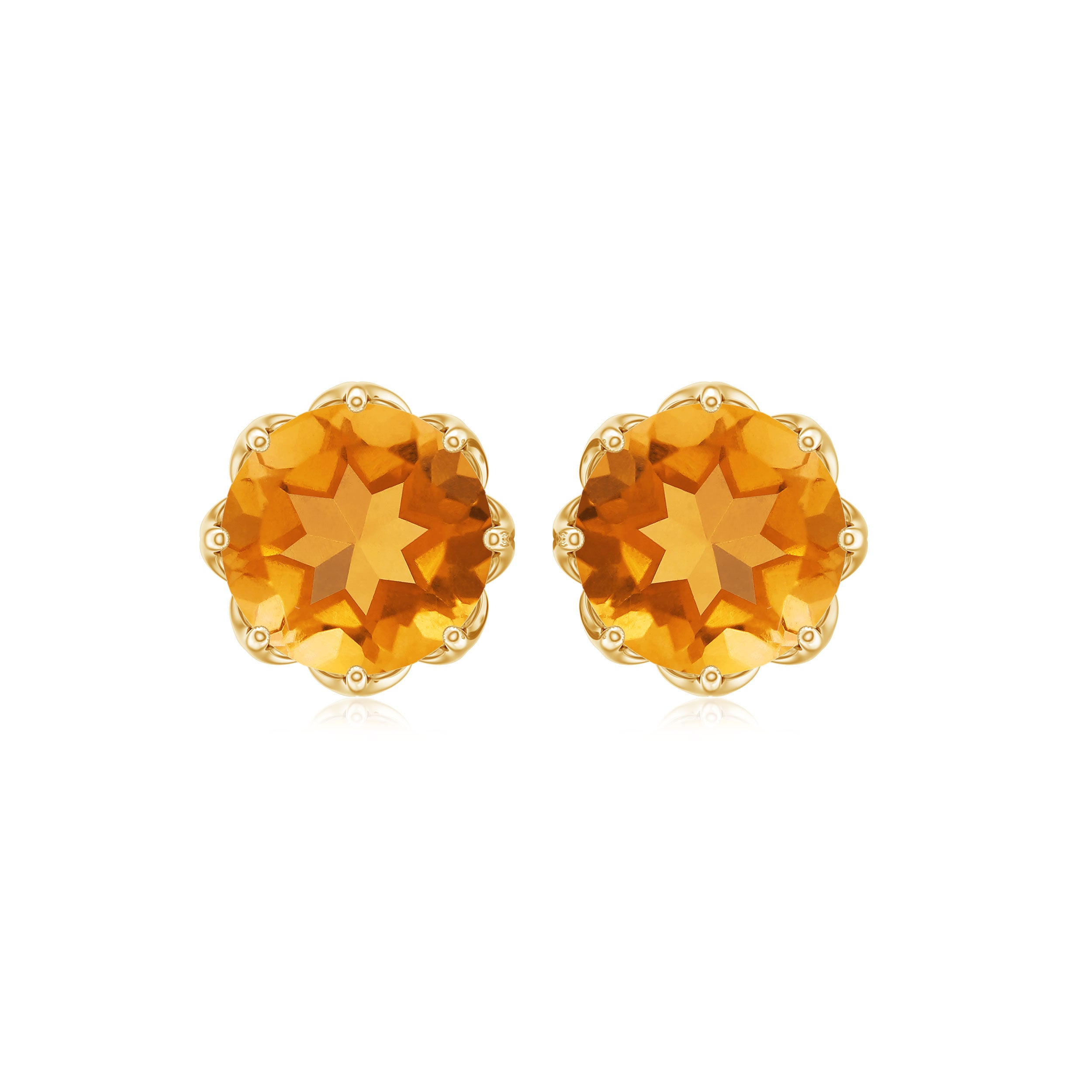 7 MM Decorative Citrine Solitaire Stud Earrings