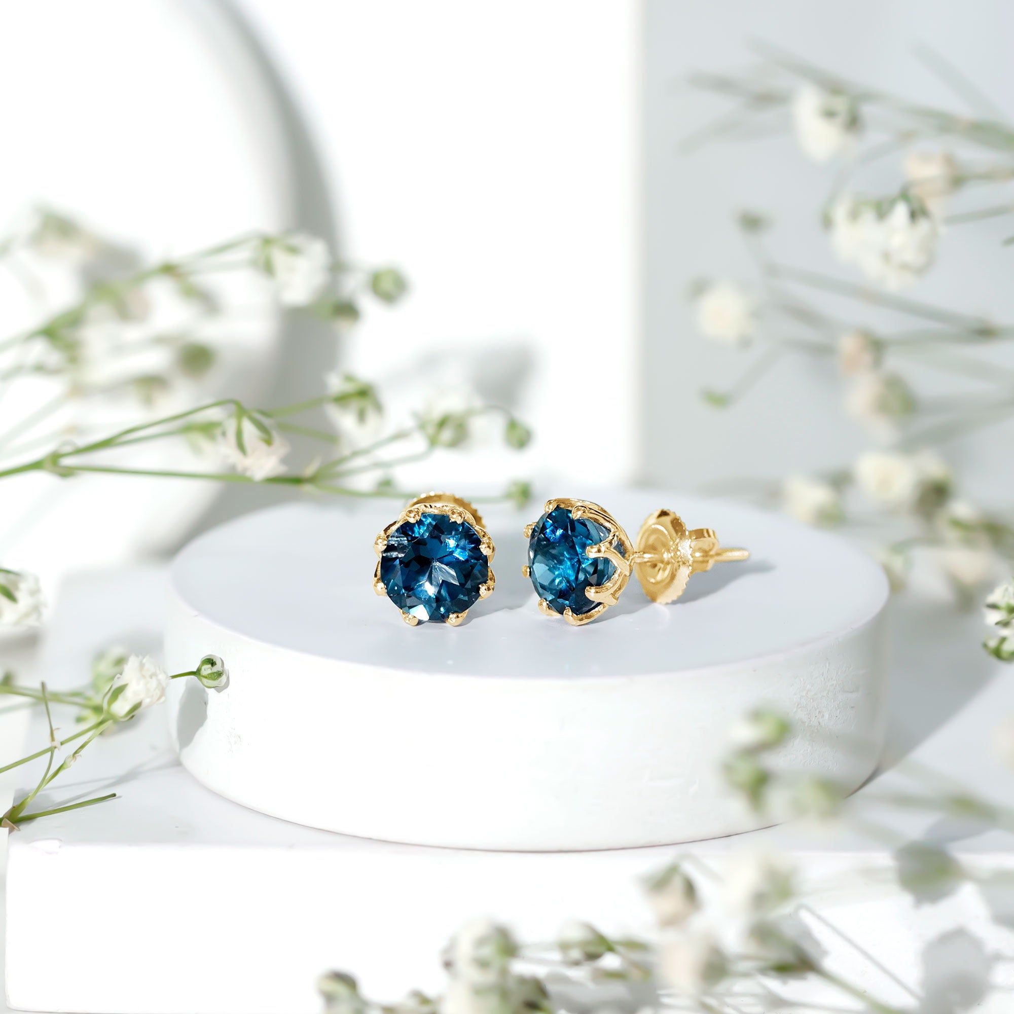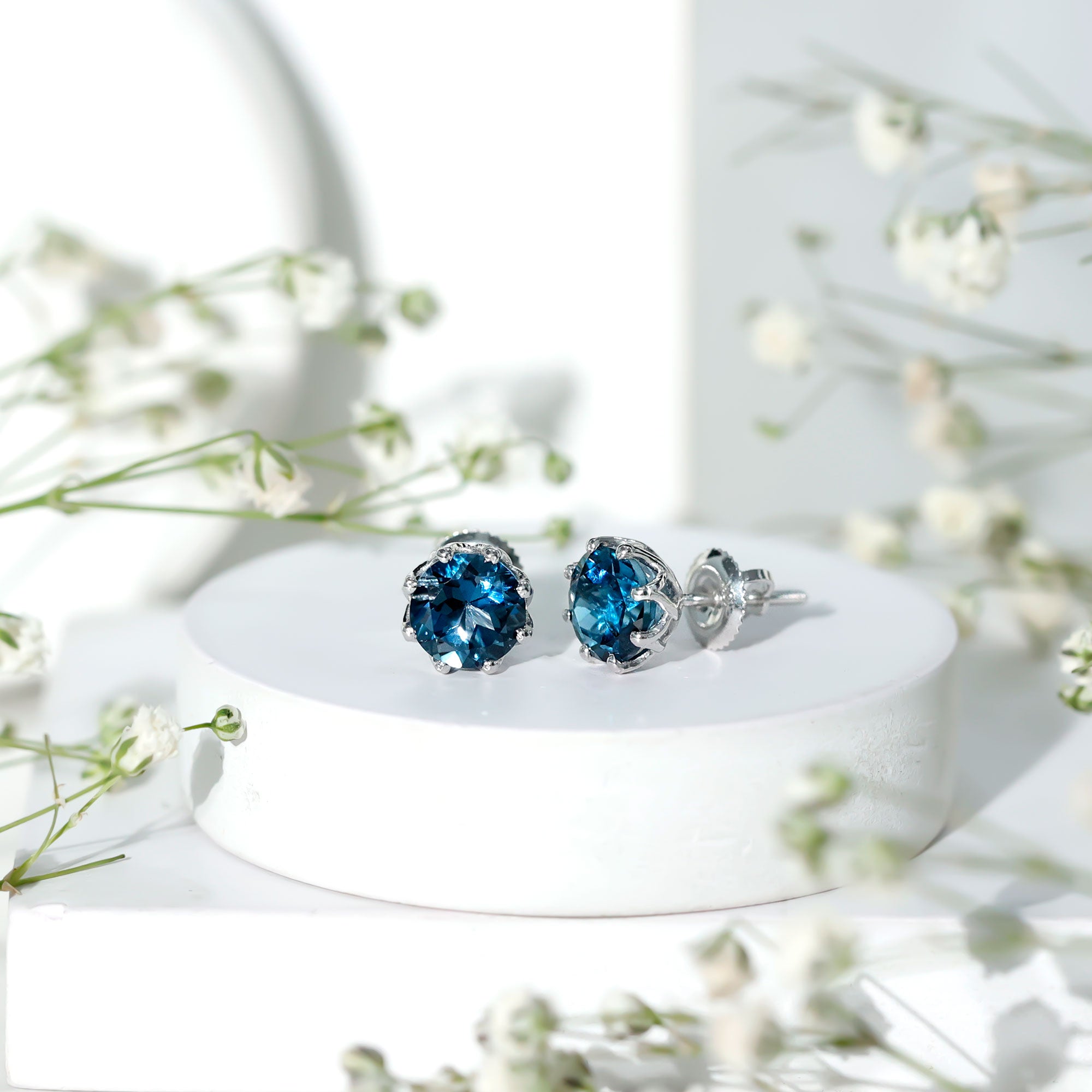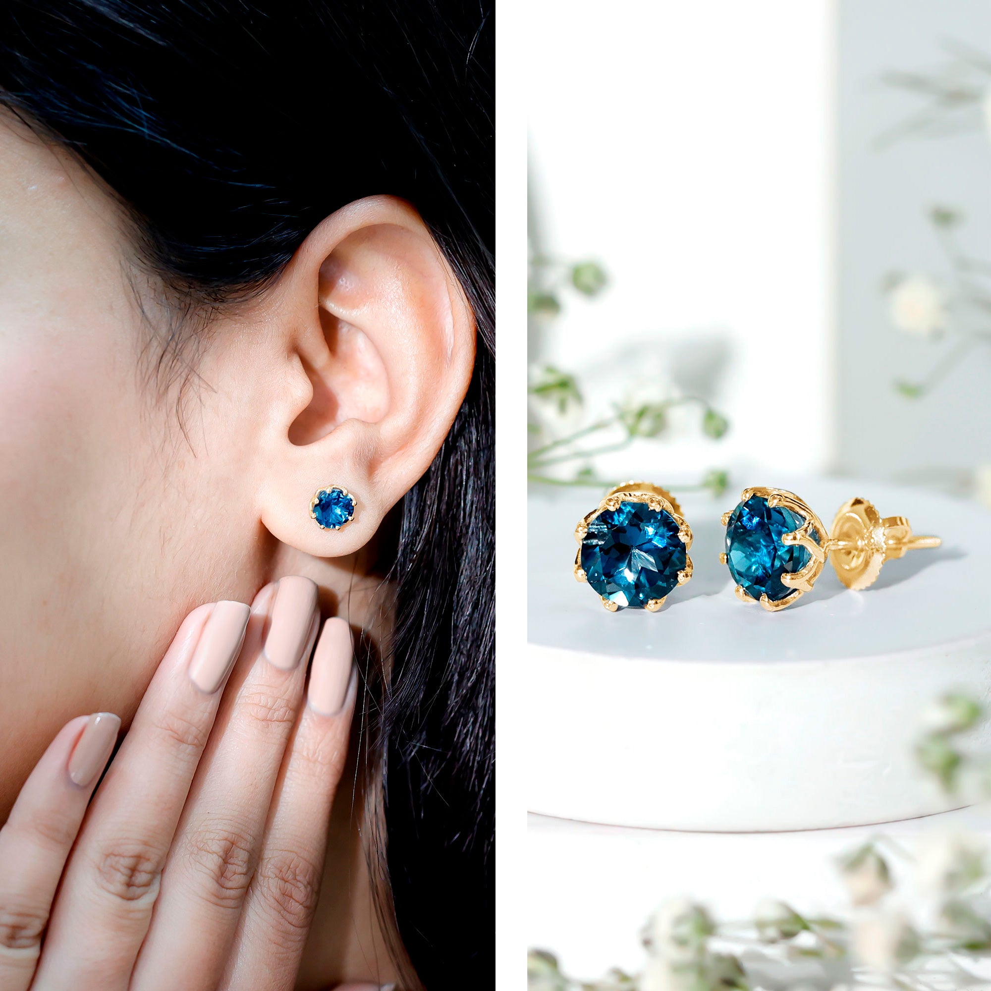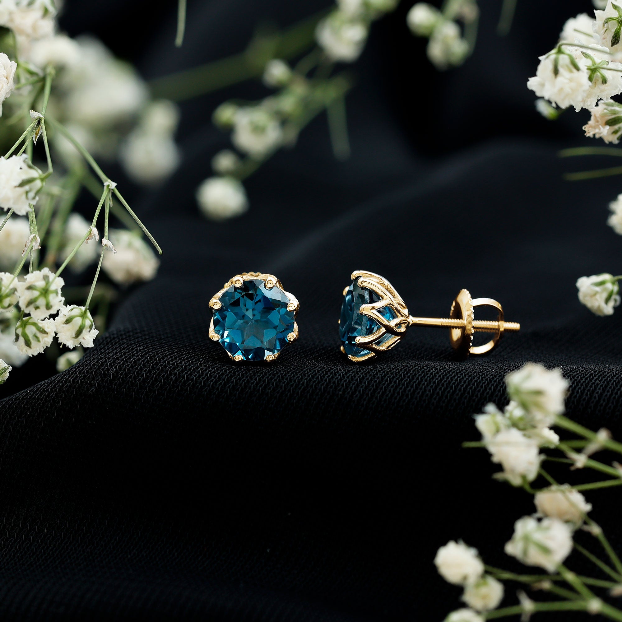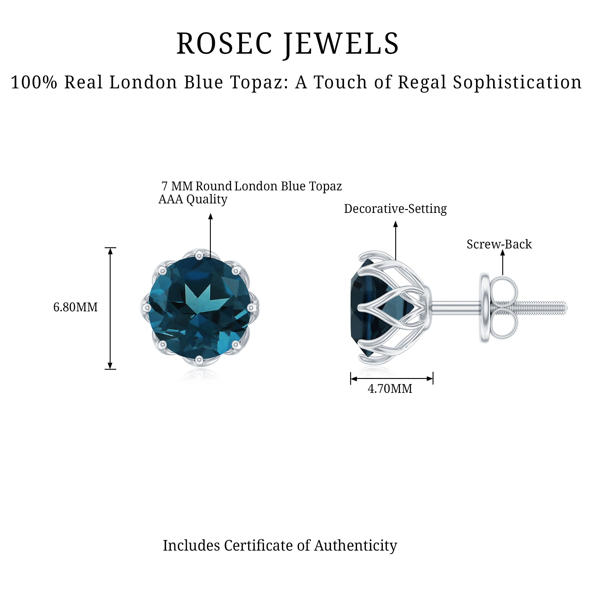 7 MM Decorative London Blue Topaz Solitaire Stud Earrings